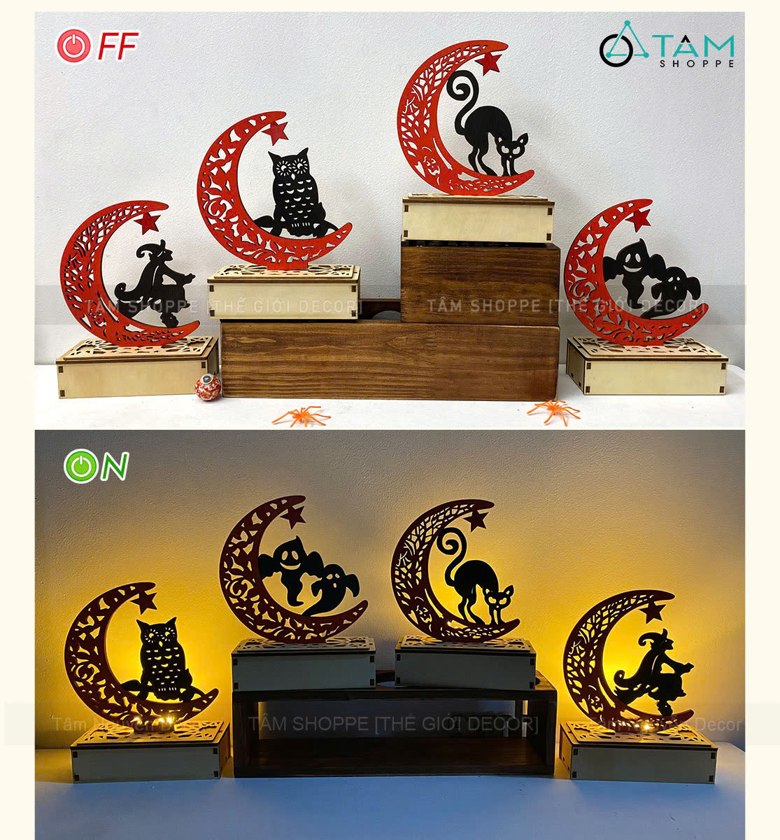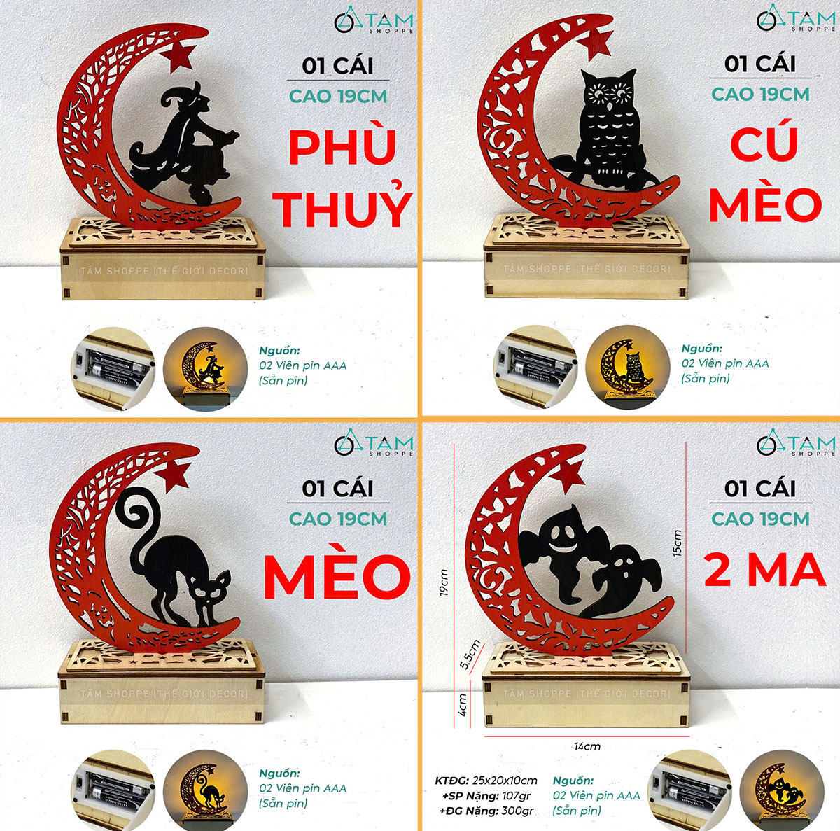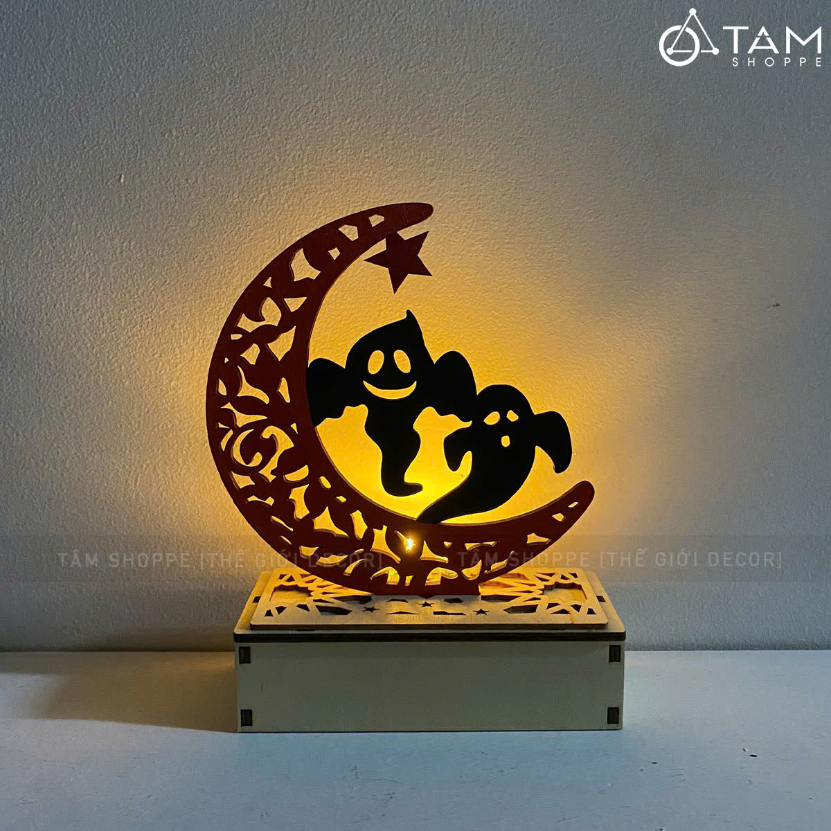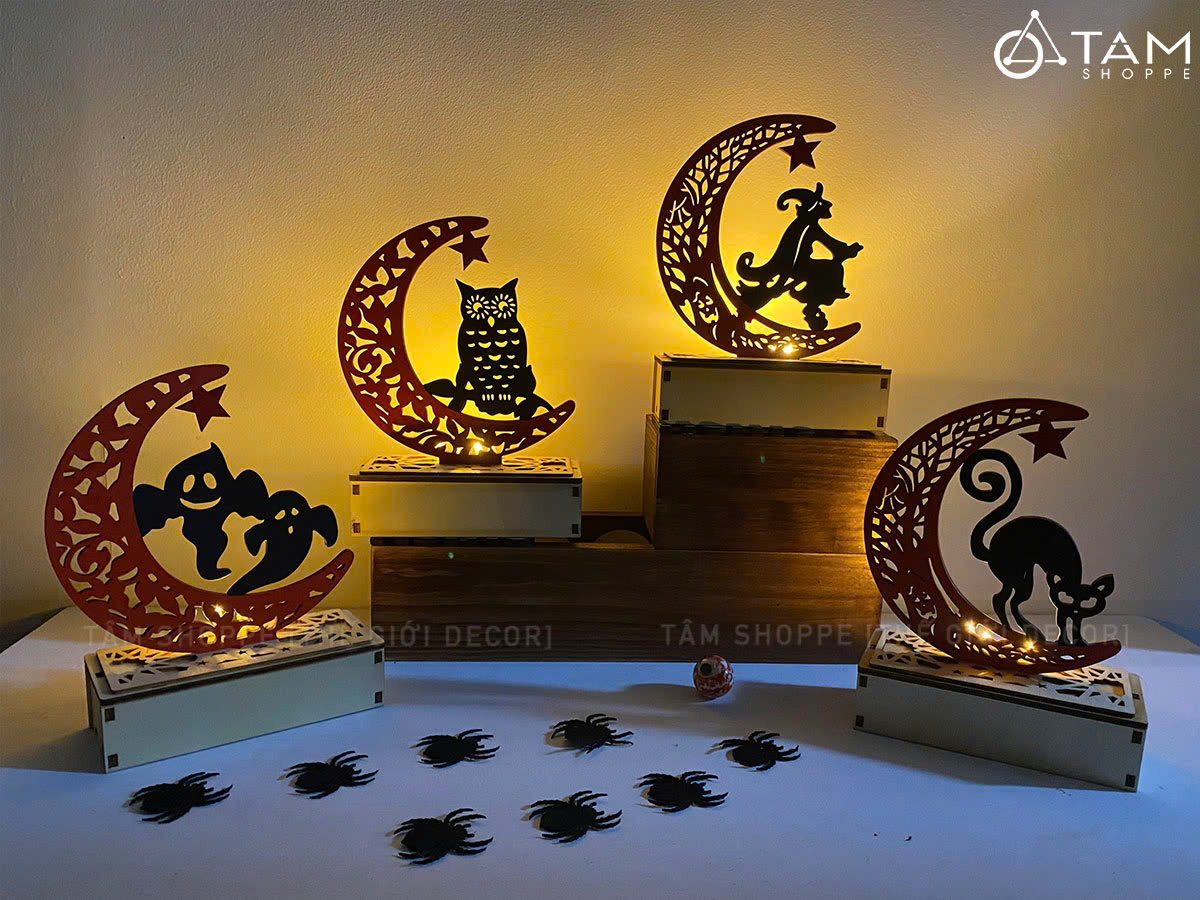 Đèn bàn Halloween trăng khuyết hoạ tiết [Cao 19cm - Nhiều kiểu] trang trí đẹp mắt. Đồ trang trí Halloween là những vật dụng, mô hình hoặc phụ kiện được dùng để tạo không khí rùng rợn, huyền bí, vui nhộn đặc trưng cho ngày lễ Halloween (31/10).