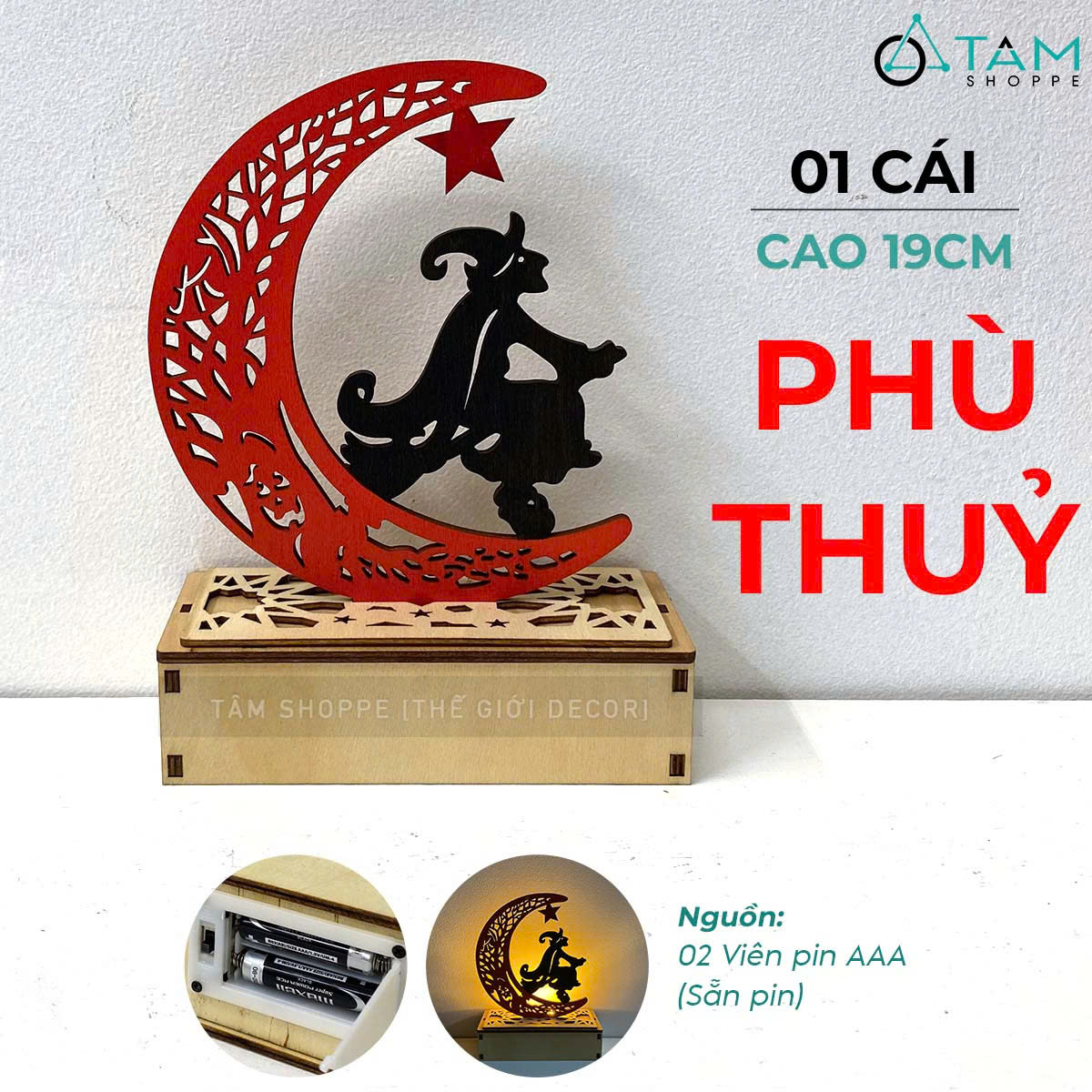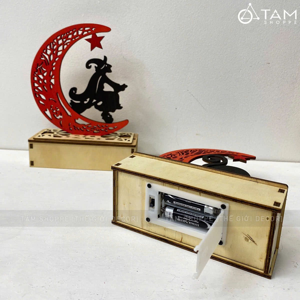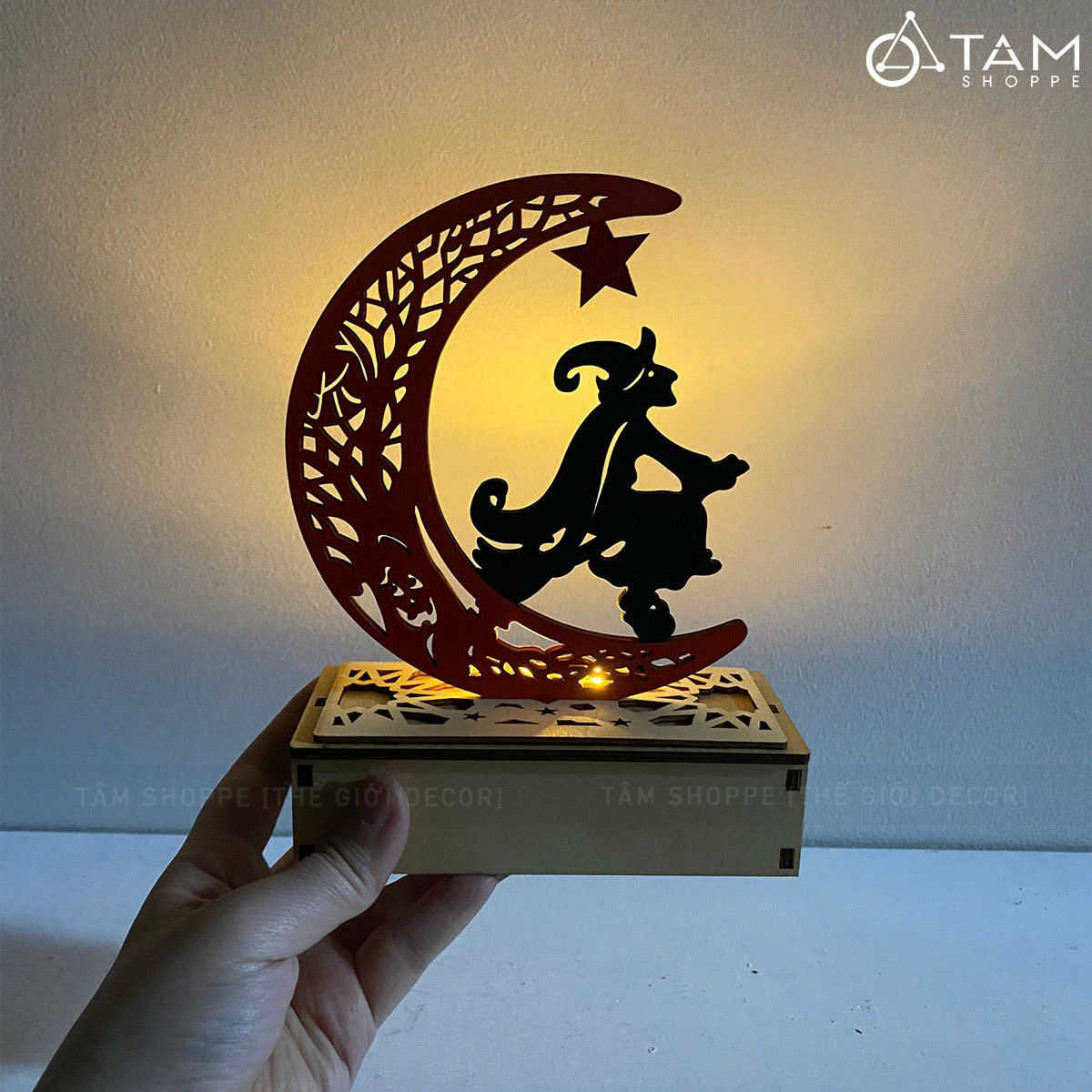SP nhận được gồm 01 cái gồm đế và mặt trăng rời nhau. Chỉ cần cắm mặt trăng vào khe có sẵn trên đế gỗ sẽ có ngay thành phẩm như hình.