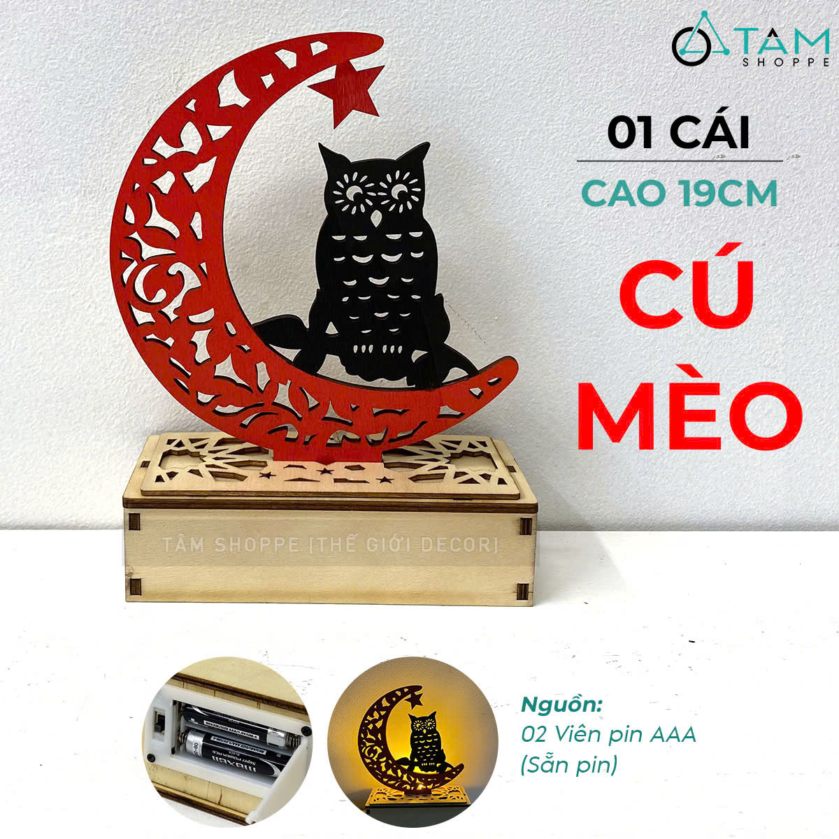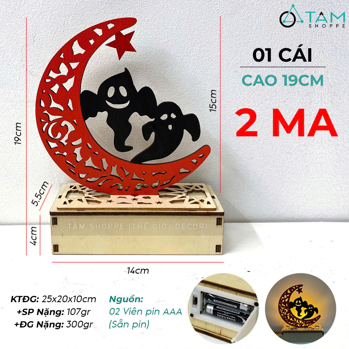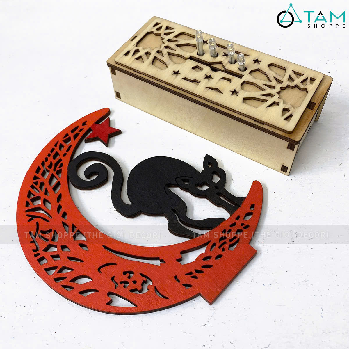 SP nhận được gồm 01 cái gồm đế và mặt trăng rời nhau. Chỉ cần cắm mặt trăng vào khe có sẵn trên đế gỗ sẽ có ngay thành phẩm như hình.