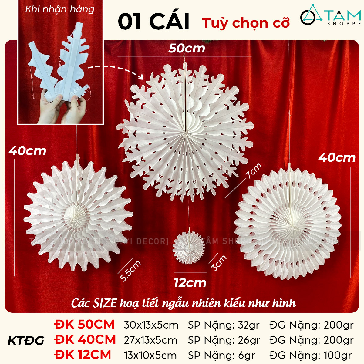 Giấy xếp Bông tuyết - Tuyết nhũ Trắng (Nhiều kiểu - Nhiều Size) trang trí đẹp mắt.