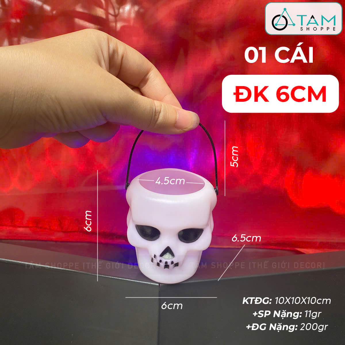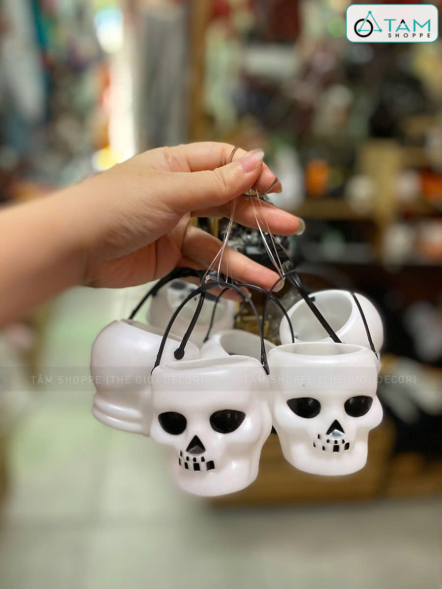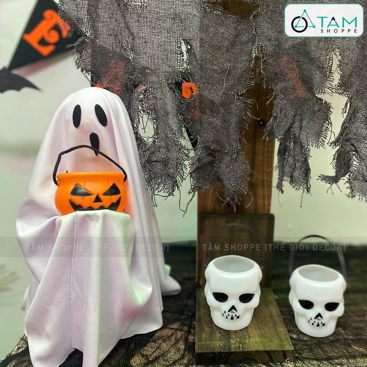 Giỏ xin kẹo Halloween đầu lâu nhí 6cm [Nhỏ nhắn - Làm phụ kiện] hoá trang đẹp mắt. Đồ hoá trang Halloween là những trang phục, phụ kiện và đạo cụ dùng để biến hoá thành các nhân vật đặc trưng của lễ hội Halloween. Mục đích là tạo vẻ ngoài kỳ bí, rùng rợn hoặc vui nhộn, phù hợp với không khí lễ hội.