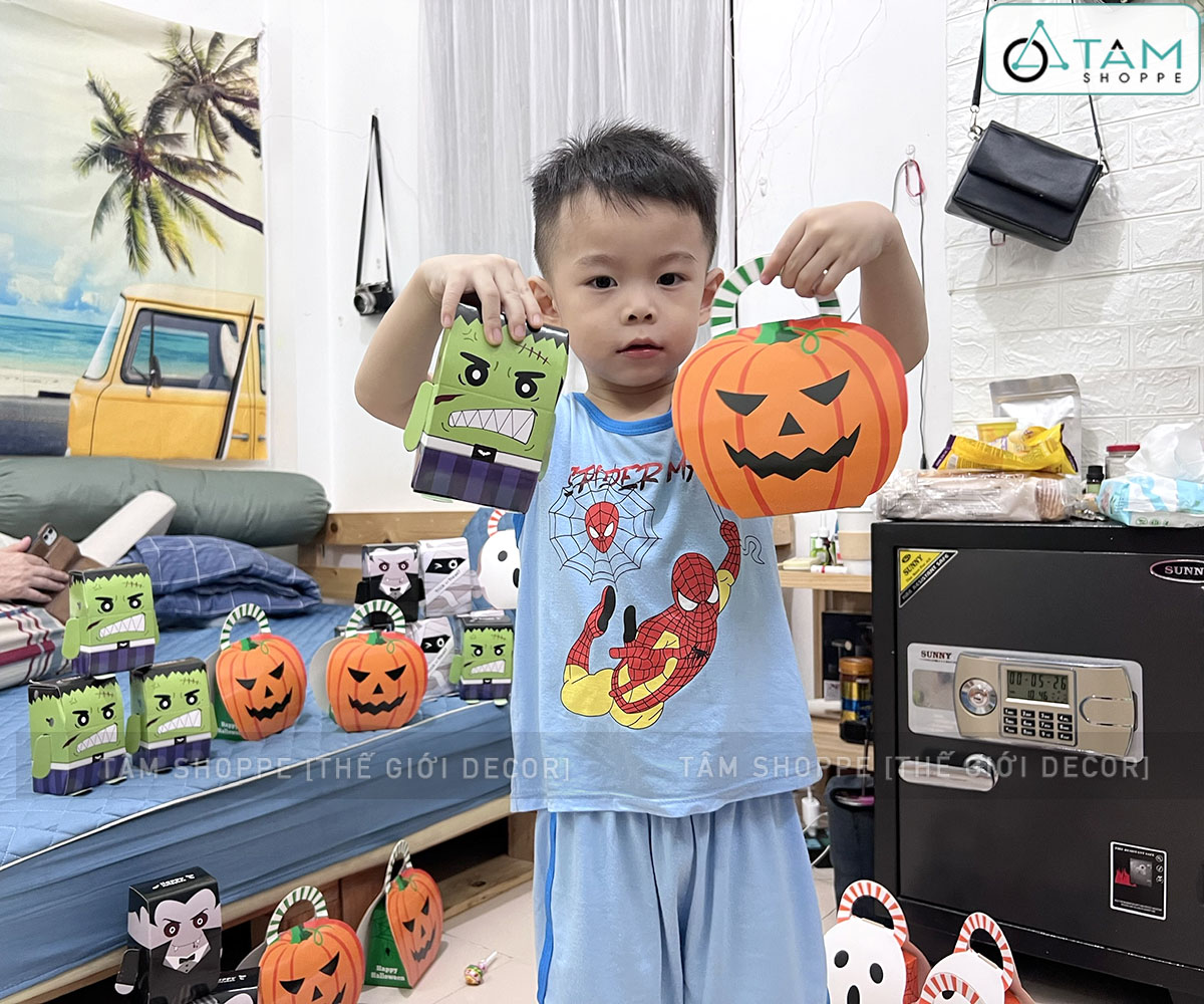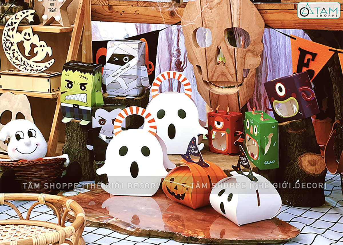 Hộp giấy đựng kẹo Halloween bí ngô ma trắng DIY tự lắp ráp [Cứng cáp - Ráp dễ] đẹp mắt, tiện ích...