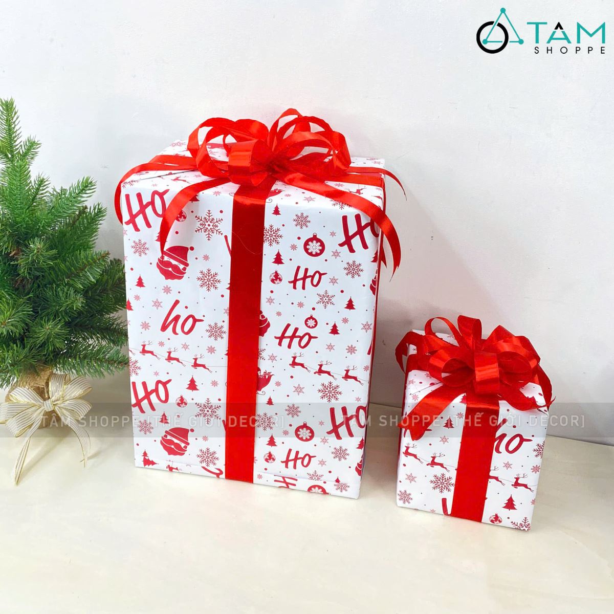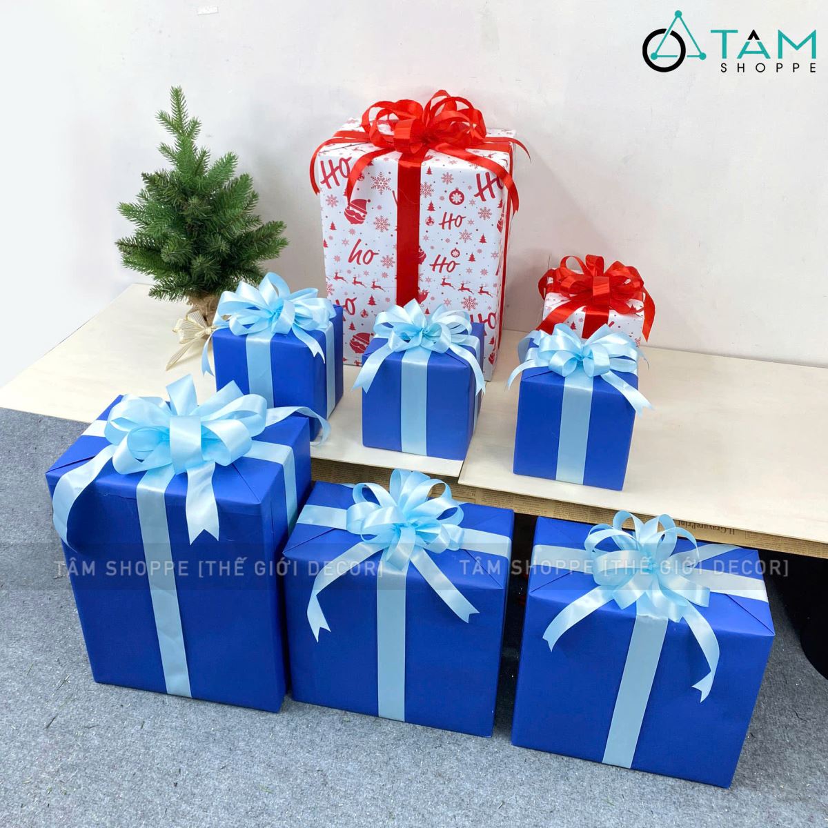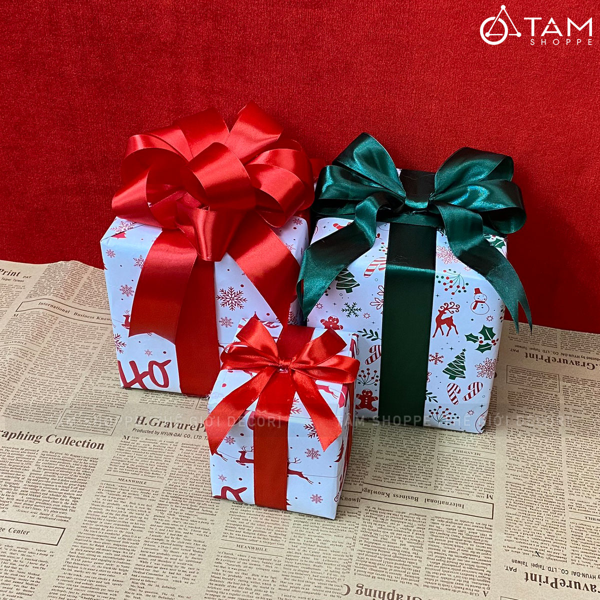 Hộp quà trang trí Noel nơ ruy băng lụa [Làm sẵn - Nhiều cỡ/màu] trang trí đẹp mắt