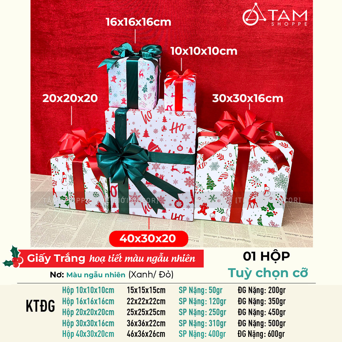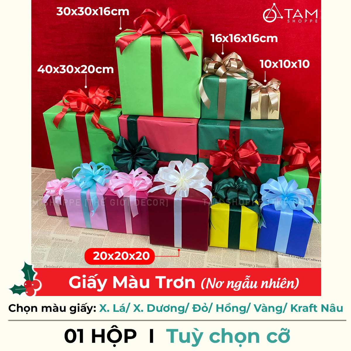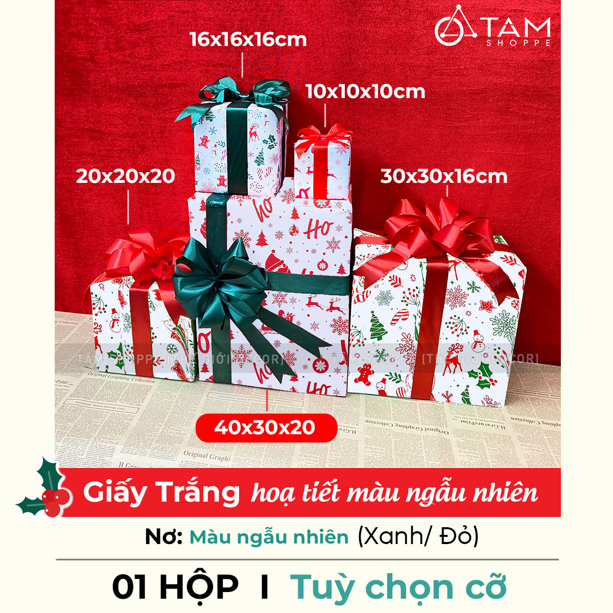 Hộp quà trang trí Noel nơ ruy băng lụa [Làm sẵn - Nhiều cỡ/màu] trang trí đẹp mắt