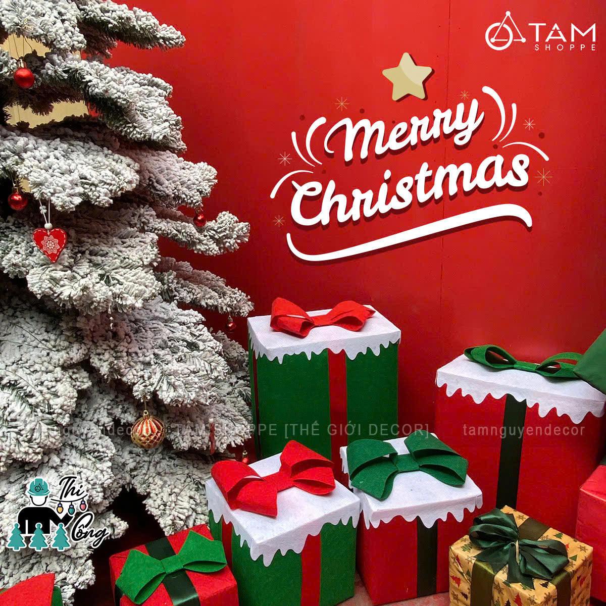 Hộp quà trang trí Noel vải nỉ tuyết tan chảy [Làm sẵn - Nhiều cỡ/màu] trang trí đẹp mắt. Đồ trang trí Noel là các vật dụng, phụ kiện, hoặc mô hình được dùng để trang hoàng không gian trong dịp Giáng Sinh (Noel), nhằm tạo nên không khí ấm áp, vui tươi và mang đậm sắc màu lễ hội.