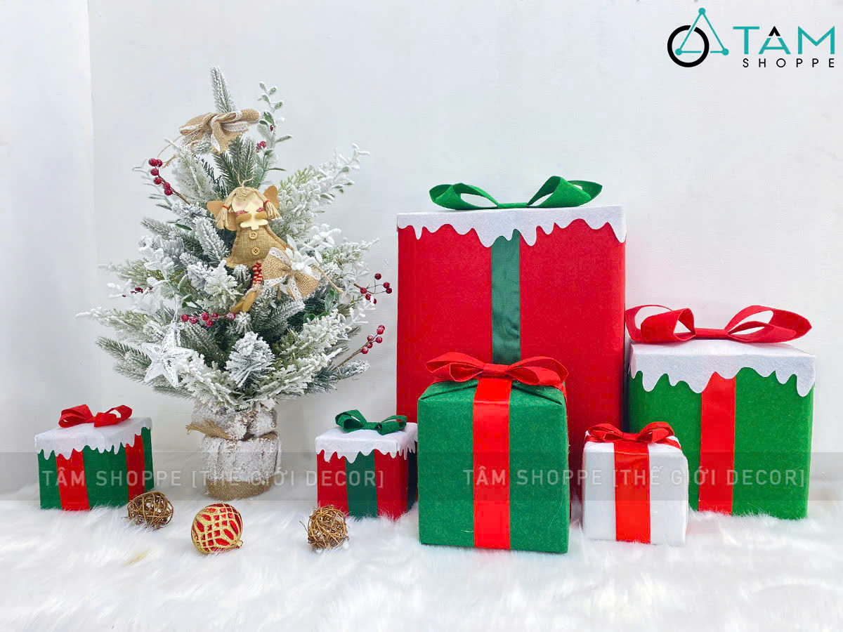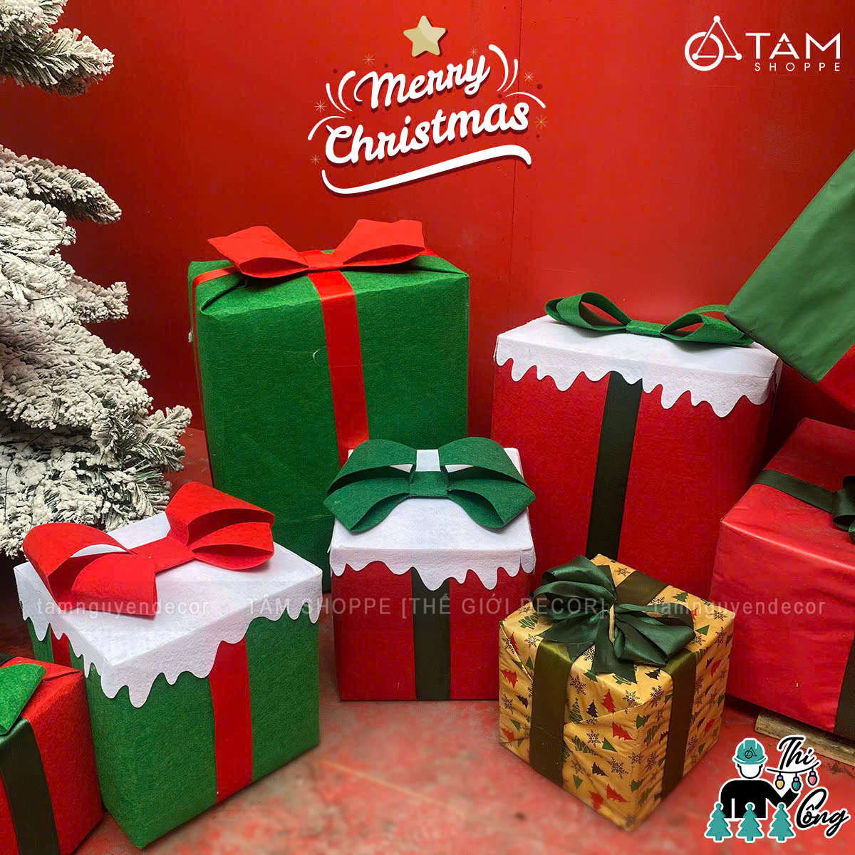 Hộp quà trang trí Noel vải nỉ tuyết tan chảy [Làm sẵn - Nhiều cỡ/màu] trang trí đẹp mắt.