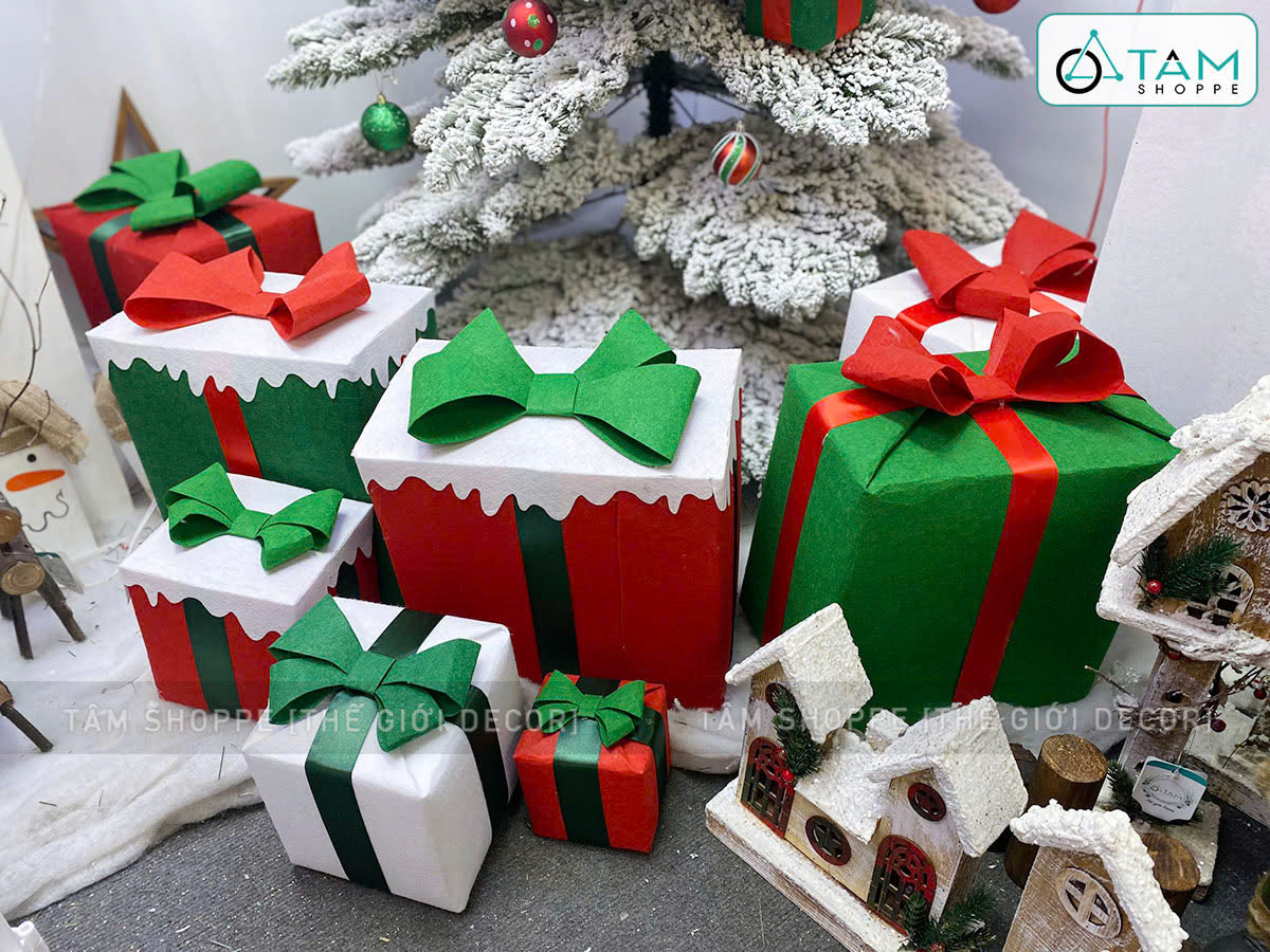 Hộp quà trang trí Noel là món đồ trang trí phổ biến trong mùa Giáng Sinh. Những hộp quà lớn nhỏ và nhiều màu sắc (đỏ, vàng, xanh, bạc…) dùng để dưới gốc cây thông Noel hoặc treo trên cành cây, tạo không khí vui vẻ, hân hoan. Đặt xen kẽ các hộp quà cùng dây đèn led, tượng ông già Noel, người tuyết… ở góc nhà hay bên cửa sổ giúp không gian thêm ấm áp và sinh động.