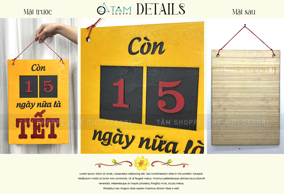 Lịch gỗ Đếm ngày đến Tết [Gỗ nhẹ - Sơn thủ công] 30x42cm trang trí đẹp mắt. Đồ trang trí Tết/ Trung Thu là các vật dụng, phụ kiện, hoặc mô hình được dùng để trang hoàng không gian trong dịp lễ, nhằm tạo nên không khí ấm áp, vui tươi và mang đậm sắc màu lễ hội.