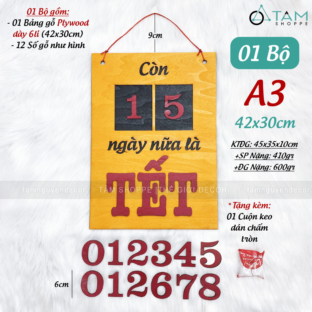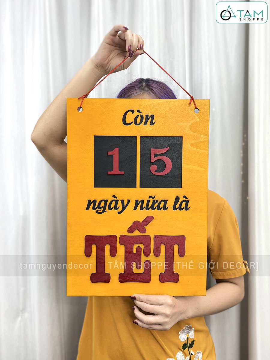Lịch gỗ Đếm ngày đến Tết [Gỗ nhẹ - Sơn thủ công] 30x42cm trang trí đẹp mắt