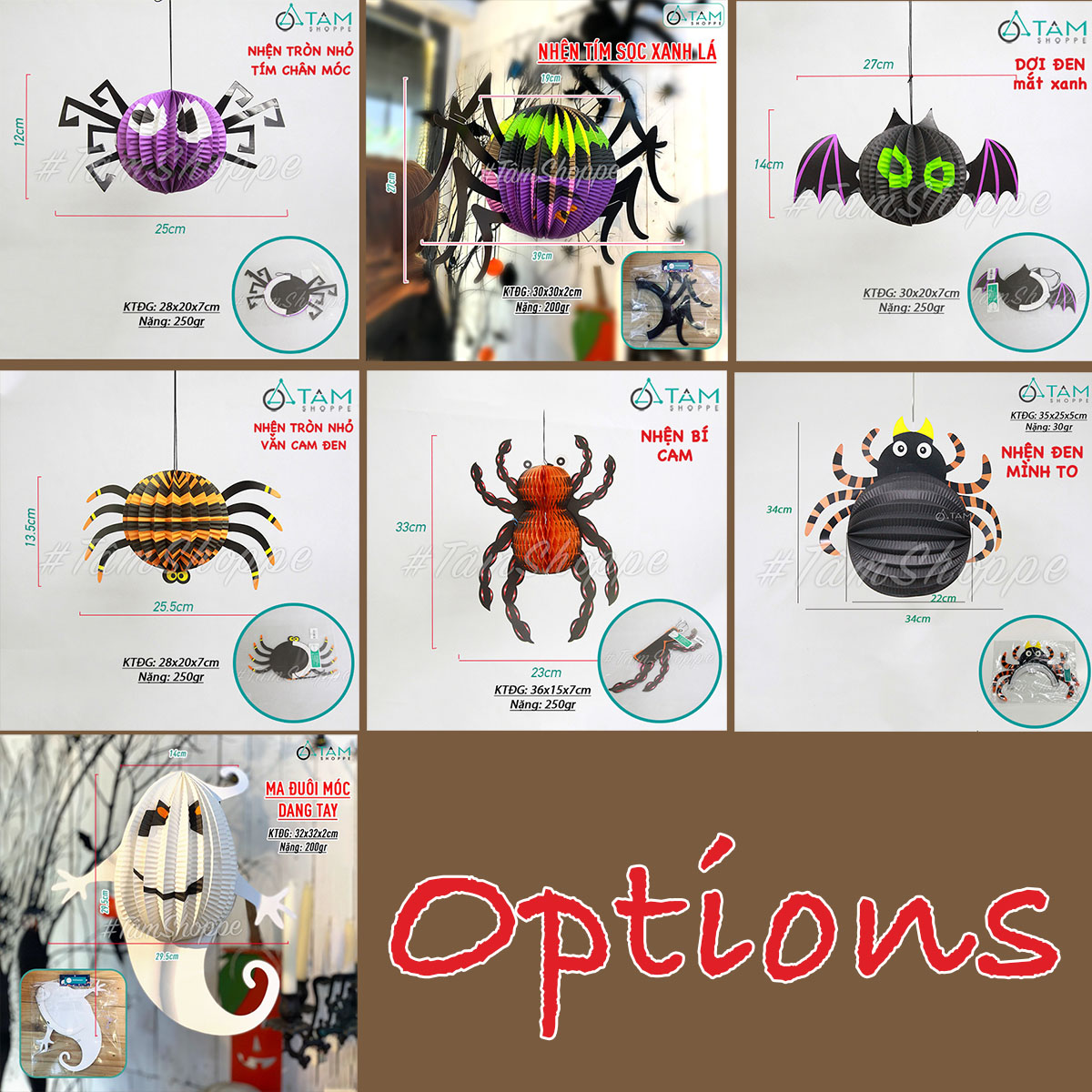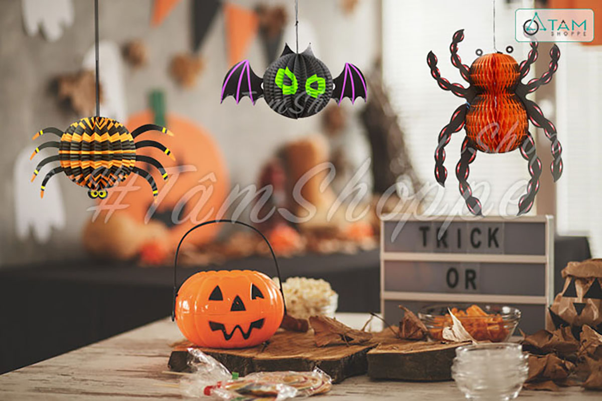 Lồng đèn giấy con ma/ con nhện/ con dơi Halloween [Nhiều kiểu - Xếp gọn] trang trí đẹp mắt. Đồ trang trí Halloween là những vật dụng, mô hình hoặc phụ kiện được dùng để tạo không khí rùng rợn, huyền bí, vui nhộn đặc trưng cho ngày lễ Halloween (31/10).