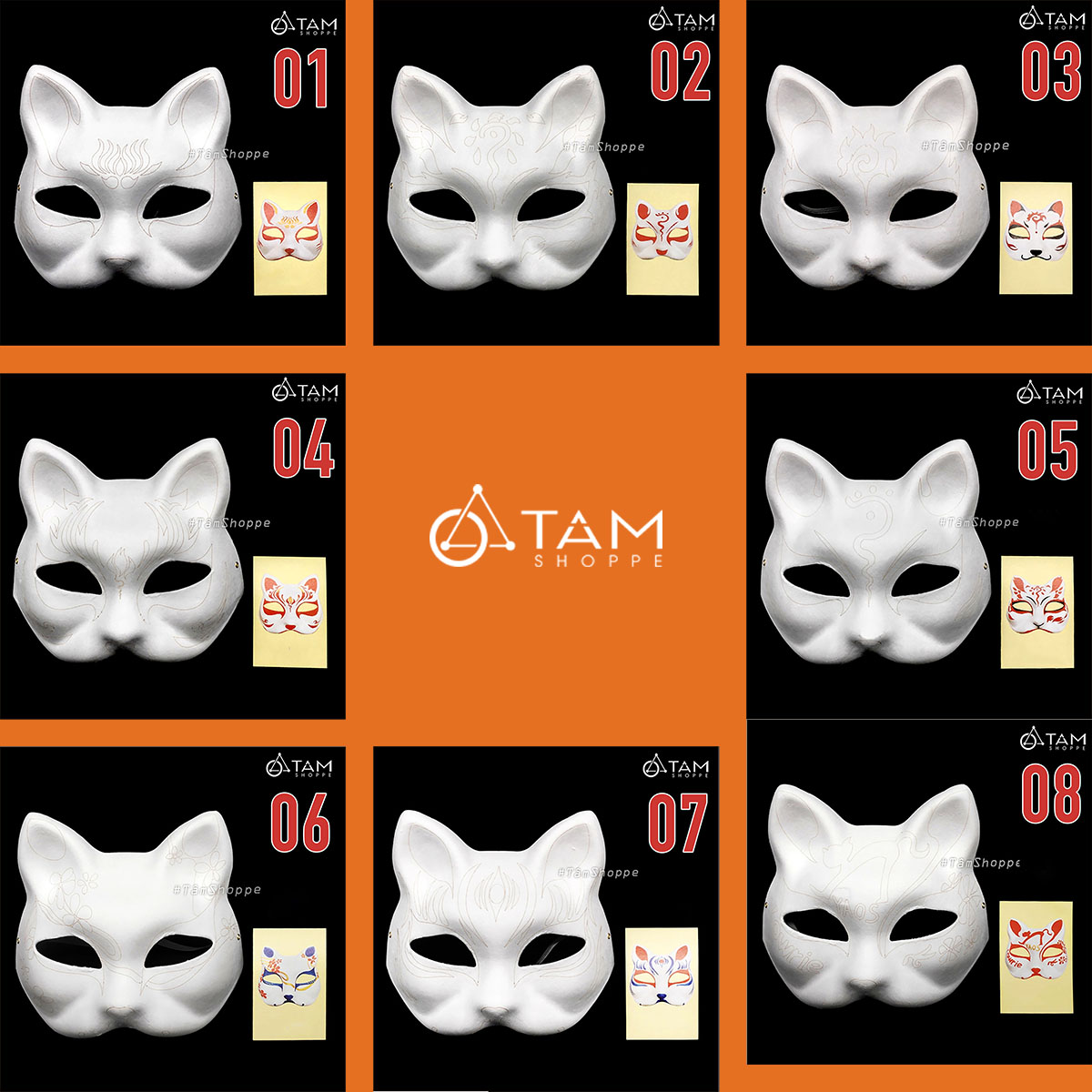 Mặt nạ nửa mặt mèo Nhật tự vẽ màu [Nửa mặt trên - Ngẫu nhiên kiểu] hoá trang đẹp mắt.