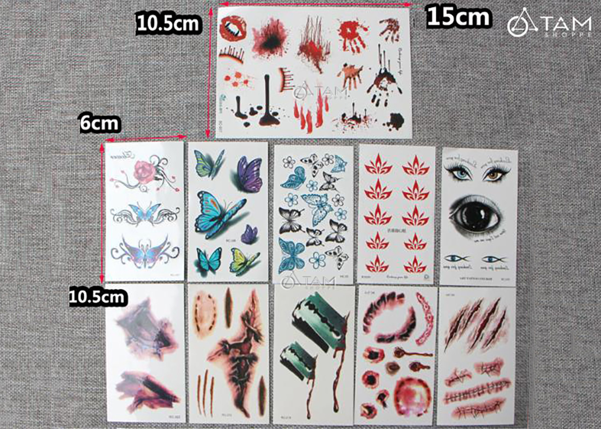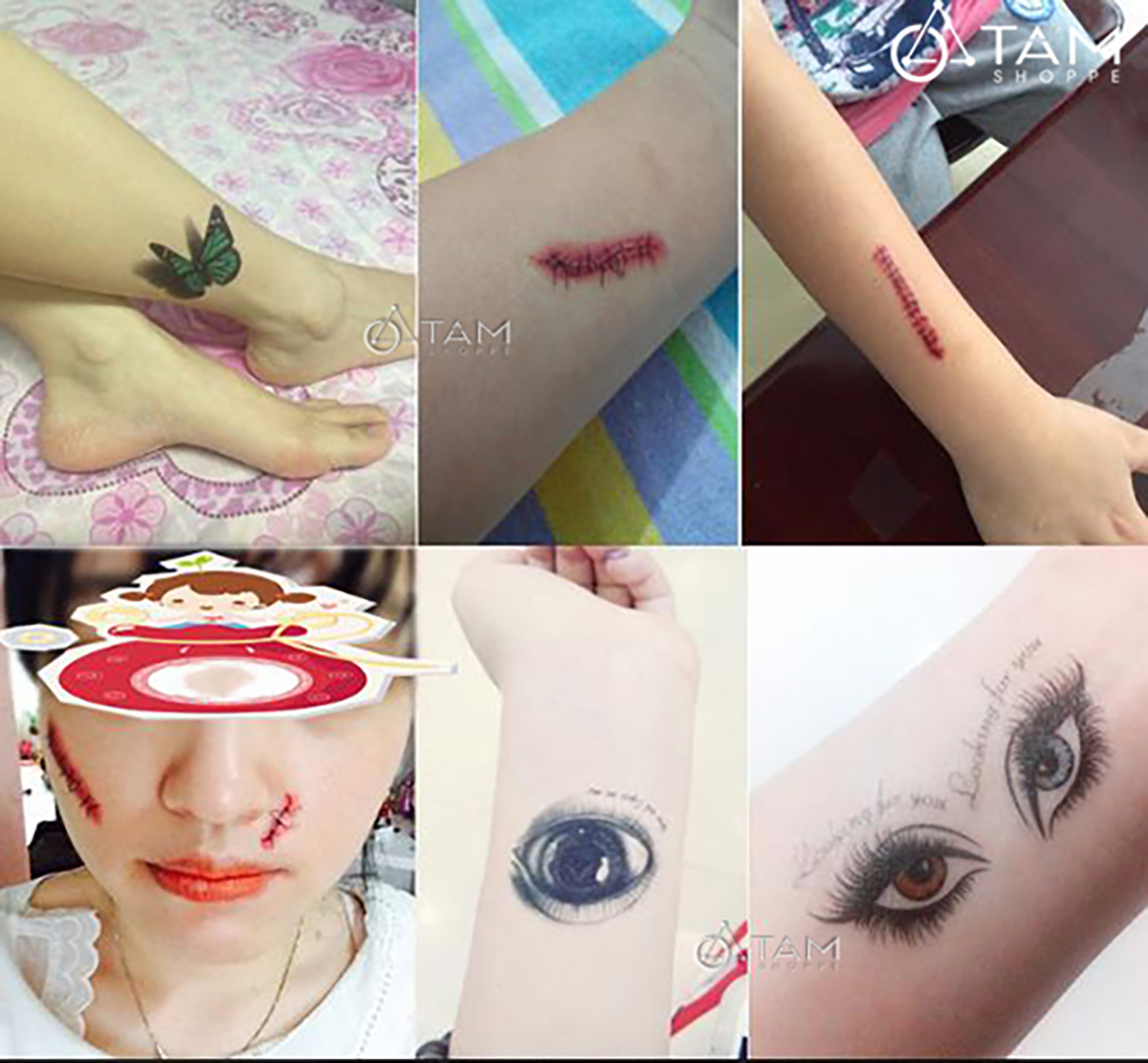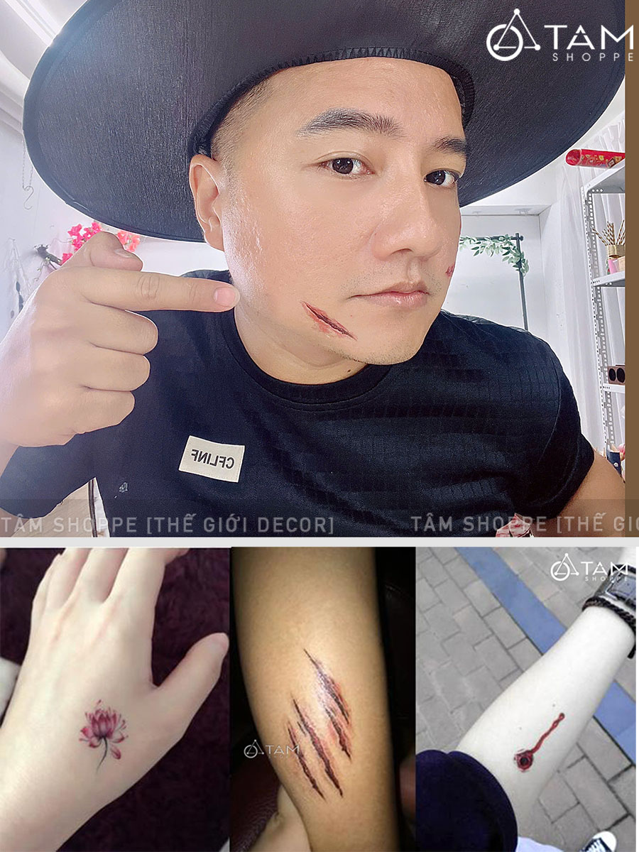 Miếng dán hình xăm giả sẹo, hoạ tiết hoá trang [Nhiều kiểu - Dễ dán] hoá trang đẹp mắt.