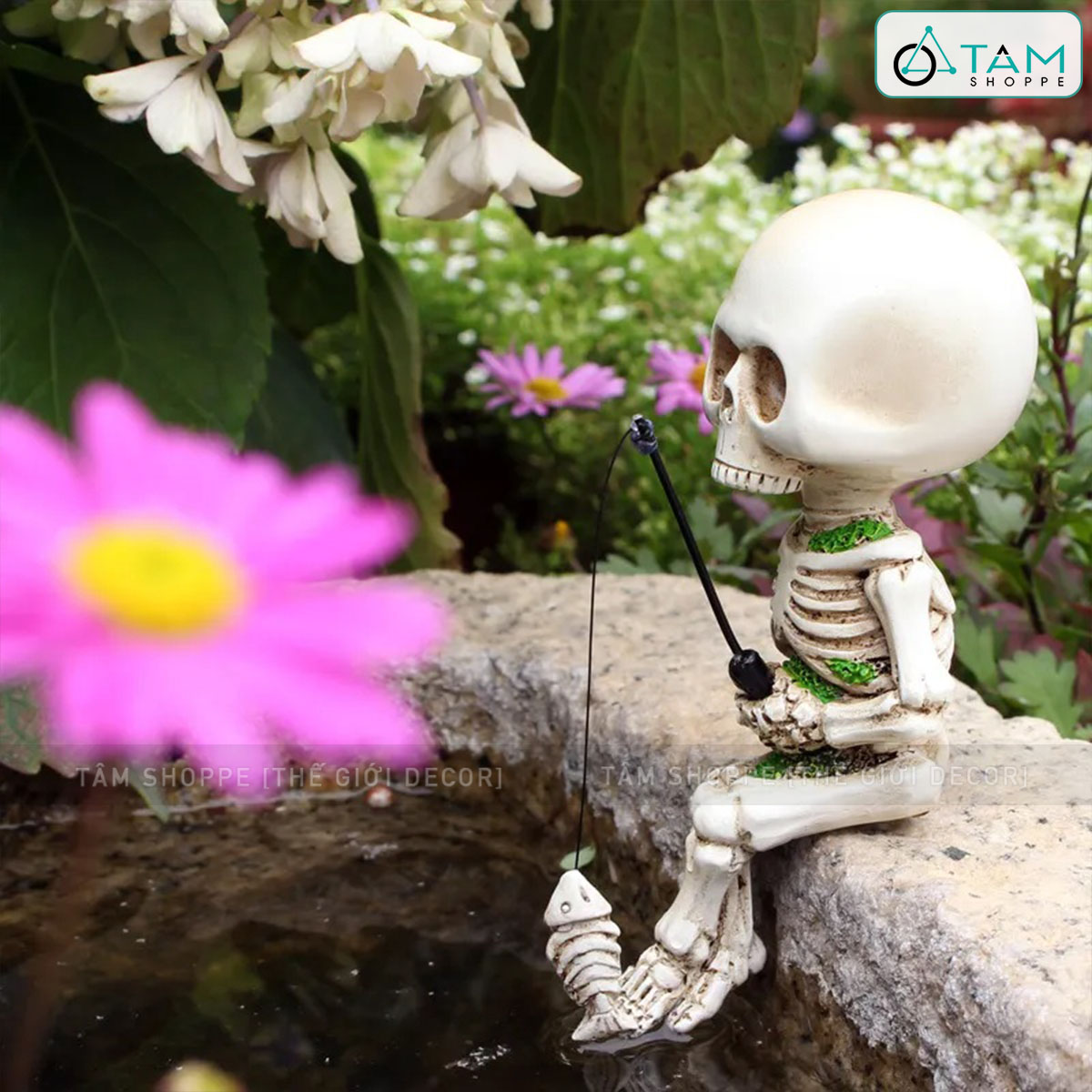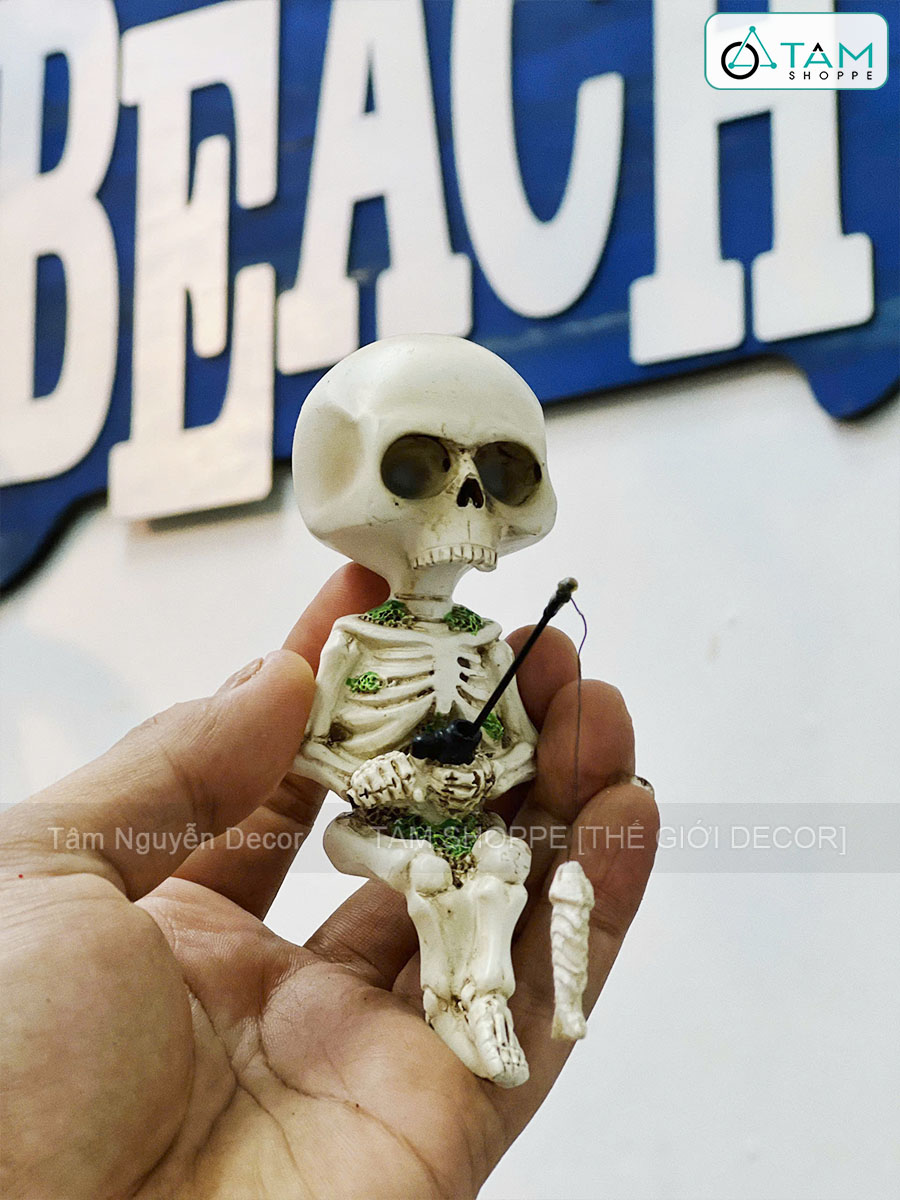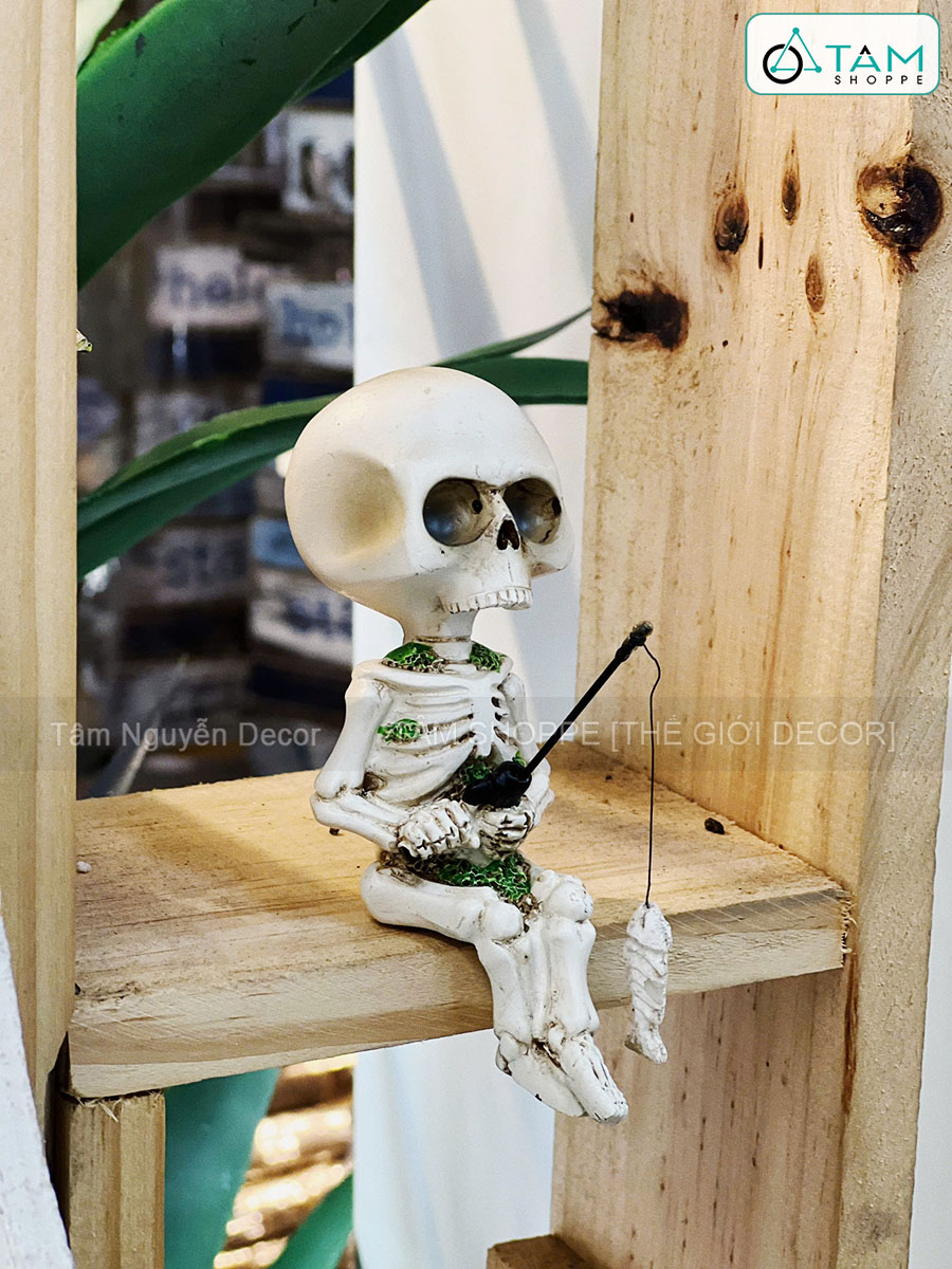 Mô hình bộ xương ngồi câu cá mini decor [Cao 11,5cm - Nhựa đặc] trang trí đẹp mắt.
