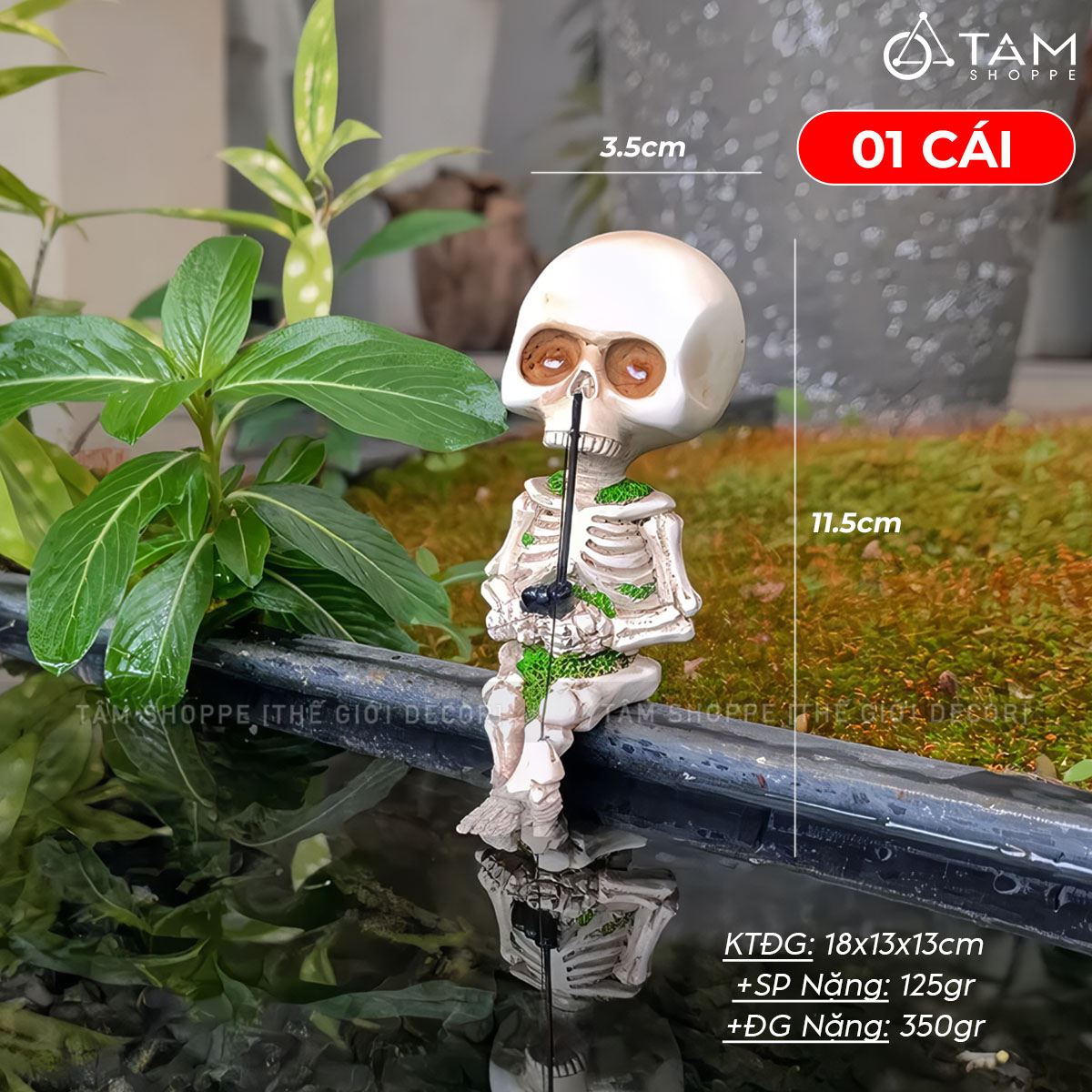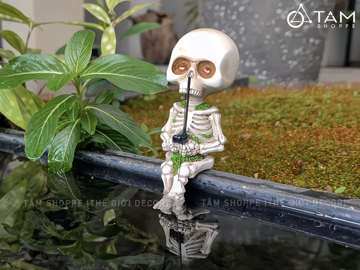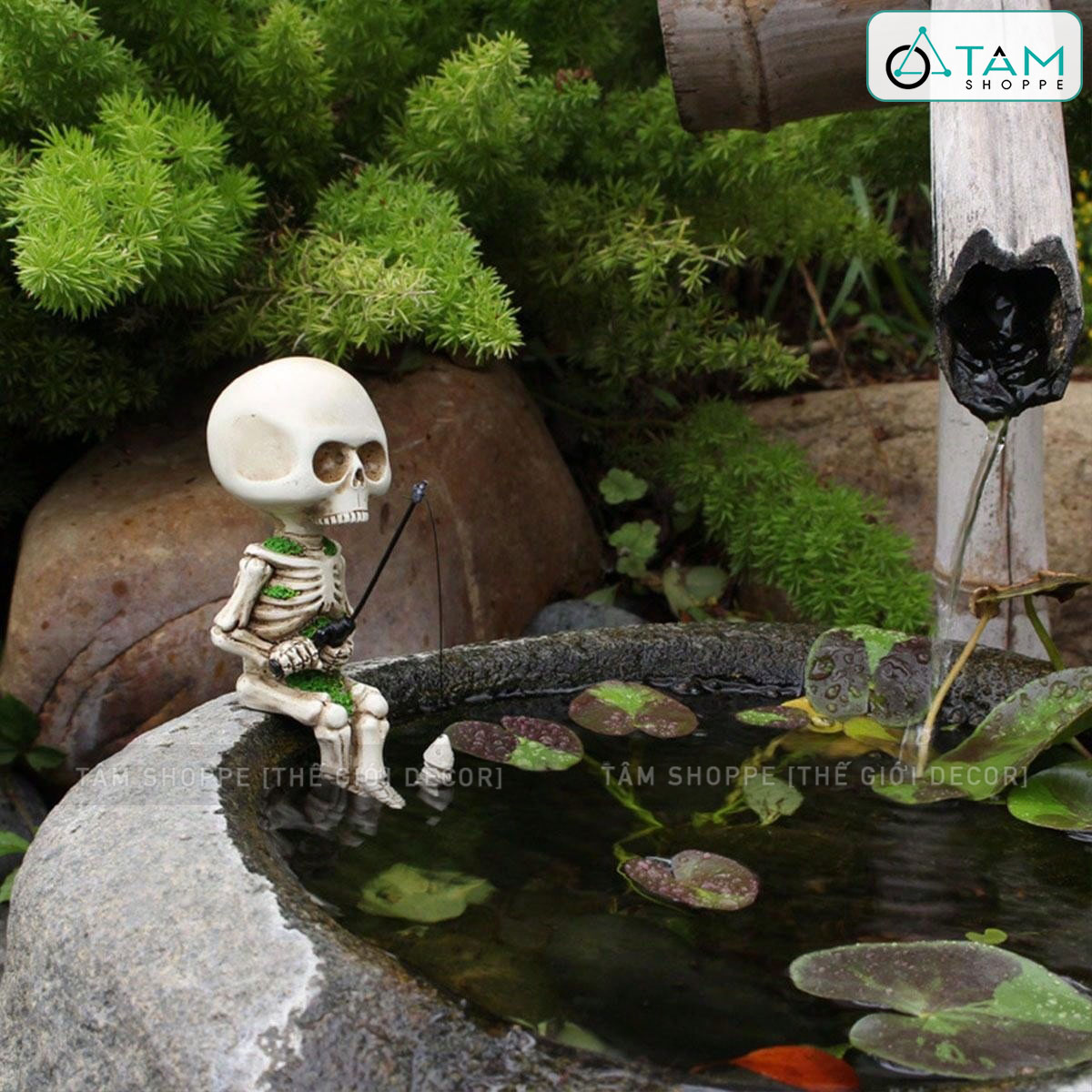 Mô hình bộ xương ngồi câu cá mini decor [Cao 11,5cm - Nhựa đặc] trang trí đẹp mắt.