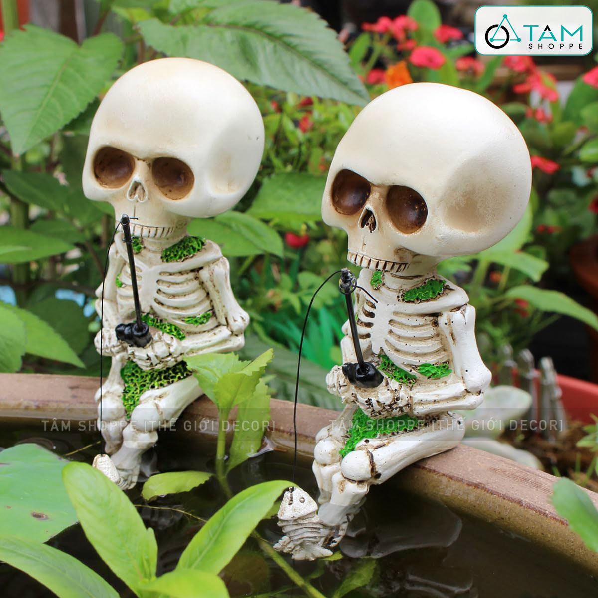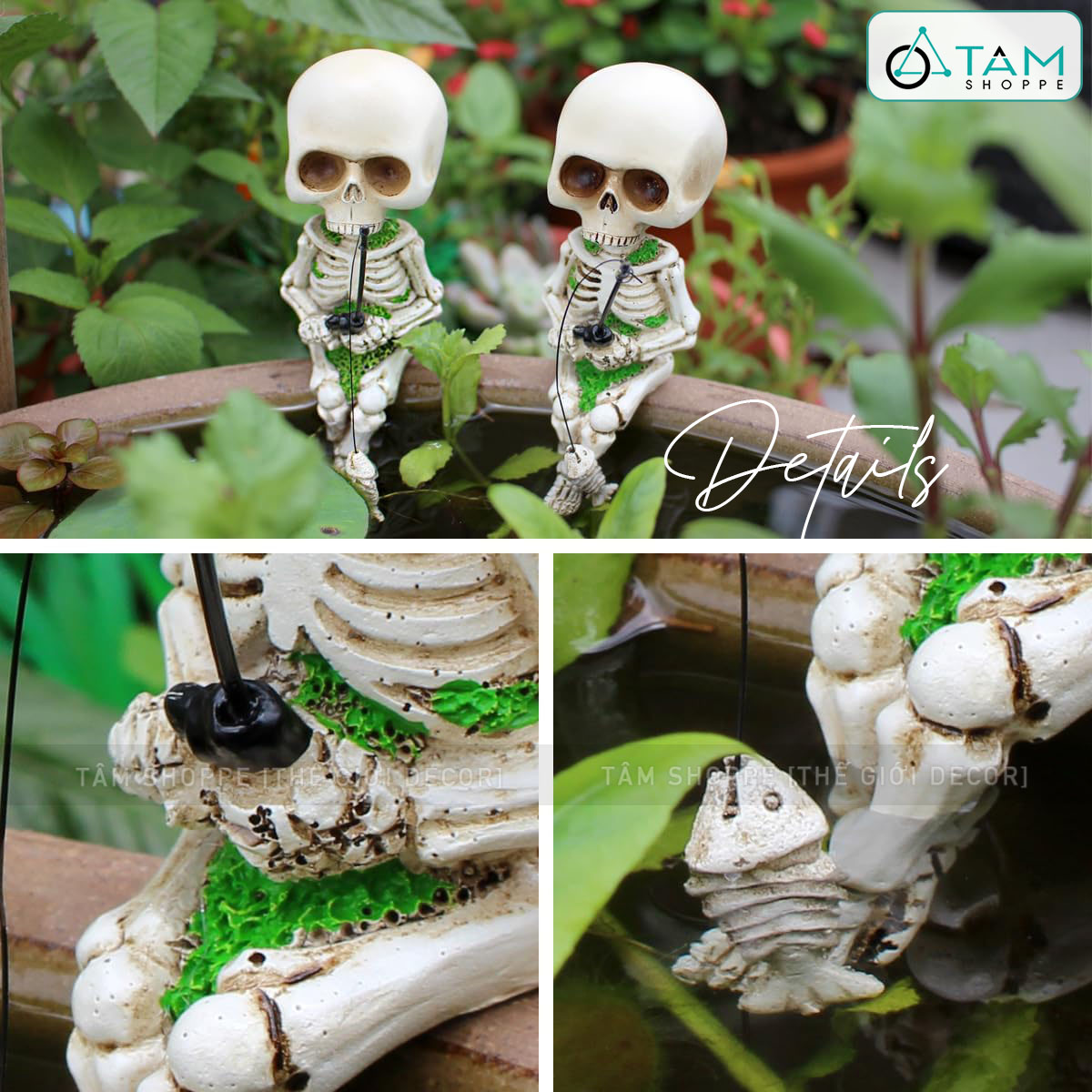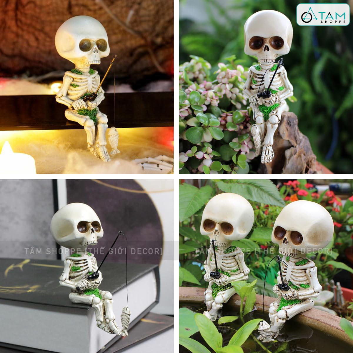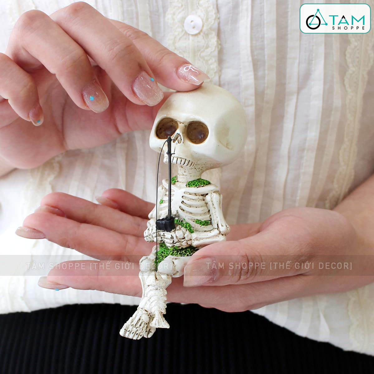 Mô hình bộ xương ngồi câu cá mini decor [Cao 11,5cm - Nhựa đặc] trang trí đẹp mắt. Đồ trang trí Halloween là những vật dụng, mô hình hoặc phụ kiện được dùng để tạo không khí rùng rợn, huyền bí, vui nhộn đặc trưng cho ngày lễ Halloween (31/10).