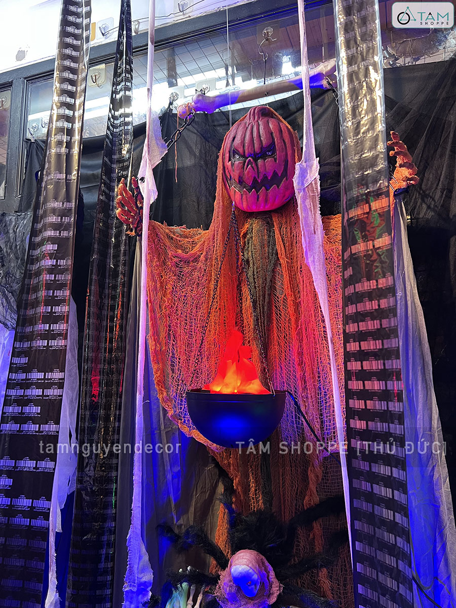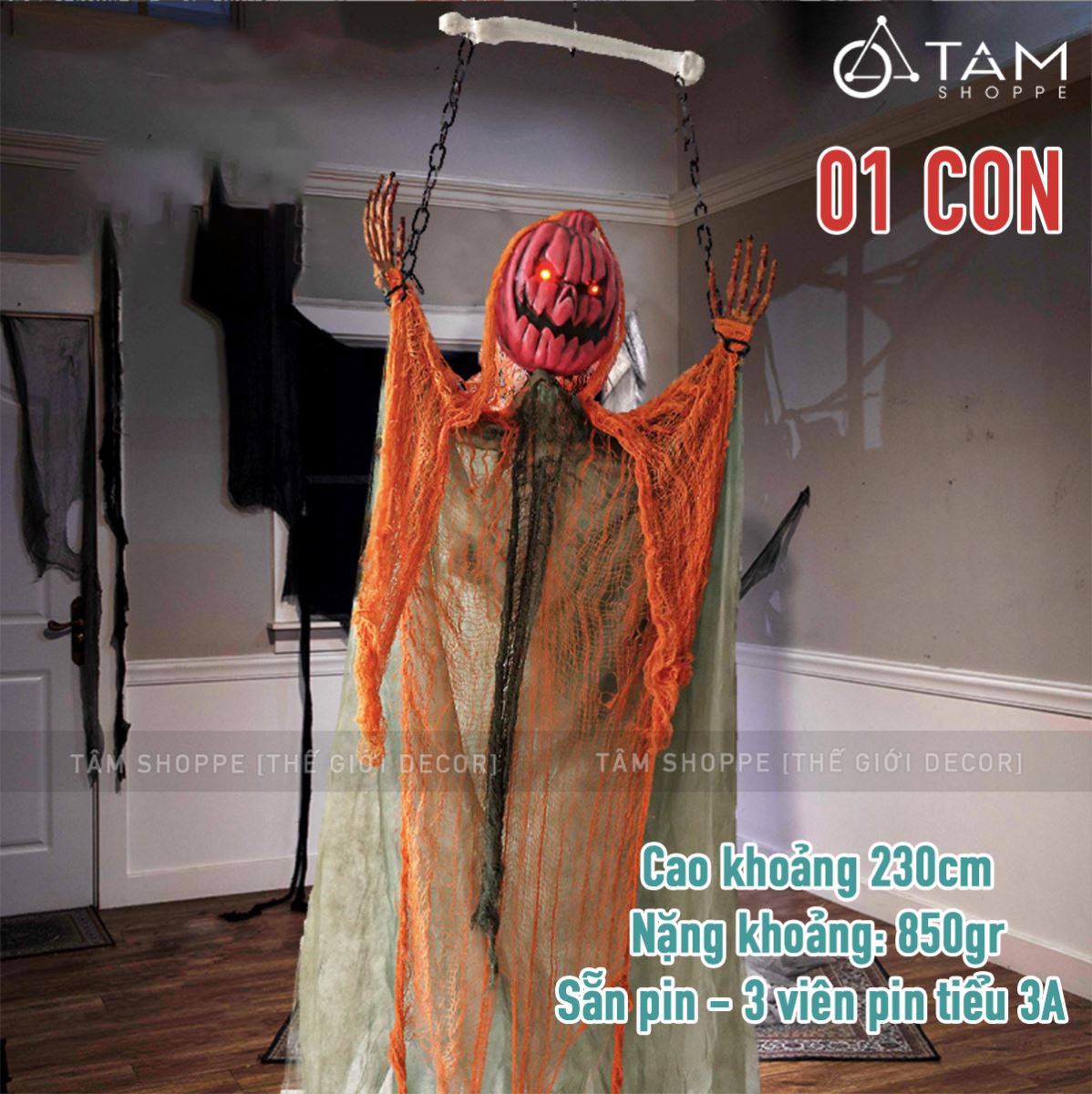 Mô hình con ma bí ngô treo xương [Lắc lư - Cảm ứng tiếng động] trang trí đẹp mắt. Đồ trang trí Halloween là những vật dụng, mô hình hoặc phụ kiện được dùng để tạo không khí rùng rợn, huyền bí, vui nhộn đặc trưng cho ngày lễ Halloween (31/10).