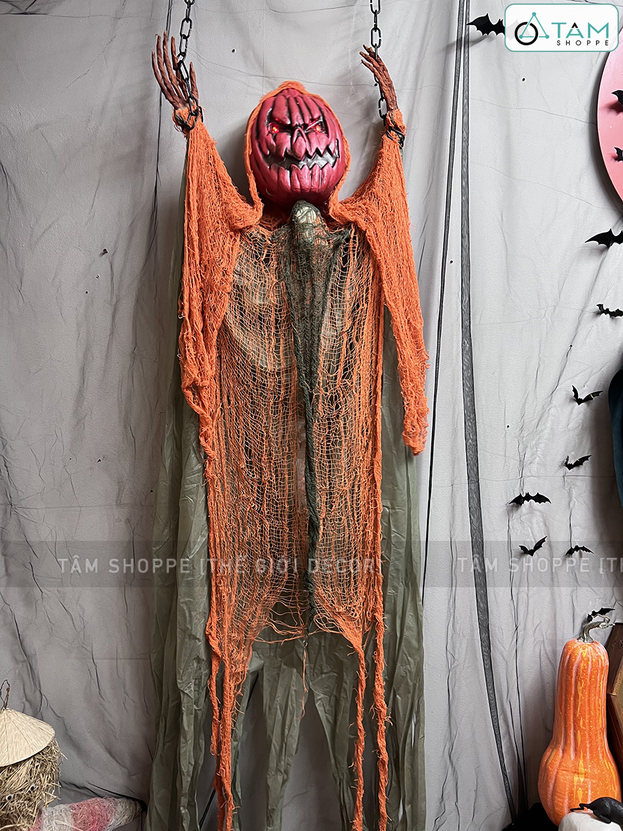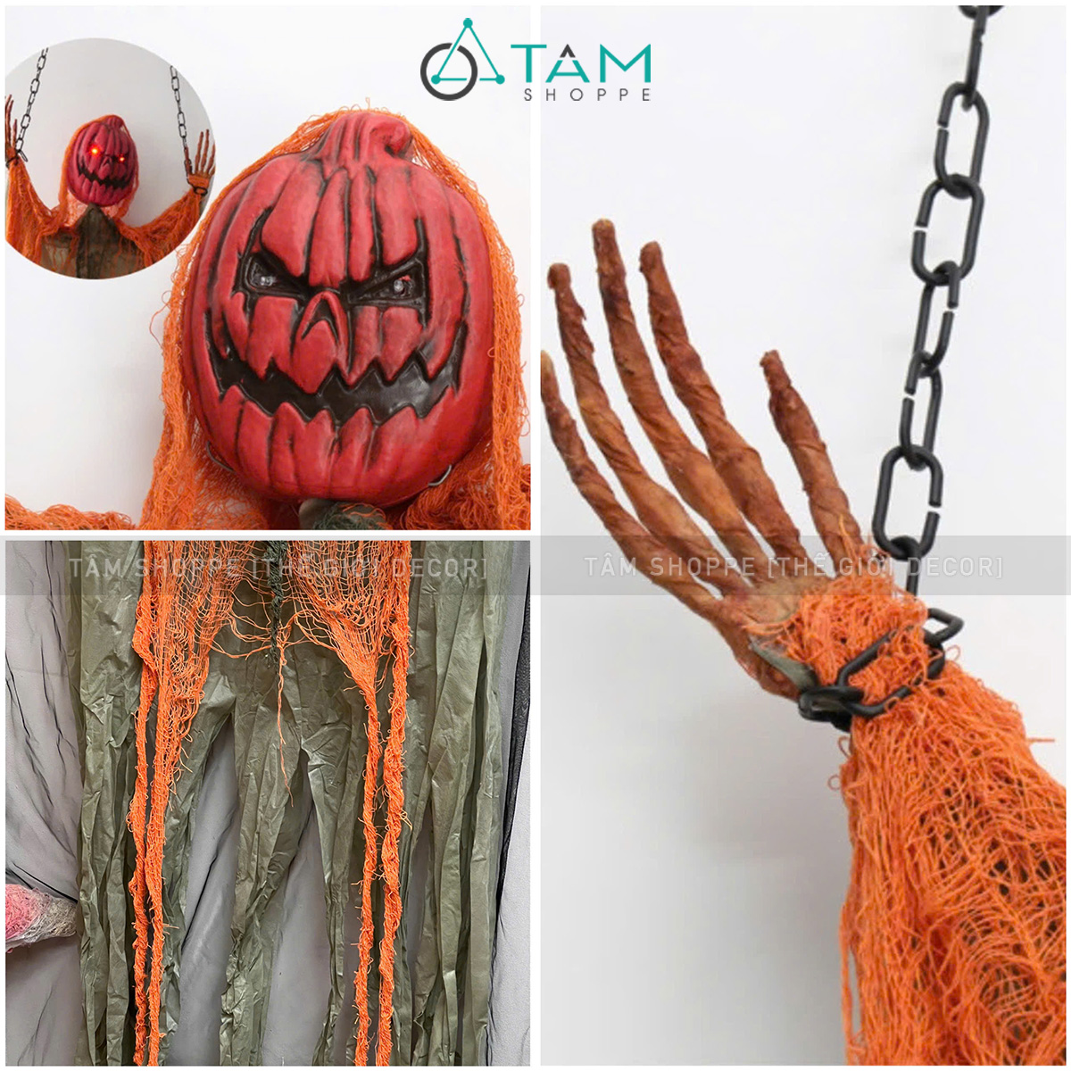 Mô hình con ma bí ngô treo xương [Lắc lư - Cảm ứng tiếng động] trang trí đẹp mắt.