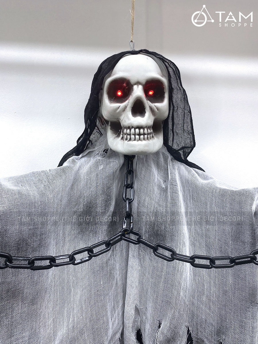 Mô hình con ma đeo xích điện tử gào thét dài 200cm [Mắt led - Cảm ứng tiếng động] trang trí đẹp mắt.