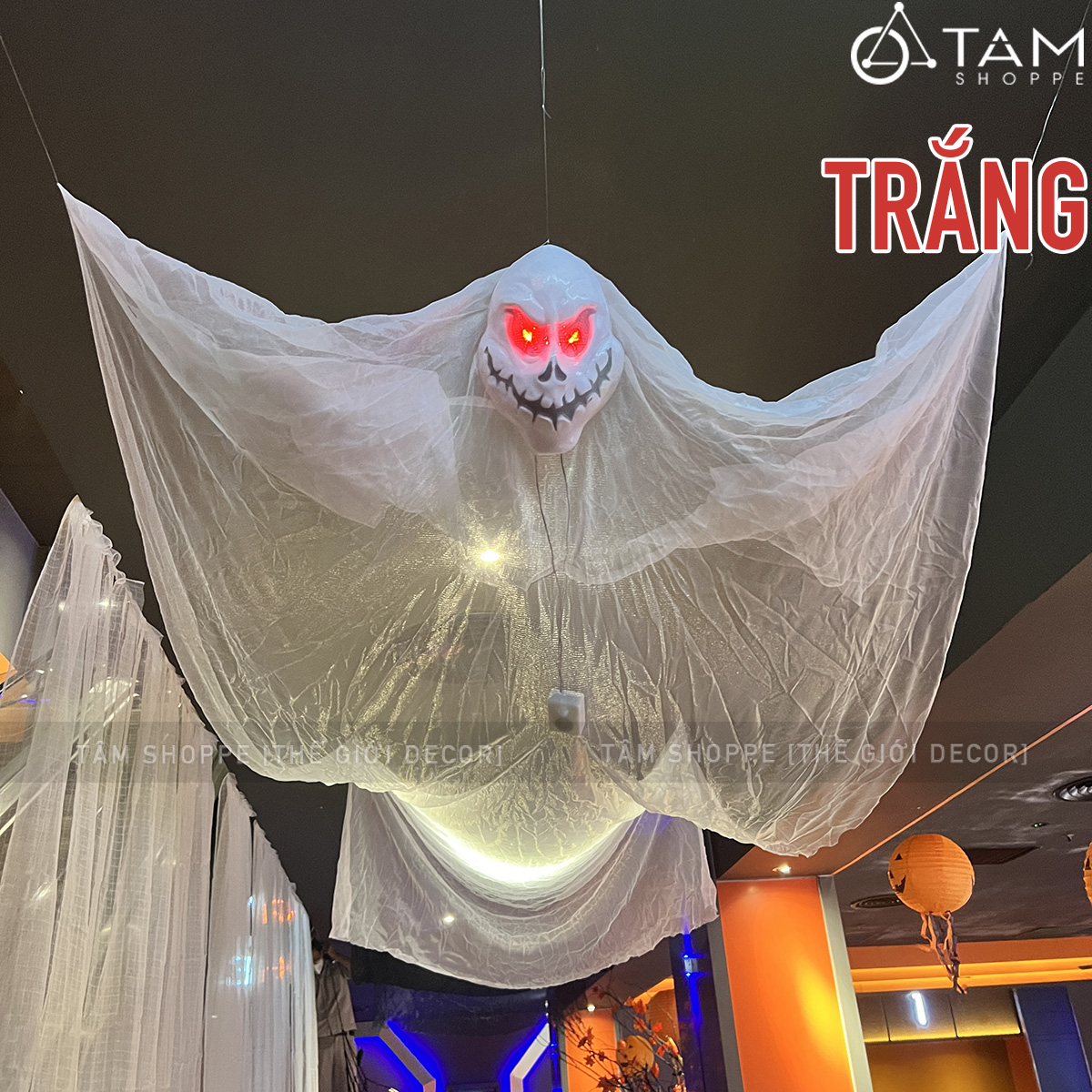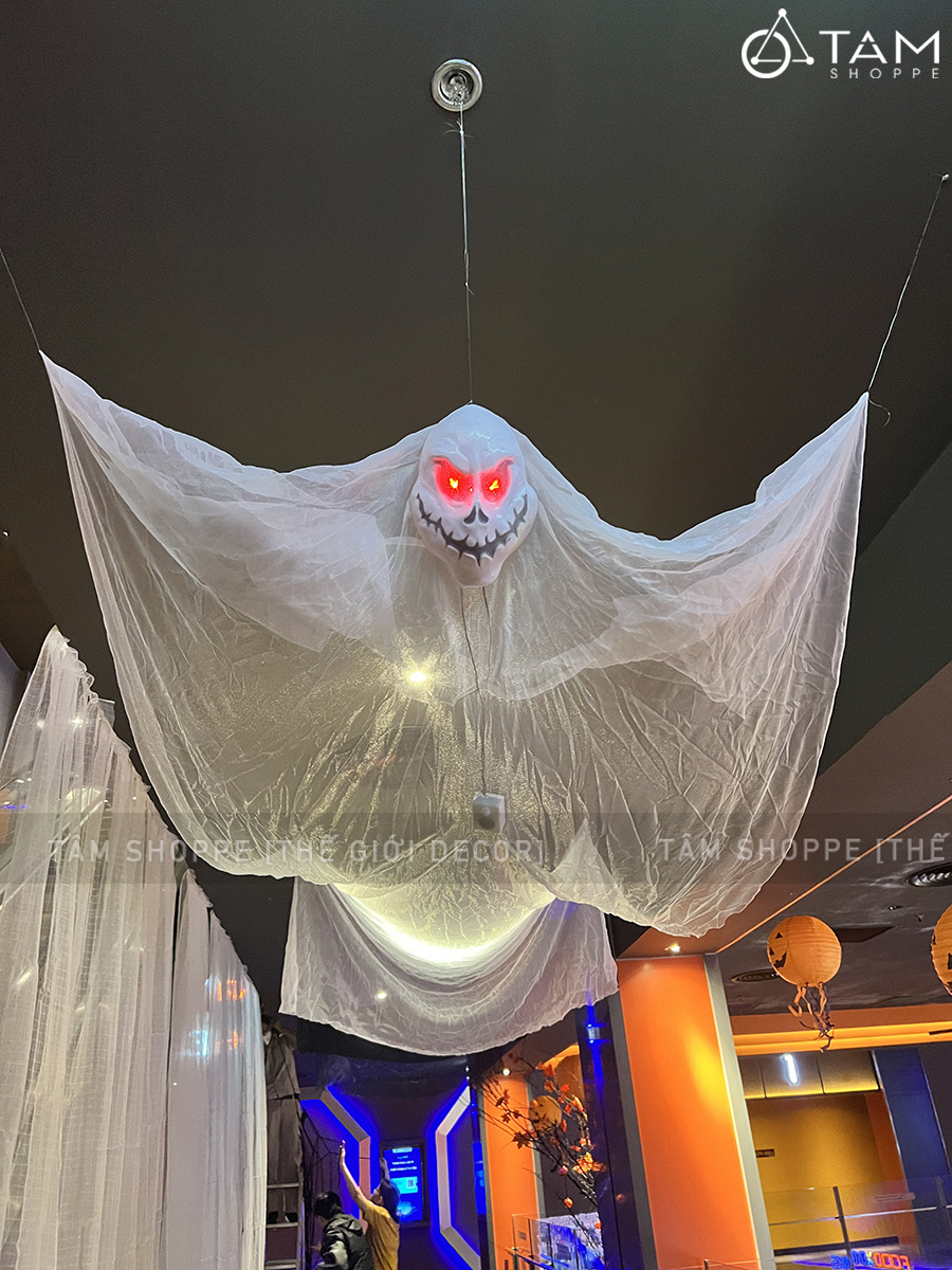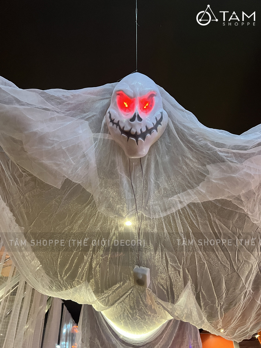 Mô hình con ma vải đu dây bay bay dài 3m [Mắt Led - Cảm ứng phát âm thanh] trang trí đẹp mắt.