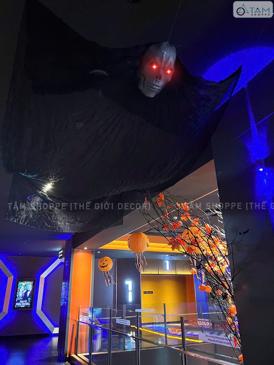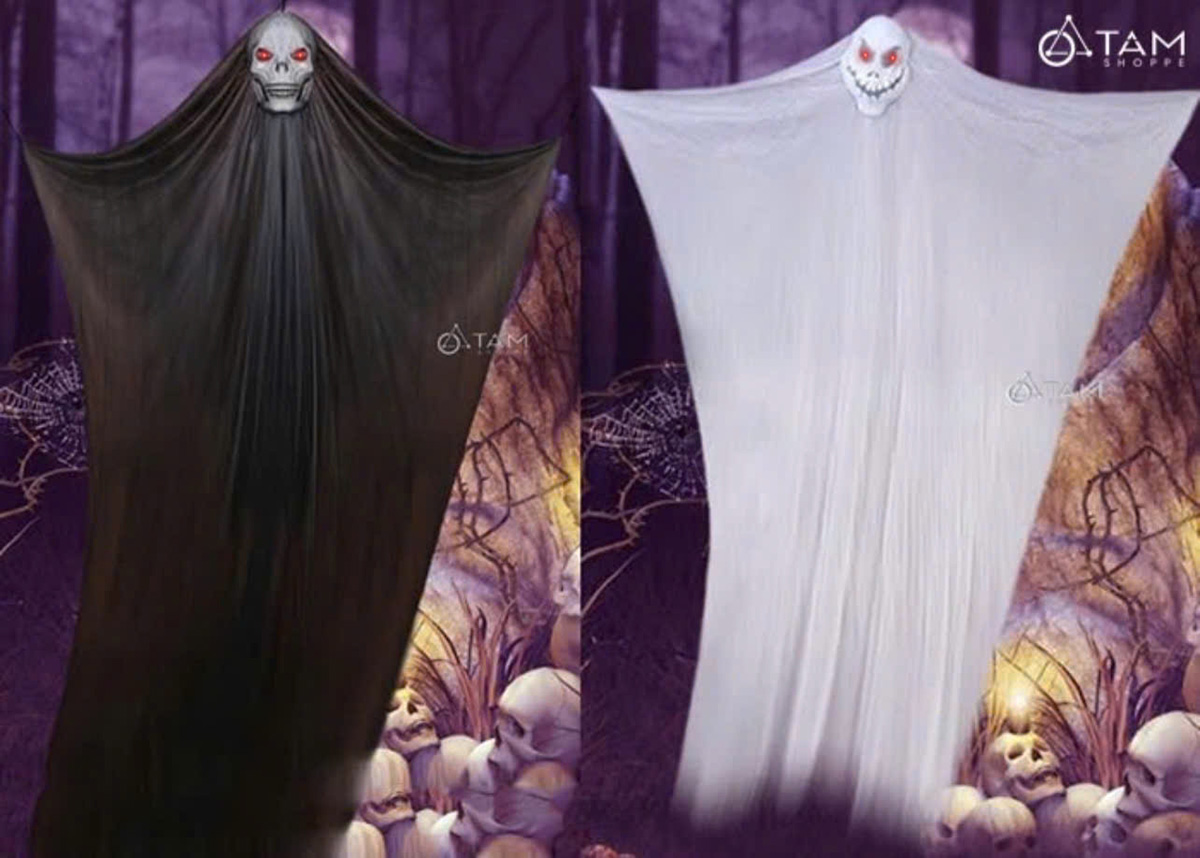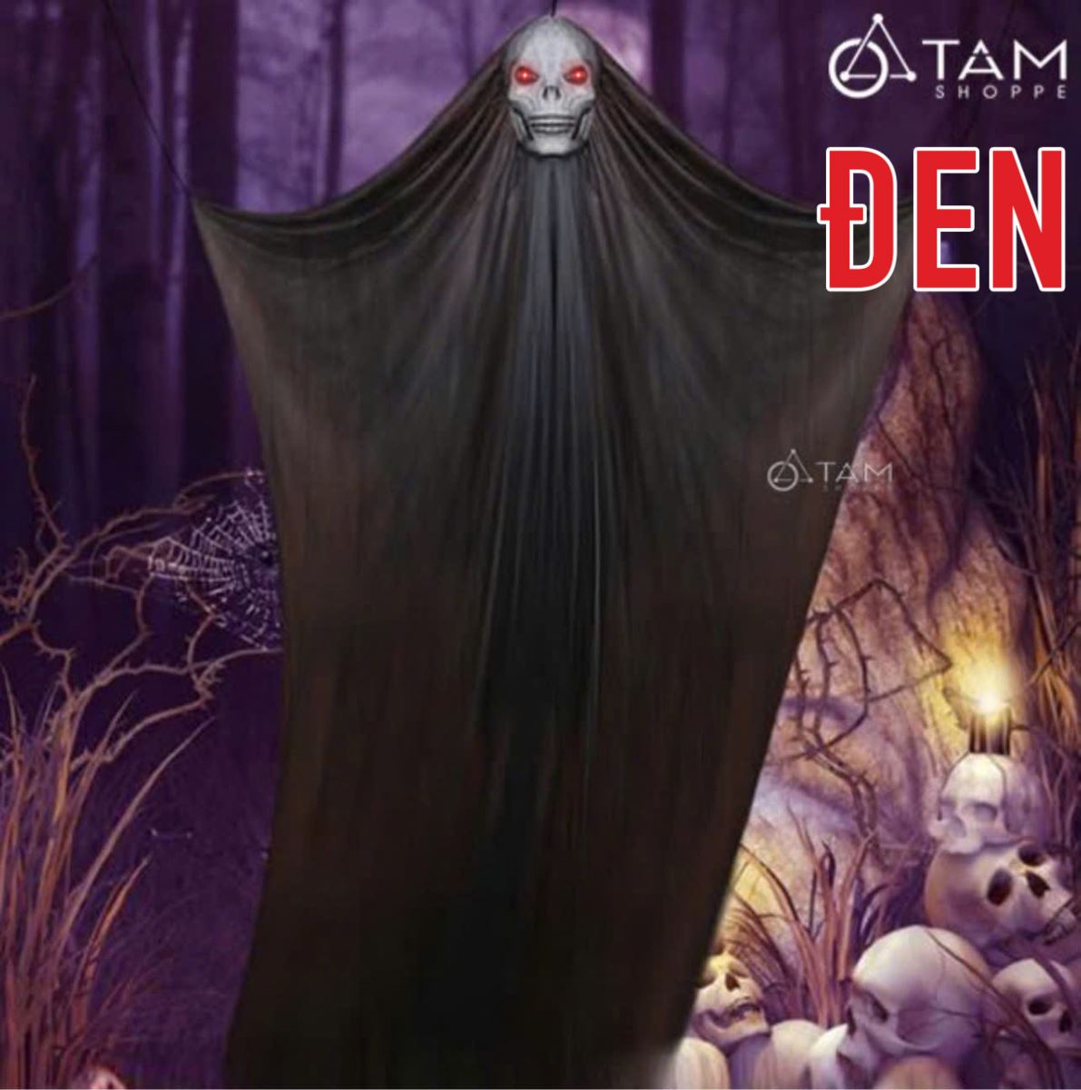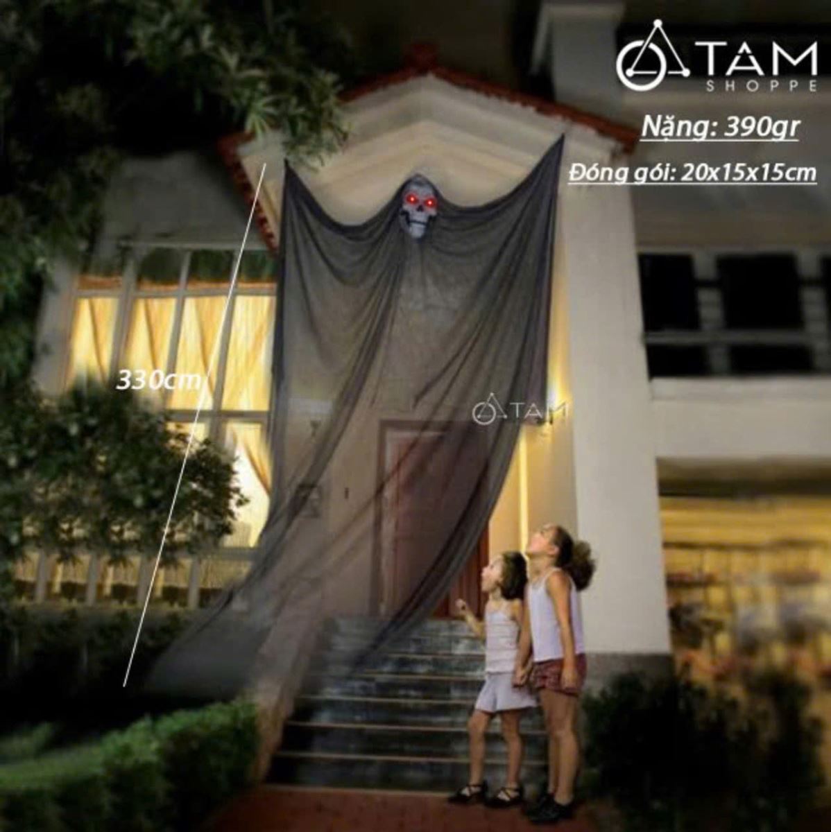 Mô hình con ma vải đu dây bay bay dài 3m [Mắt Led - Cảm ứng phát âm thanh] trang trí đẹp mắt.