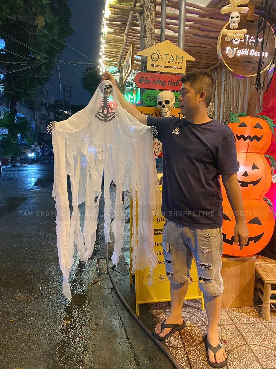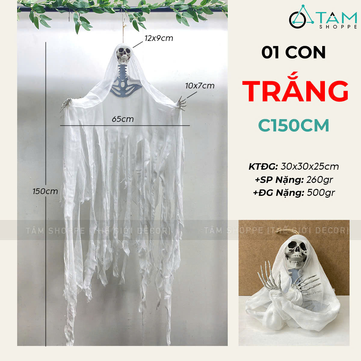 Mô hình con ma xương vai trắng đen 150cm [Đơn giản - Bay bay] trang trí đẹp mắt. Đồ trang trí Halloween là những vật dụng, mô hình hoặc phụ kiện được dùng để tạo không khí rùng rợn, huyền bí, vui nhộn đặc trưng cho ngày lễ Halloween (31/10).
