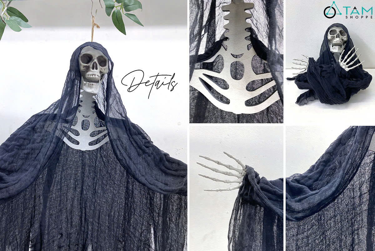Mô hình con ma xương vai trắng đen 150cm [Đơn giản - Bay bay] trang trí đẹp mắt.
