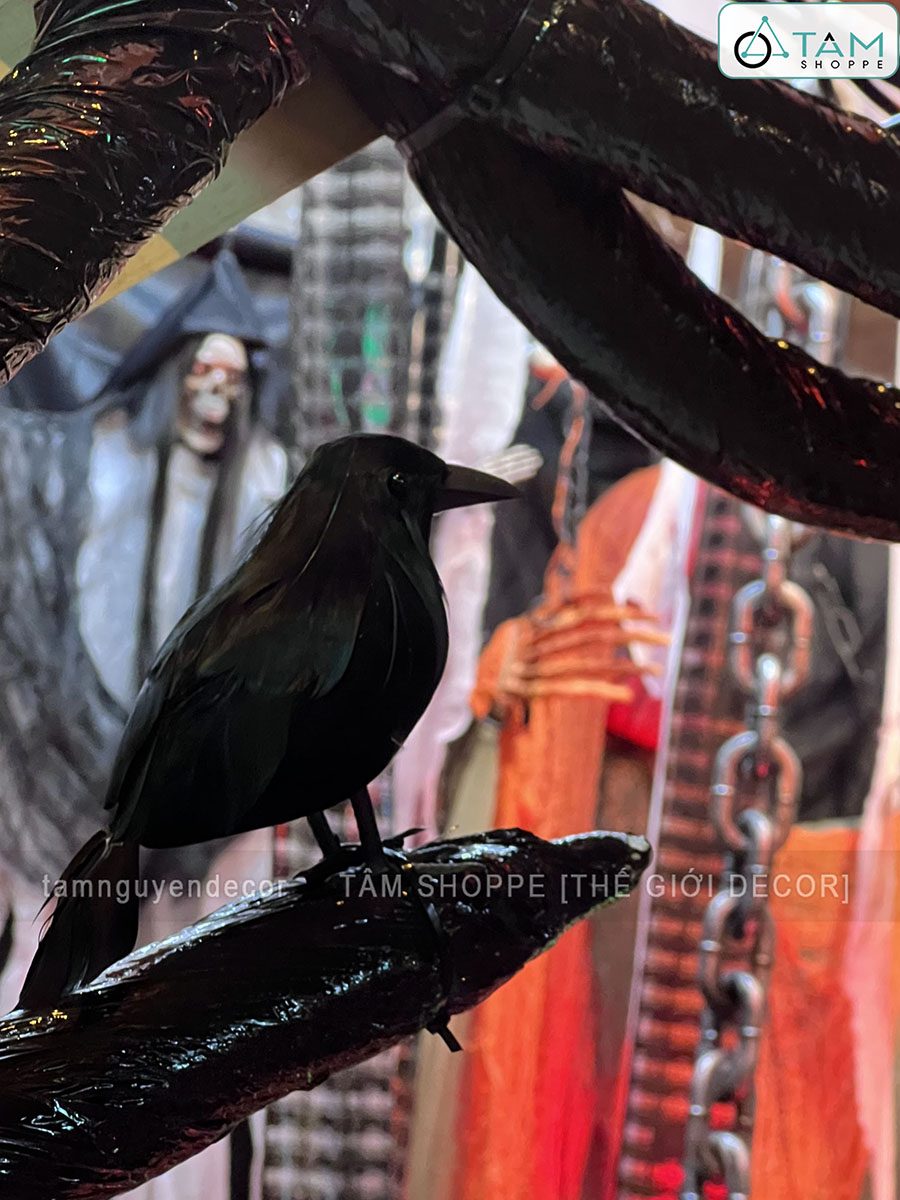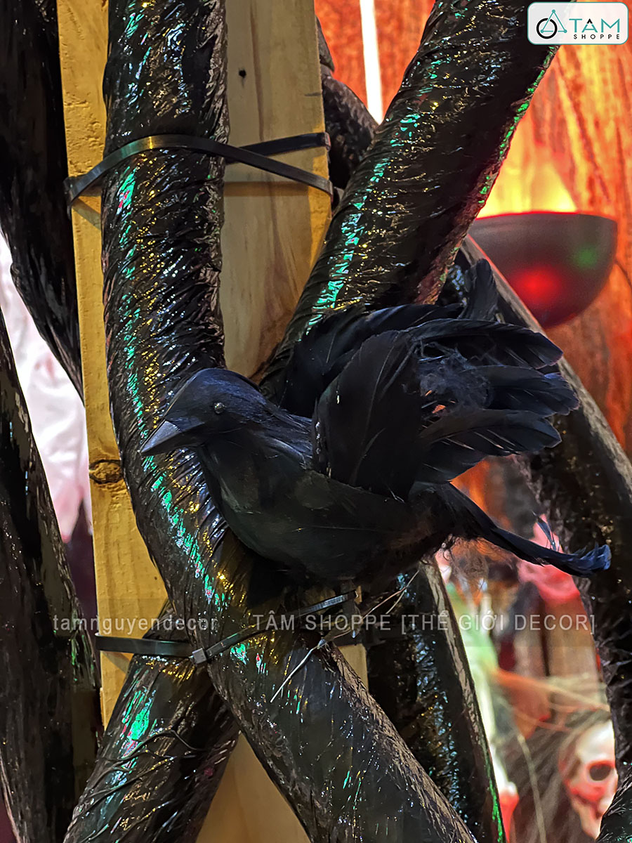 - Con quạ làm bằng lông vịt nhuộm màu đen, dán trên mút xốp tạo hình như thật