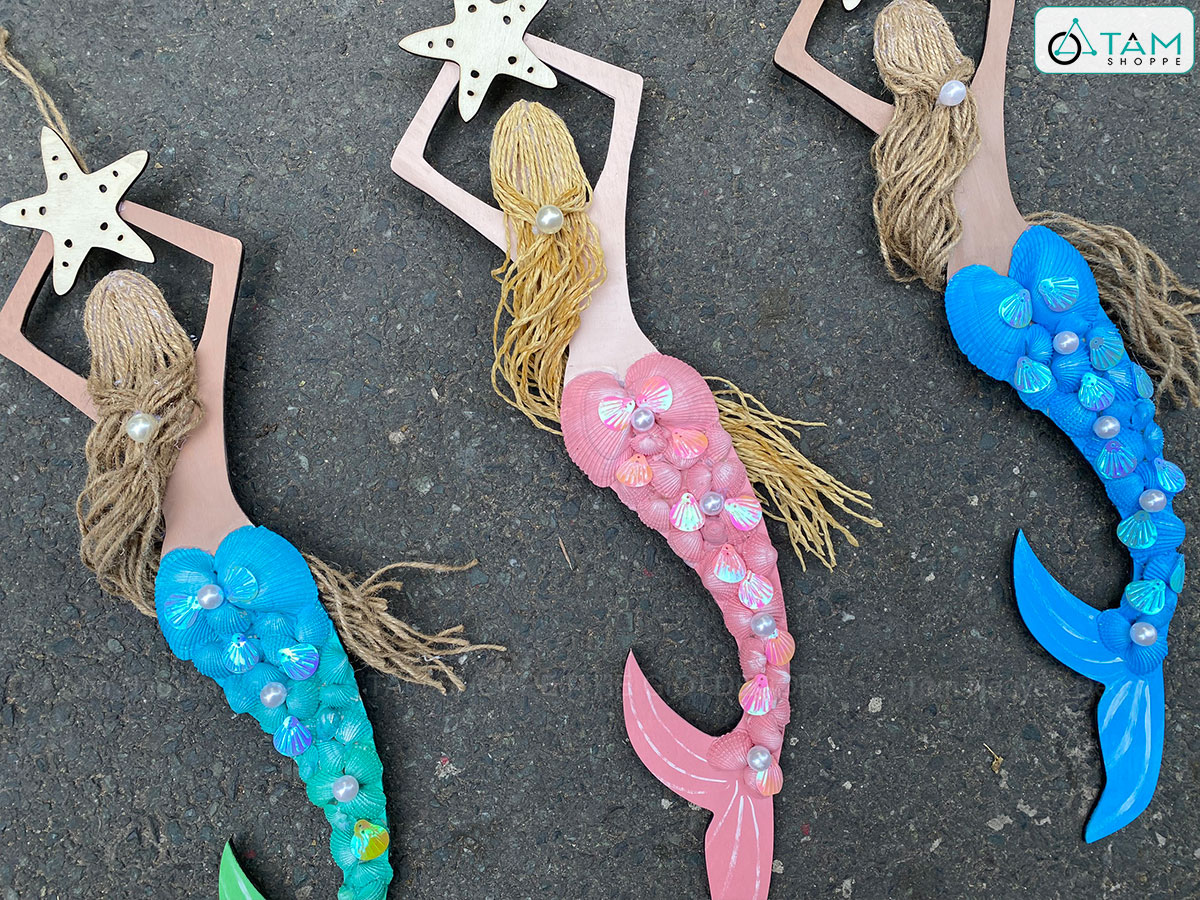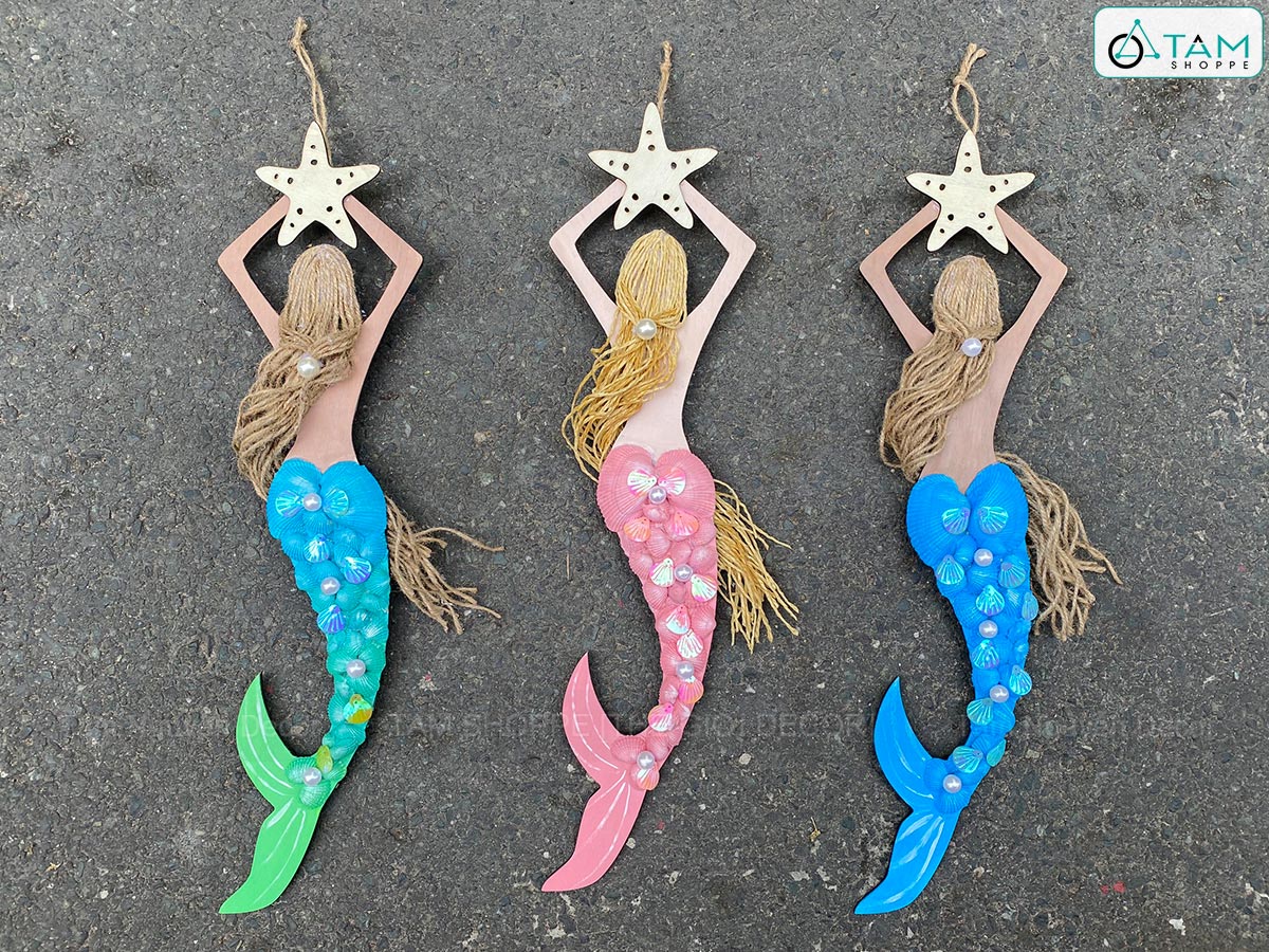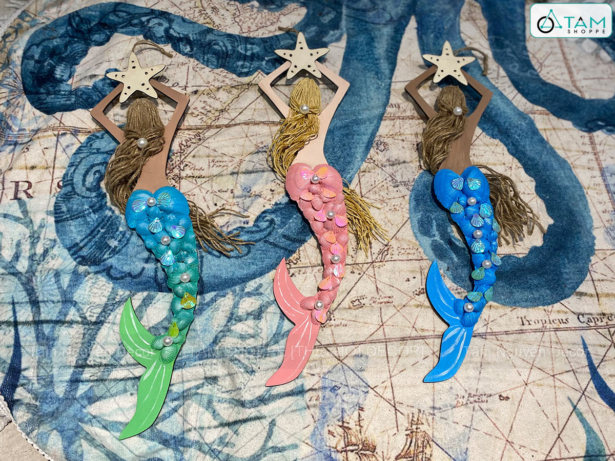 Mô hình Nàng tiên cá Handmade vỏ sò ốc [Bằng gỗ - 3 màu] KT53x14cm trang trí đẹp mắt. Đồ trang trí phong cách biển là các vật dụng, phụ kiện, hoặc mô hình được dùng để trang trí nhà cửa, góc học tập và làm việc, tạo không gian ấm áp, sinh động, tạo cảm giác dễ chịu và hứng khởi học tập, làm việc.
