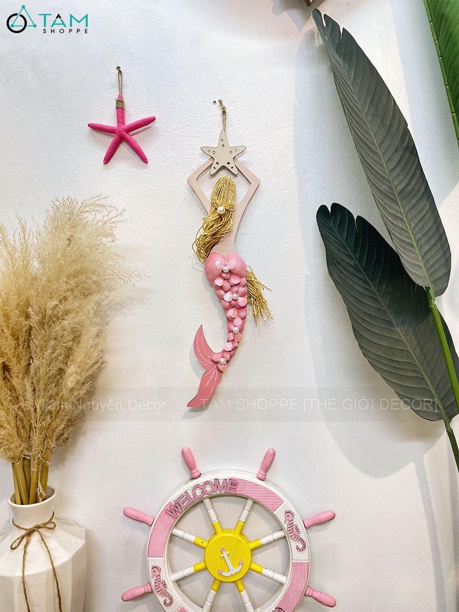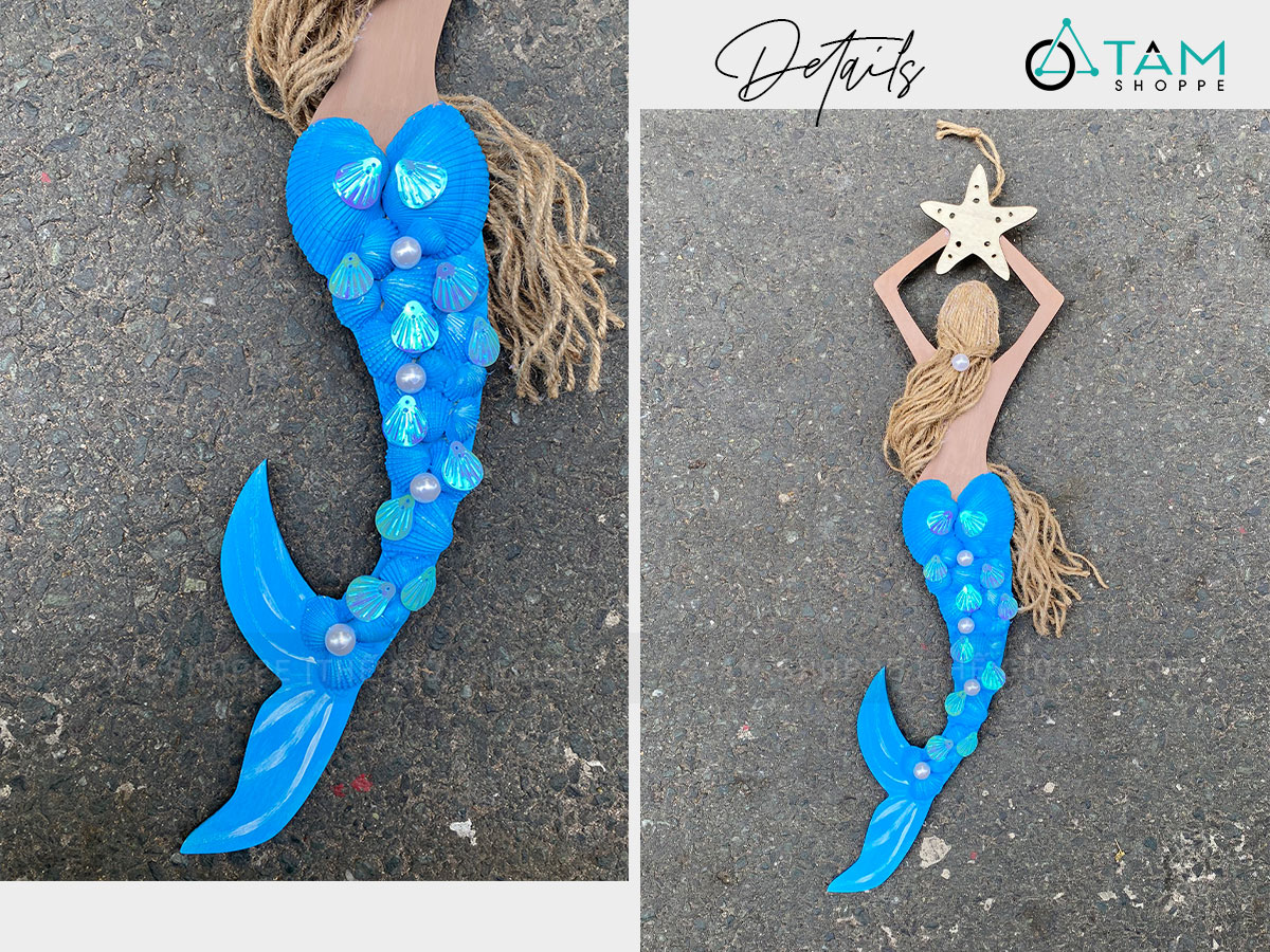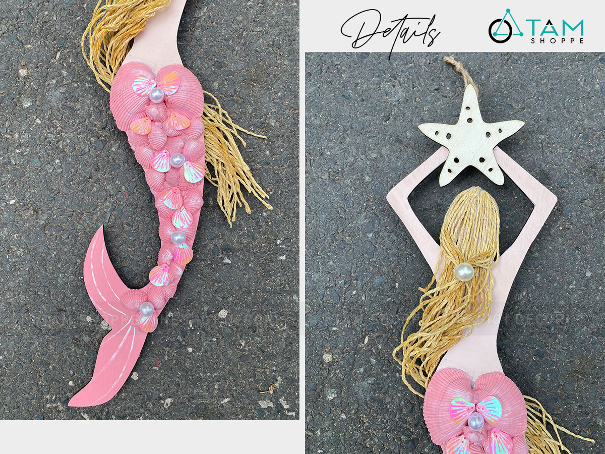 Mô hình Nàng tiên cá Handmade vỏ sò ốc [Bằng gỗ - 3 màu] KT53x14cm trang trí đẹp mắt. Đồ trang trí phong cách biển là các vật dụng, phụ kiện, hoặc mô hình được dùng để trang trí nhà cửa, góc học tập và làm việc, tạo không gian ấm áp, sinh động, tạo cảm giác dễ chịu và hứng khởi học tập, làm việc.