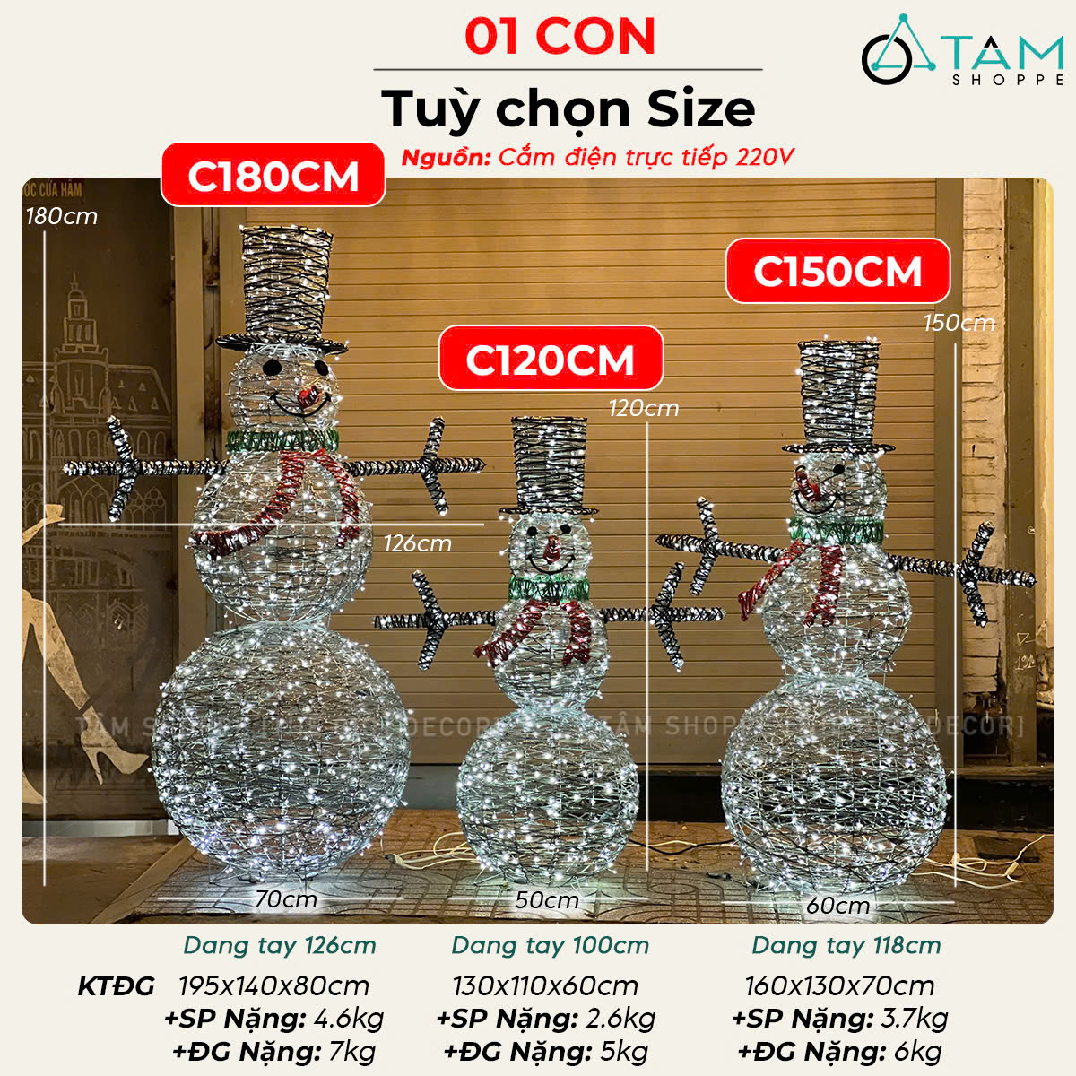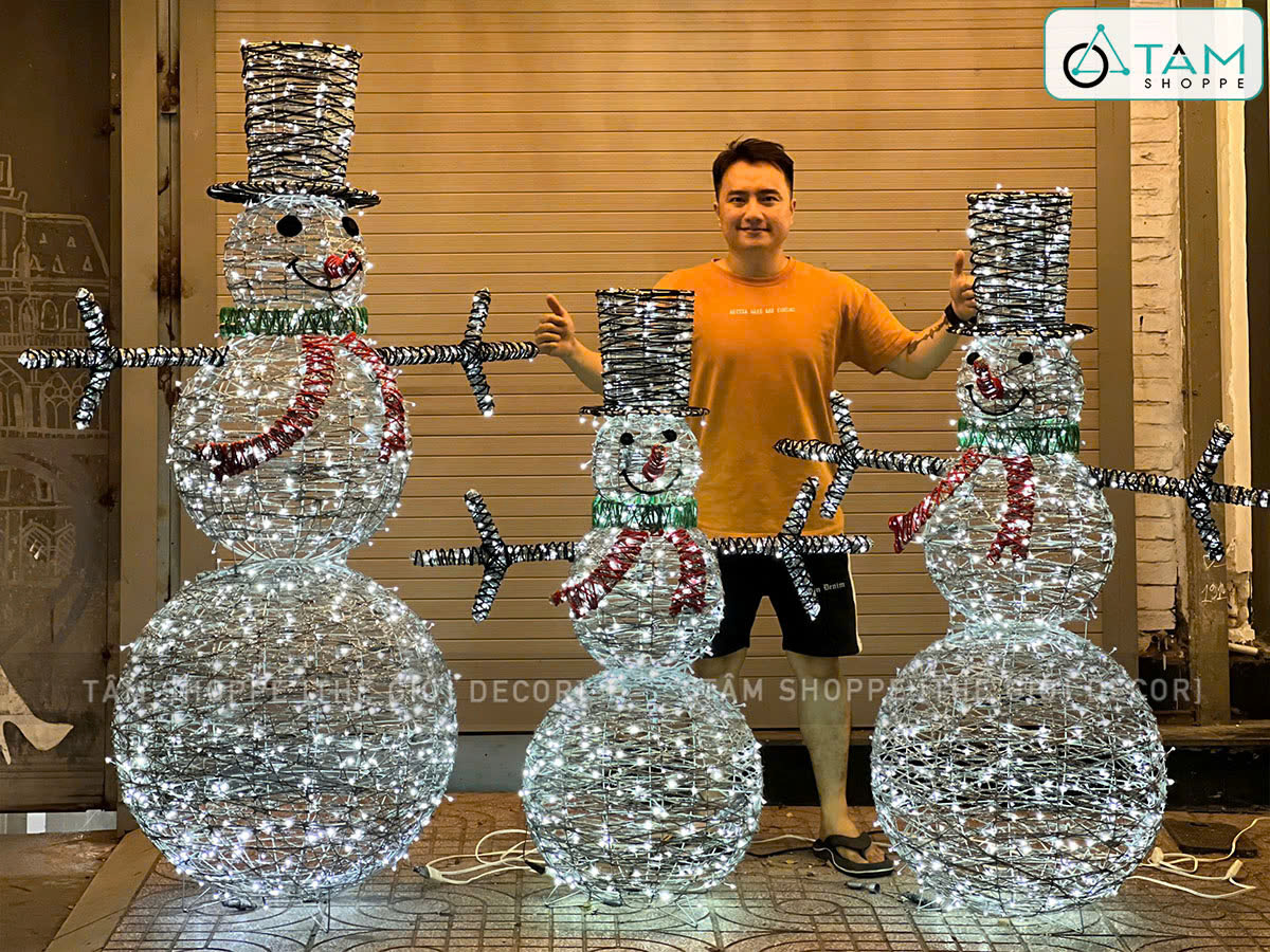 Mô hình người tuyết đèn Led khung sắt dang tay[3 cỡ - Cắm điện] trang trí đẹp mắt. Đồ trang trí Noel là các vật dụng, phụ kiện, hoặc mô hình được dùng để trang hoàng không gian trong dịp Giáng Sinh (Noel), nhằm tạo nên không khí ấm áp, vui tươi và mang đậm sắc màu lễ hội.