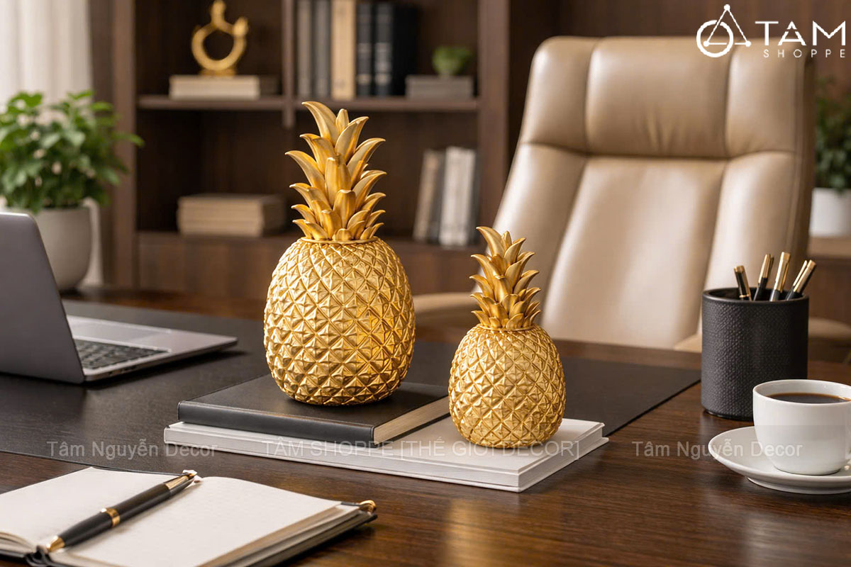 👉 Tượng trái thơm (dứa) decor đang là xu hướng được ưa chuộng trong phòng khách, bàn làm việc, quầy lễ tân…