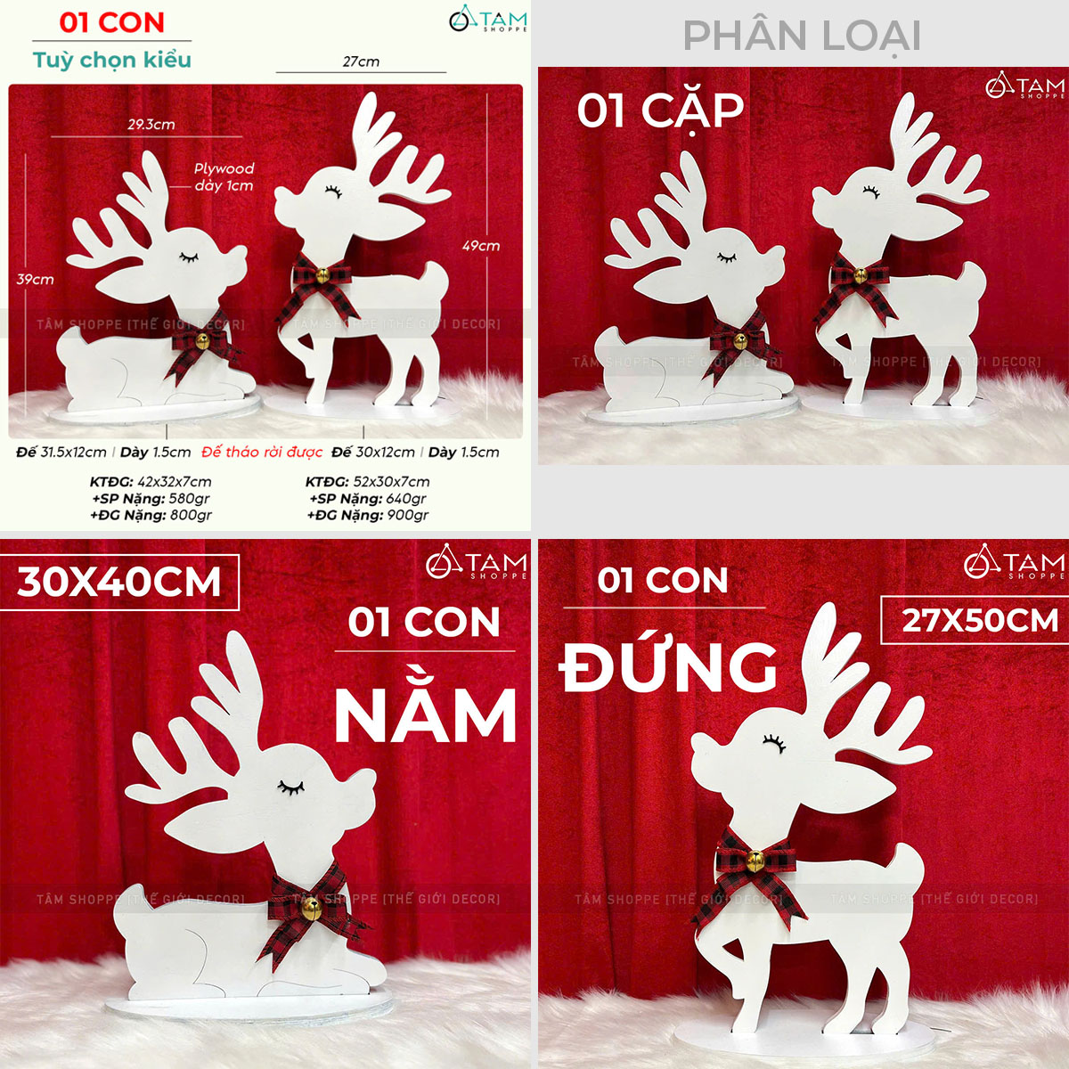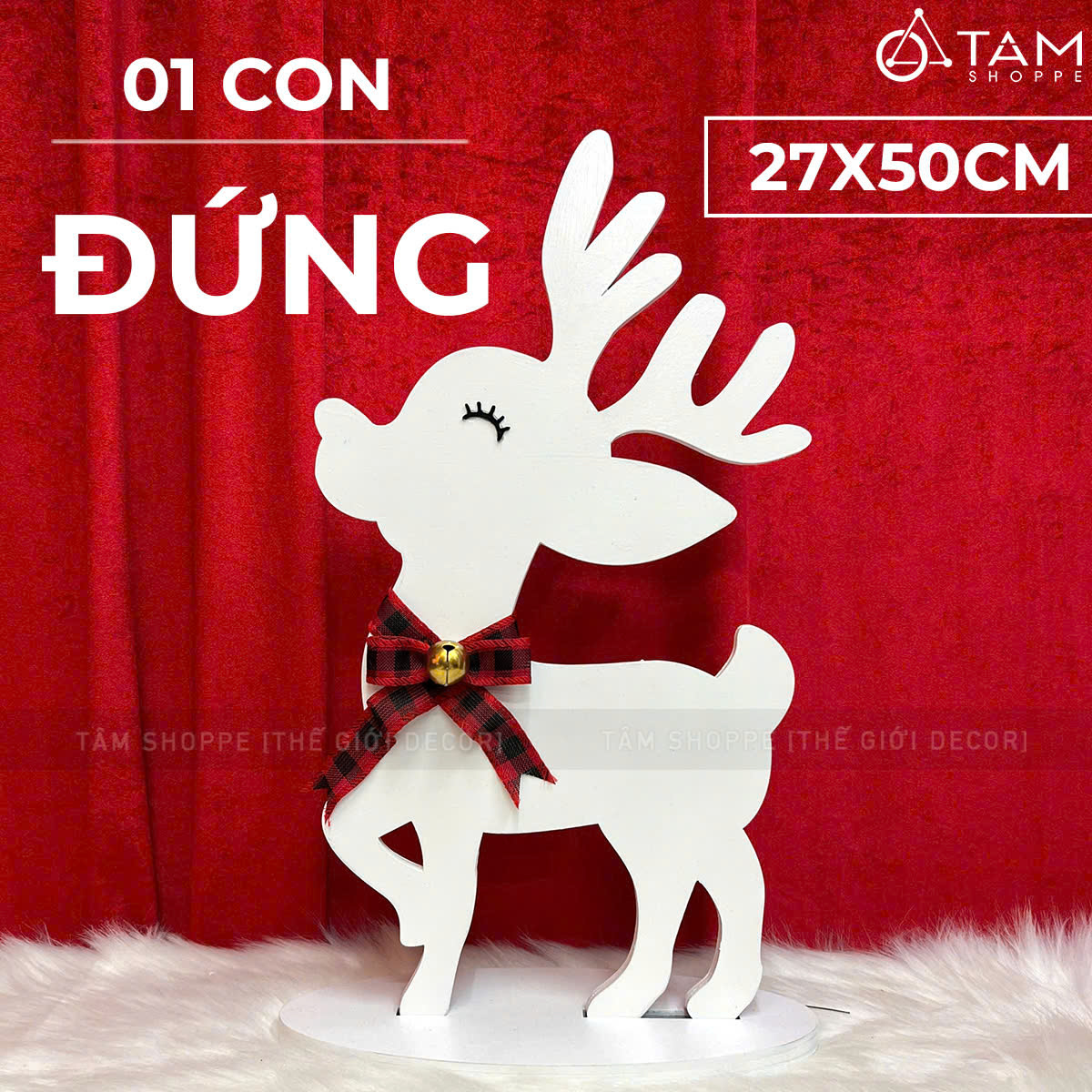 Mô hình tuần lộc trắng đeo nơ lục lạc [Bằng gỗ] trang trí đẹp mắt sống động. Đồ trang trí Noel là các vật dụng, phụ kiện, hoặc mô hình được dùng để trang hoàng không gian trong dịp Giáng Sinh (Noel), nhằm tạo nên không khí ấm áp, vui tươi và mang đậm sắc màu lễ hội.