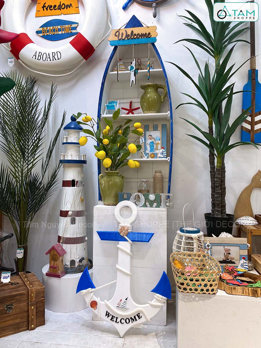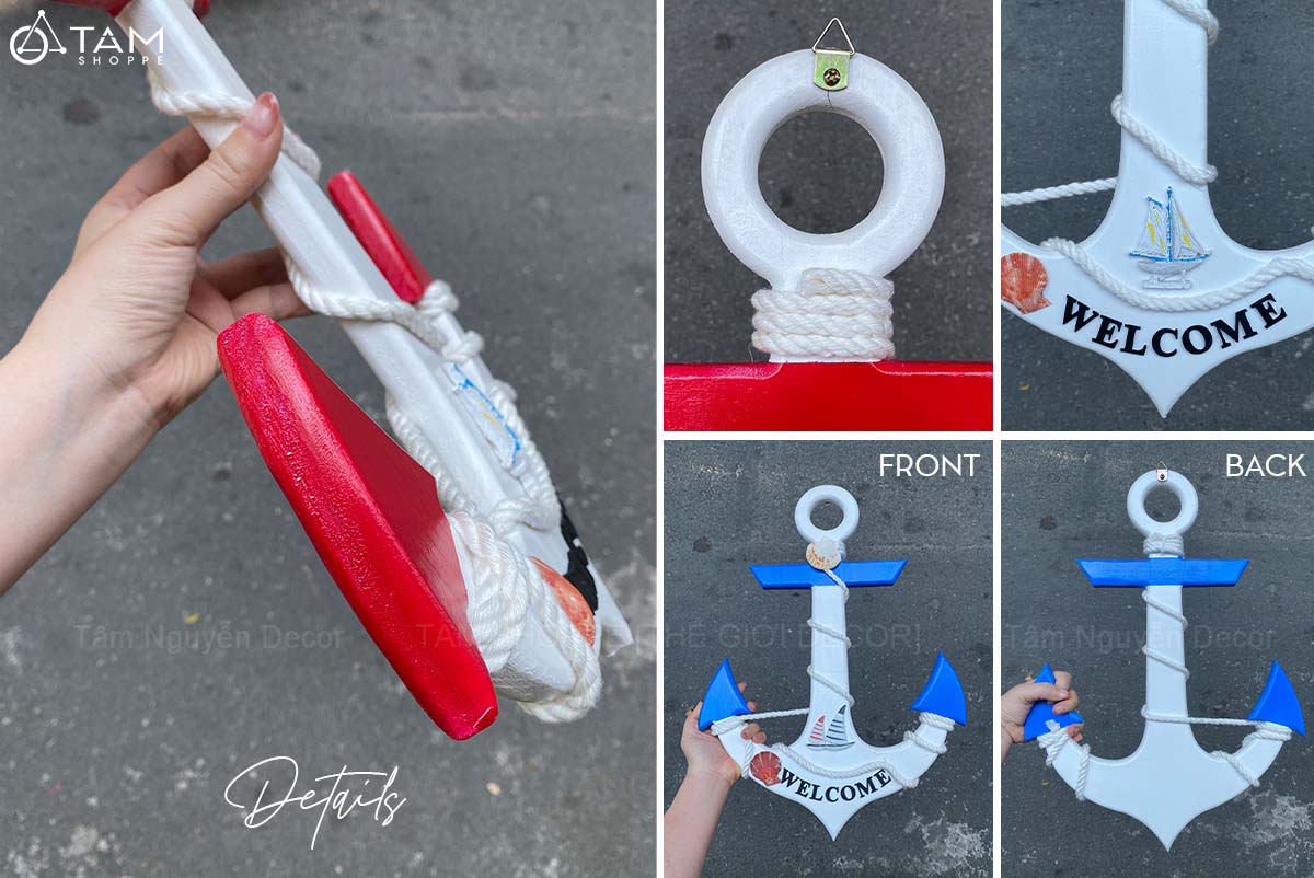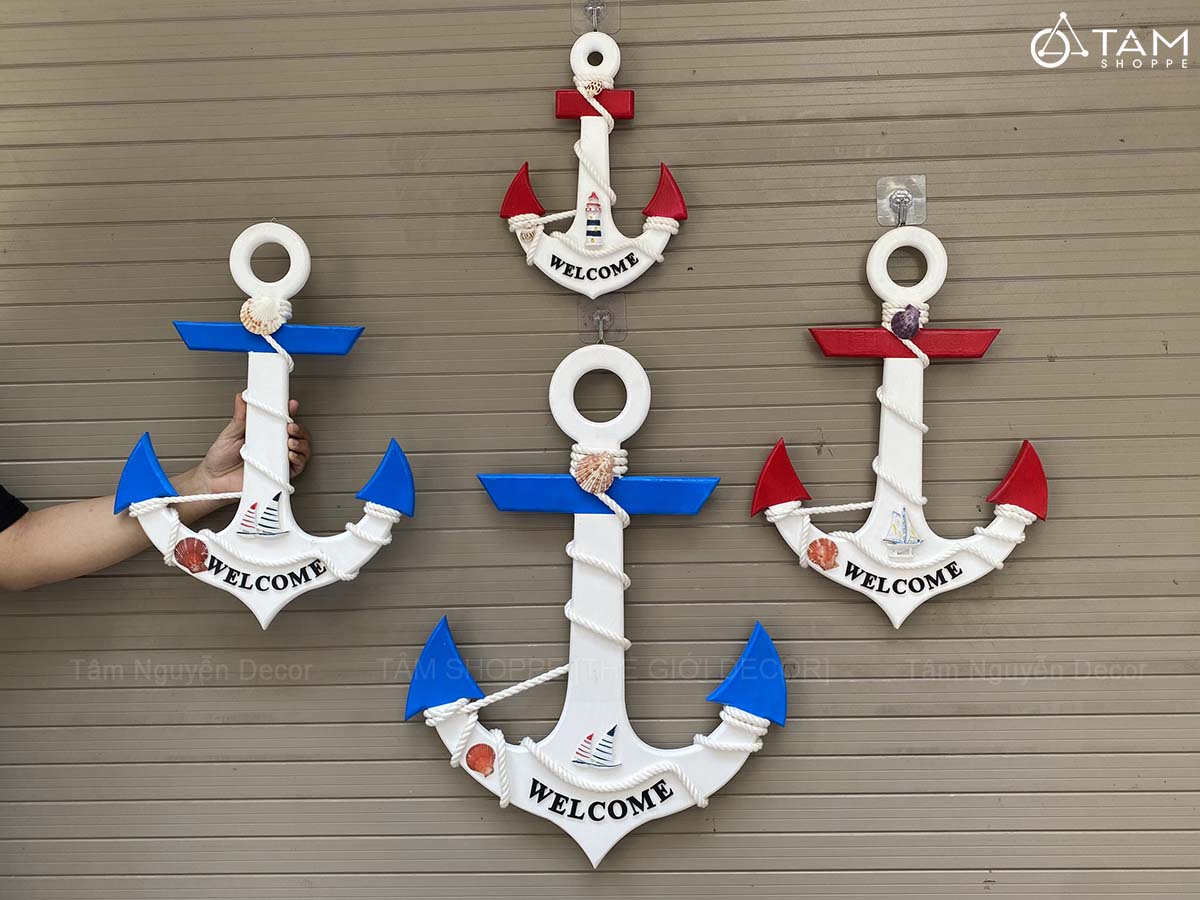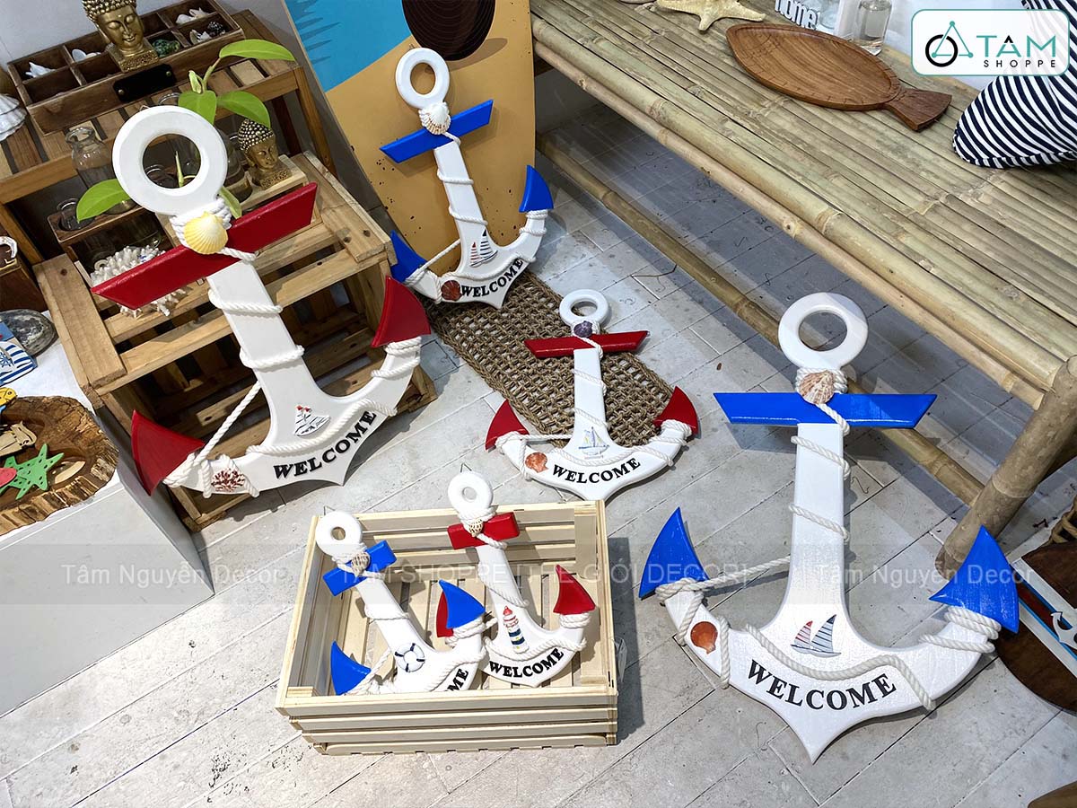 Mỏ neo gỗ Welcome quấn dây thừng đính phụ kiện [3 Size - 2 màu] C32-50-67cm trang trí đẹp mắt. Đồ trang trí Phong cách biển phù hợp trang trí quán cà phê, homestay, resort hoặc góc nhỏ trong căn nhà của bạn. Chỉ cần một chi tiết như mỏ neo, bánh lái hay thuyền gỗ… cũng đủ tạo nên phong cách riêng biệt.