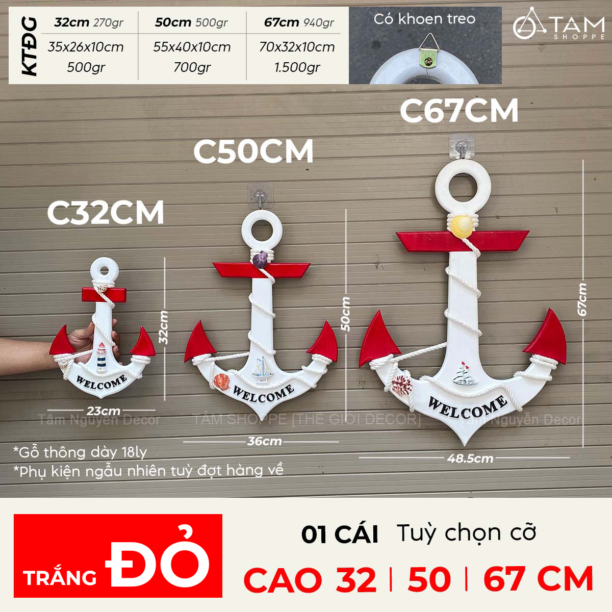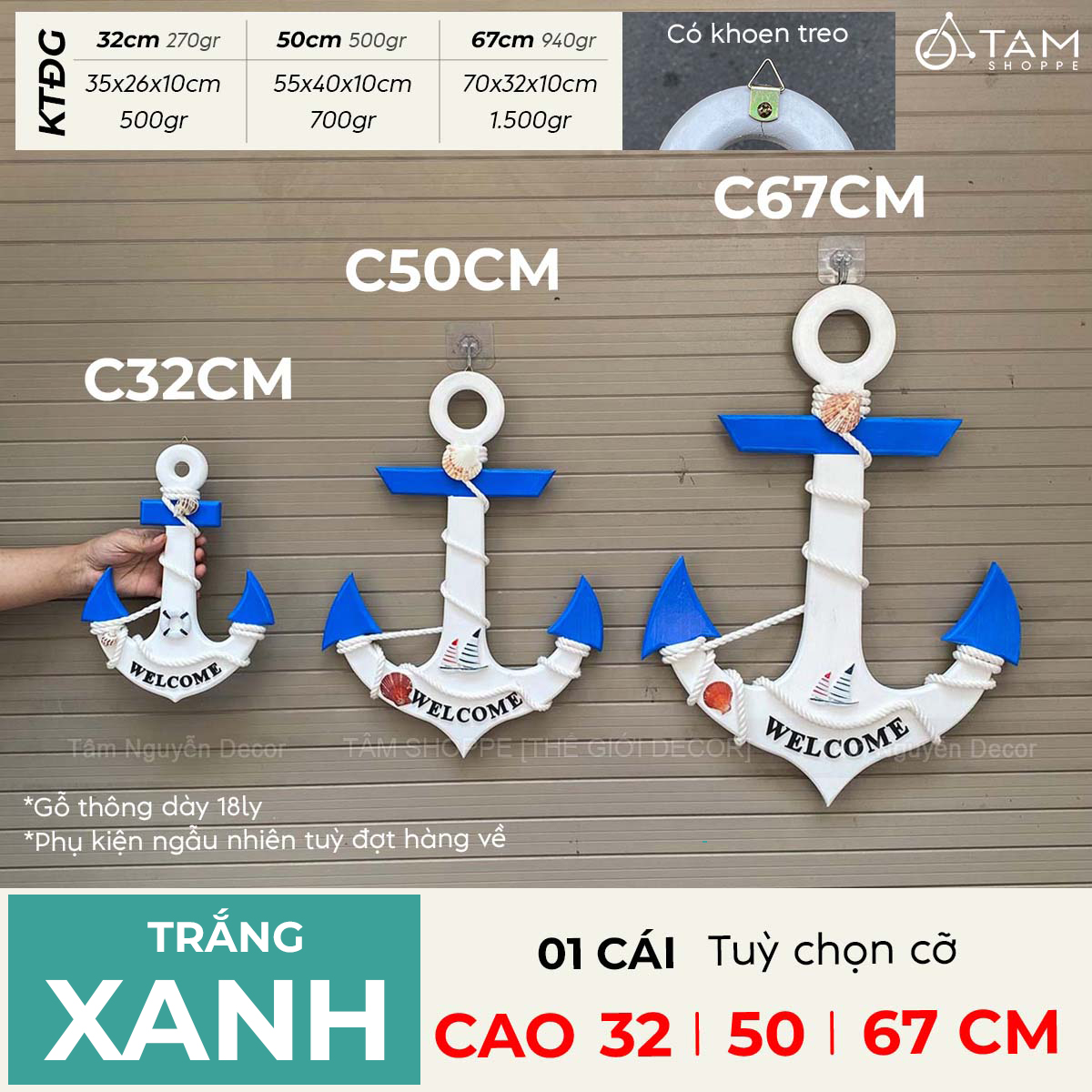 Sản phẩm chất liệu gỗ thông đẹp dày 18ly, sơn thủ công tỉ mỉ, phụ kiện đính trên mỏ neo ngẫu nhiên tuỳ đợt hàng về