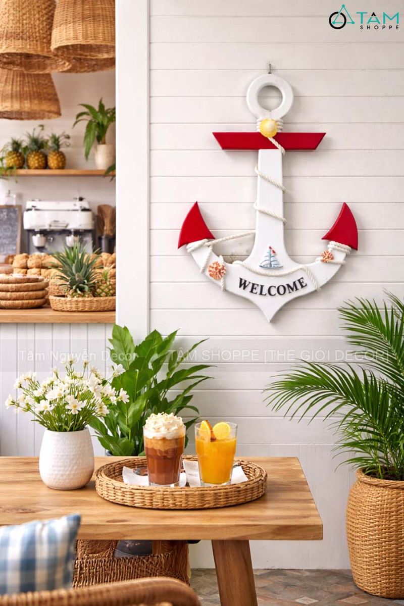 Mang hơi thở đại dương vào quán cà phê, homestay, resort hay góc decor trong nhà với mẫu mỏ neo gỗ treo tường Welcome nổi bật, dễ phối và cực kỳ thu hút ánh nhìn.