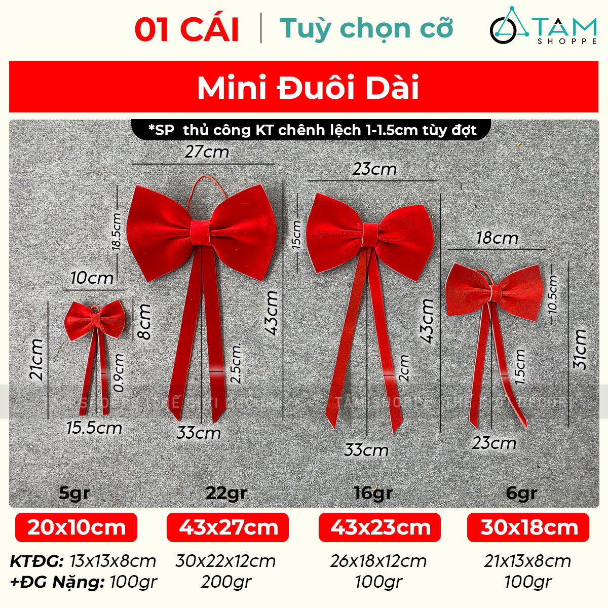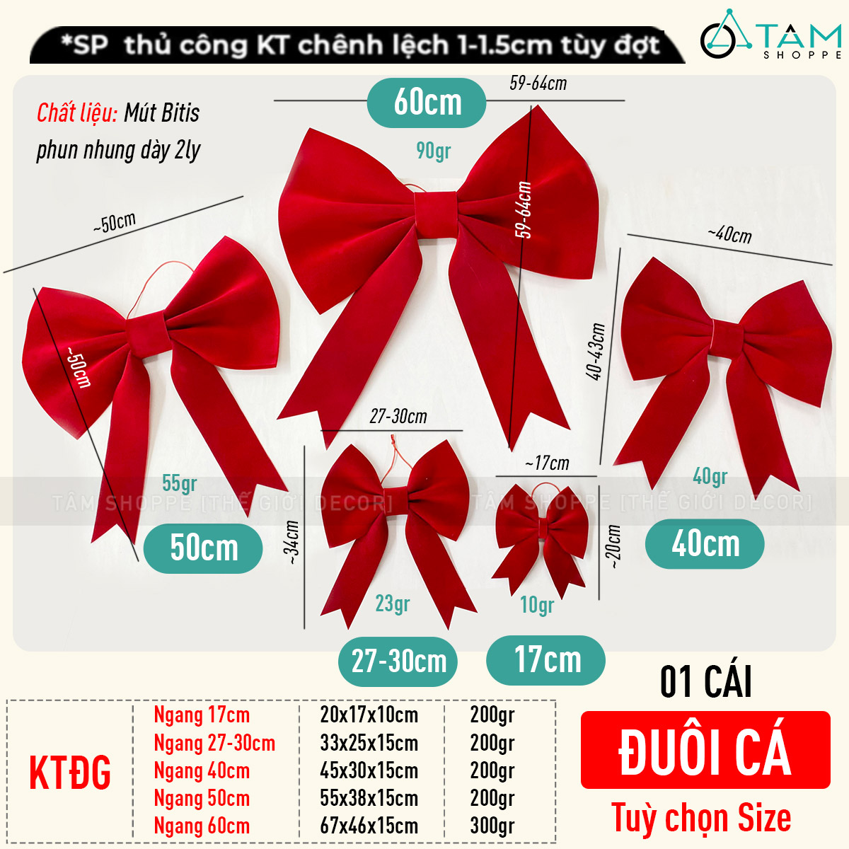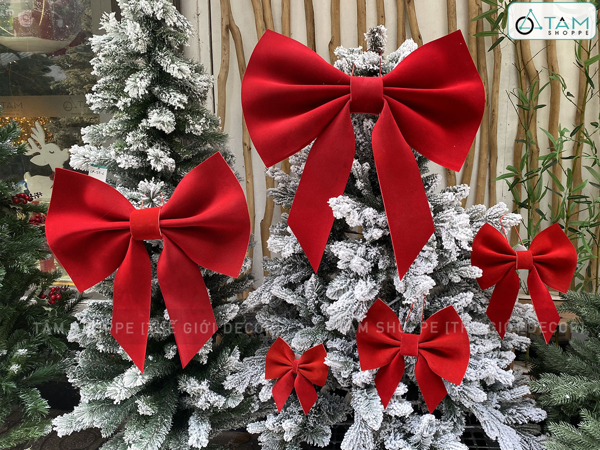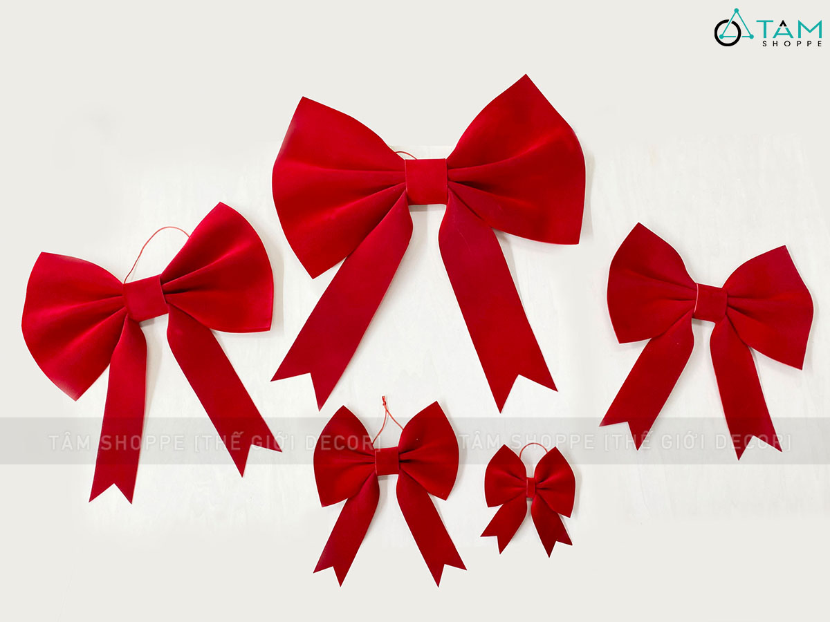 Nơ đỏ Bitis phun nhung 2 cánh - 1 lớp [Đứng form - Nhiều cỡ] trang trí đẹp mắt. Đồ trang trí Noel là các vật dụng, phụ kiện, hoặc mô hình được dùng để trang hoà