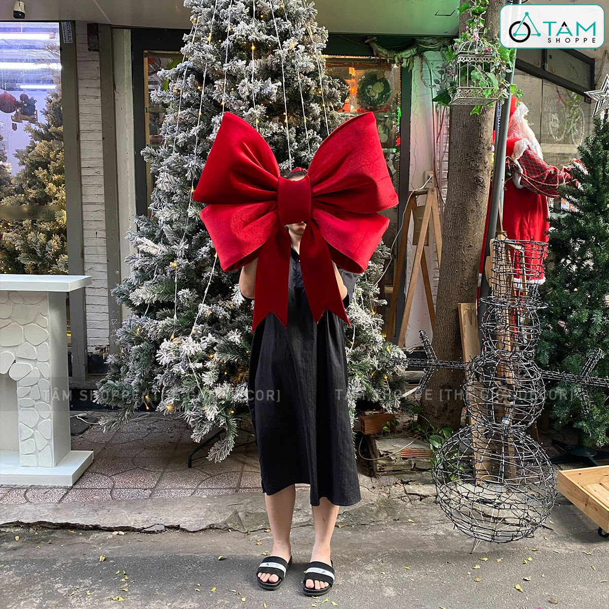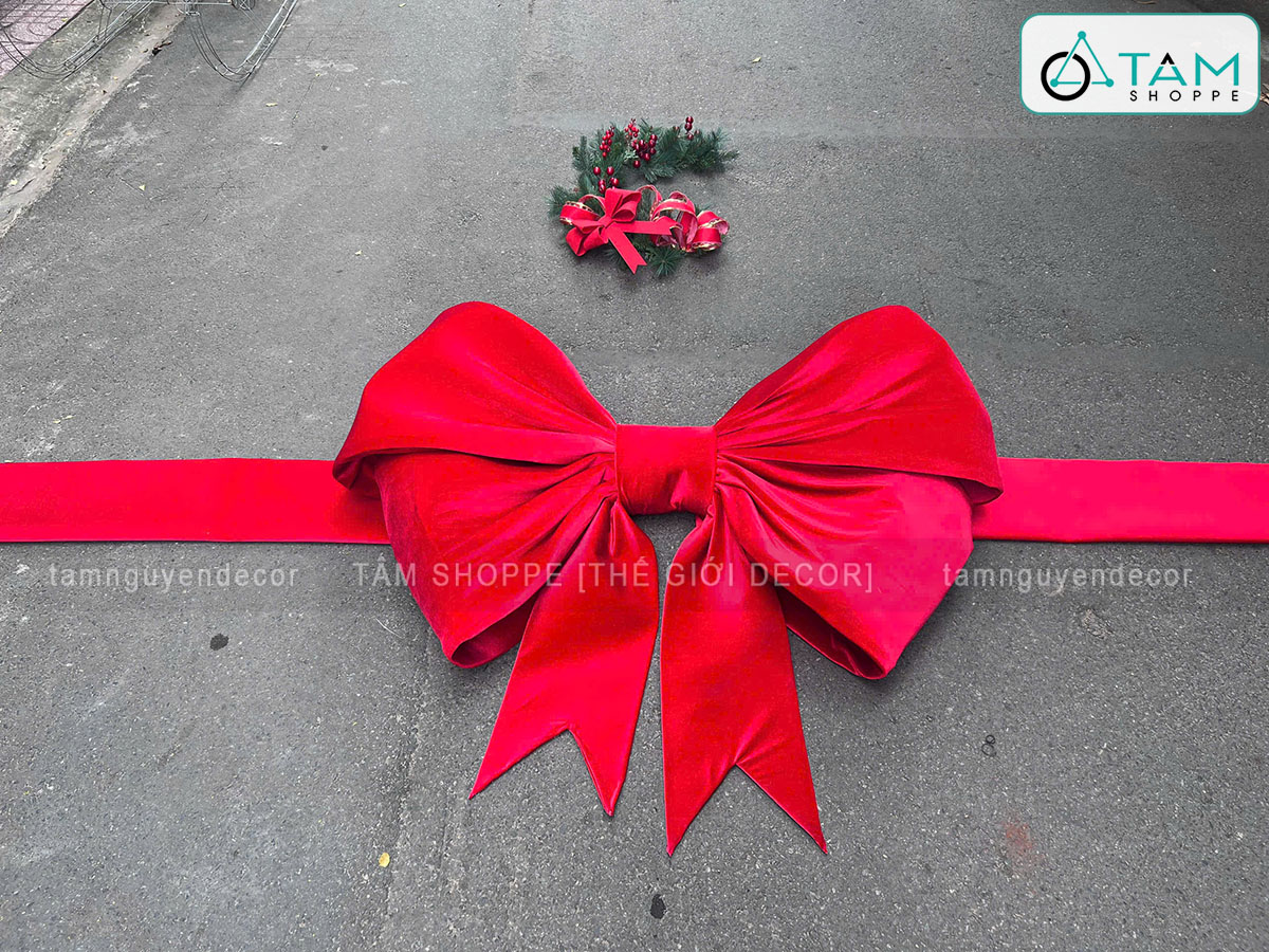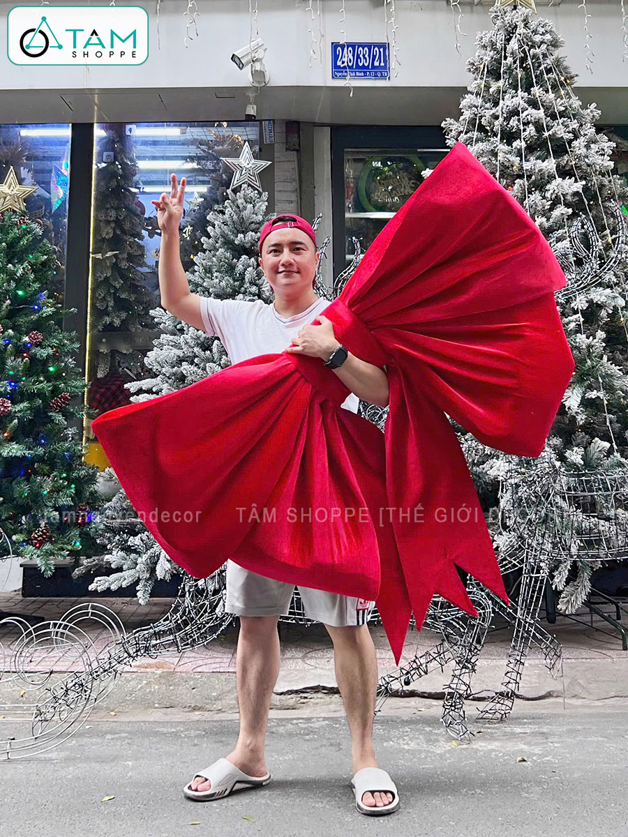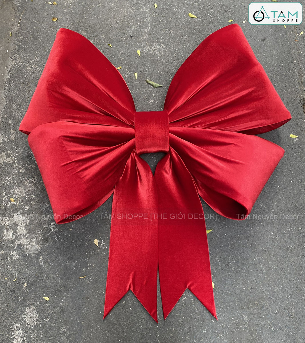 Nơ đỏ vải nhung xịn 4 cánh cỡ lớn [Đứng form - Nhiều cỡ] trang trí đẹp mắt. Đồ trang trí Noel là các vật dụng, phụ kiện, hoặc mô hình được dùng để trang hoàng không gian trong dịp Giáng Sinh (Noel), nhằm tạo nên không khí ấm áp, vui tươi và mang đậm sắc màu lễ hội.