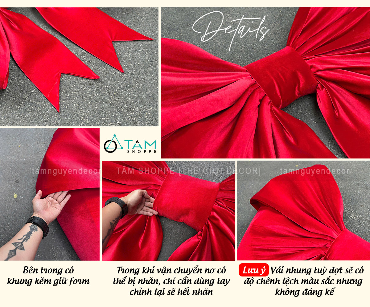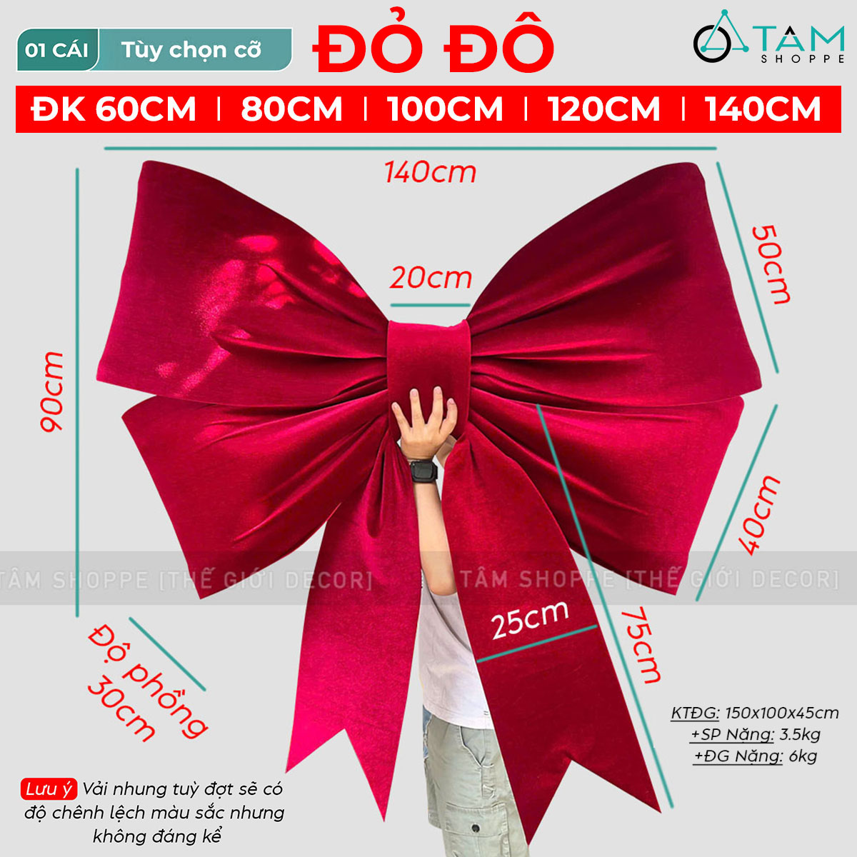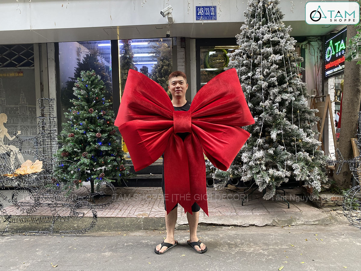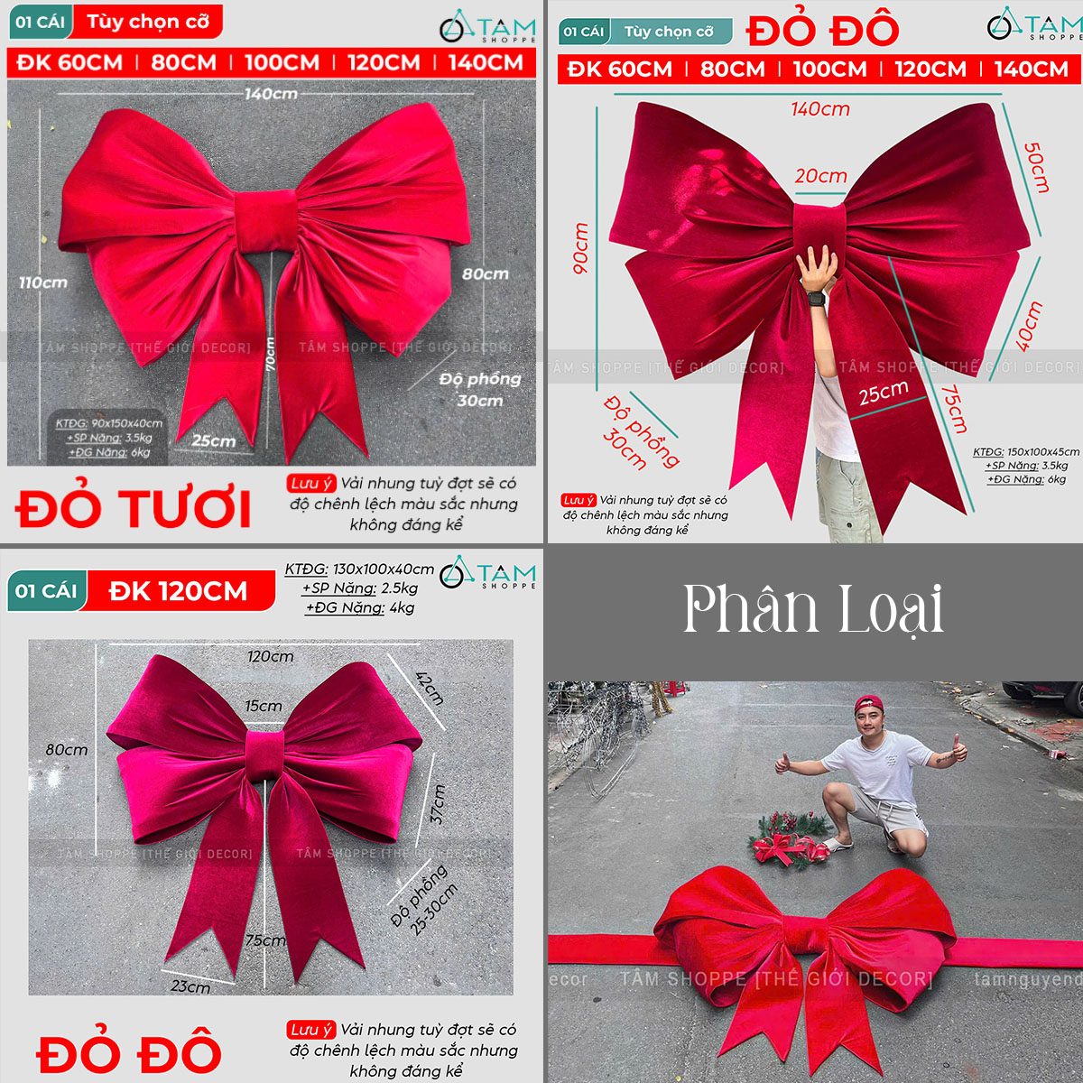 Nơ đỏ vải nhung xịn 4 cánh cỡ lớn [Đứng form - Nhiều cỡ] trang trí đẹp mắt. Đồ trang trí Noel là các vật dụng, phụ kiện, hoặc mô hình được dùng để trang hoàng không gian trong dịp Giáng Sinh (Noel), nhằm tạo nên không khí ấm áp, vui tươi và mang đậm sắc màu lễ hội.
