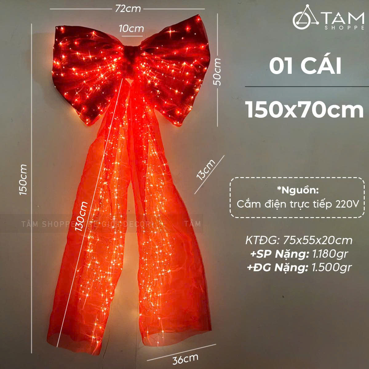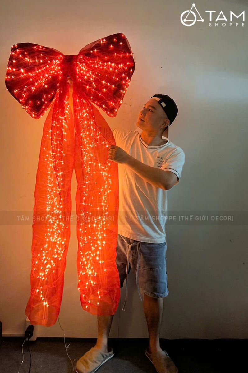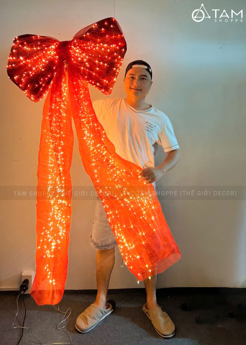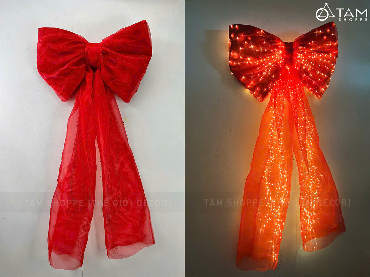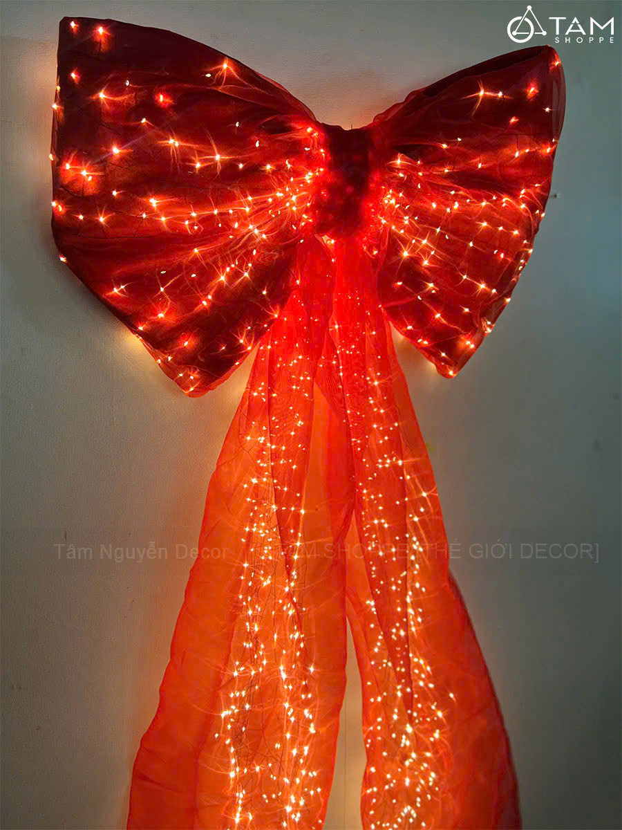 Nơ vải nhung voan siêu đèn Led [70x150cm - Cắm điện] trang trí đẹp mắt. Nơ trang trí thường có nhiều kiểu dáng – dễ phối cảnh decor – giúp không gian trở nên nổi bật và sang trọng hơn trong mọi dịp lễ, tiệc hay trang trí quà tặng.