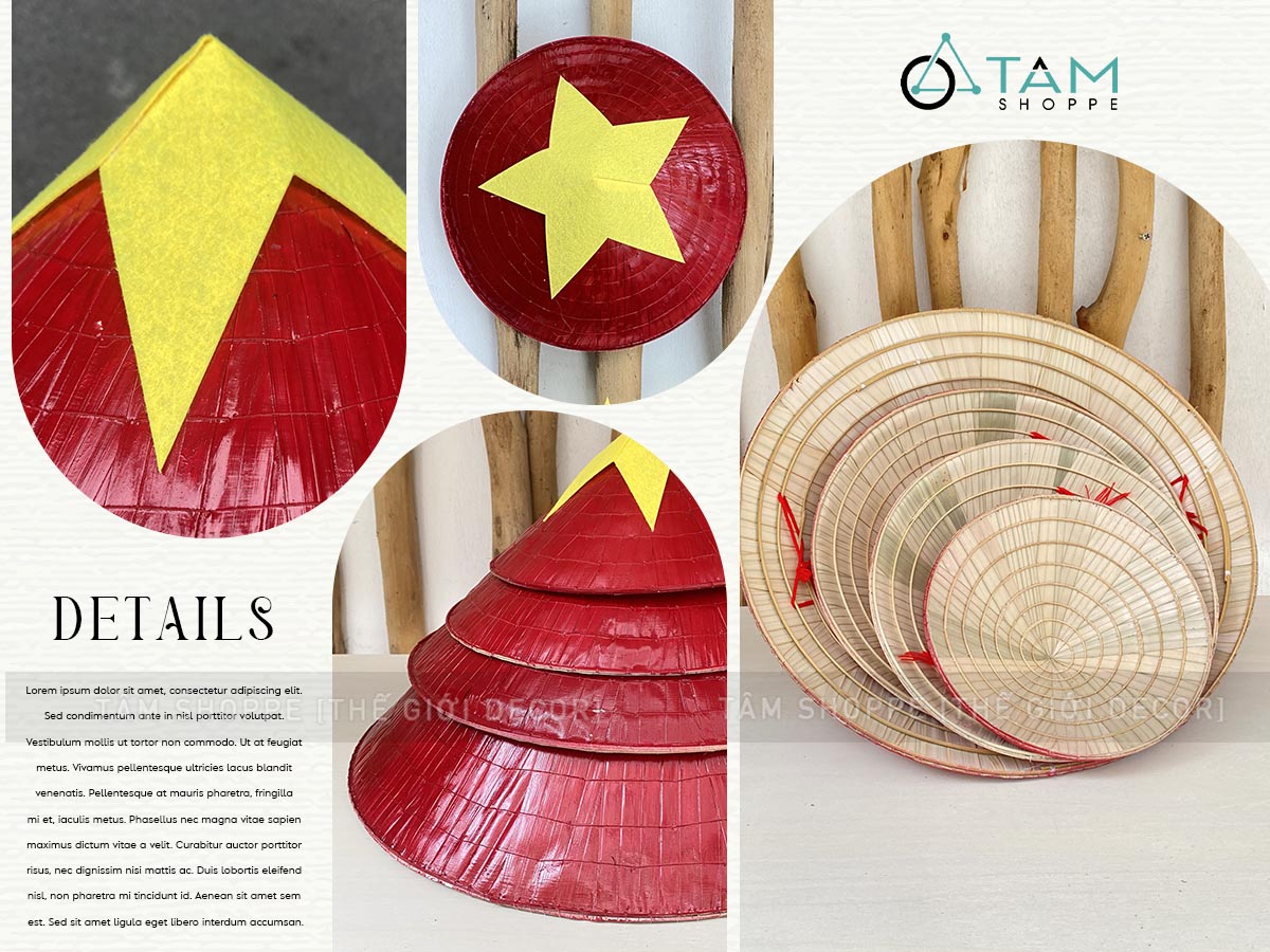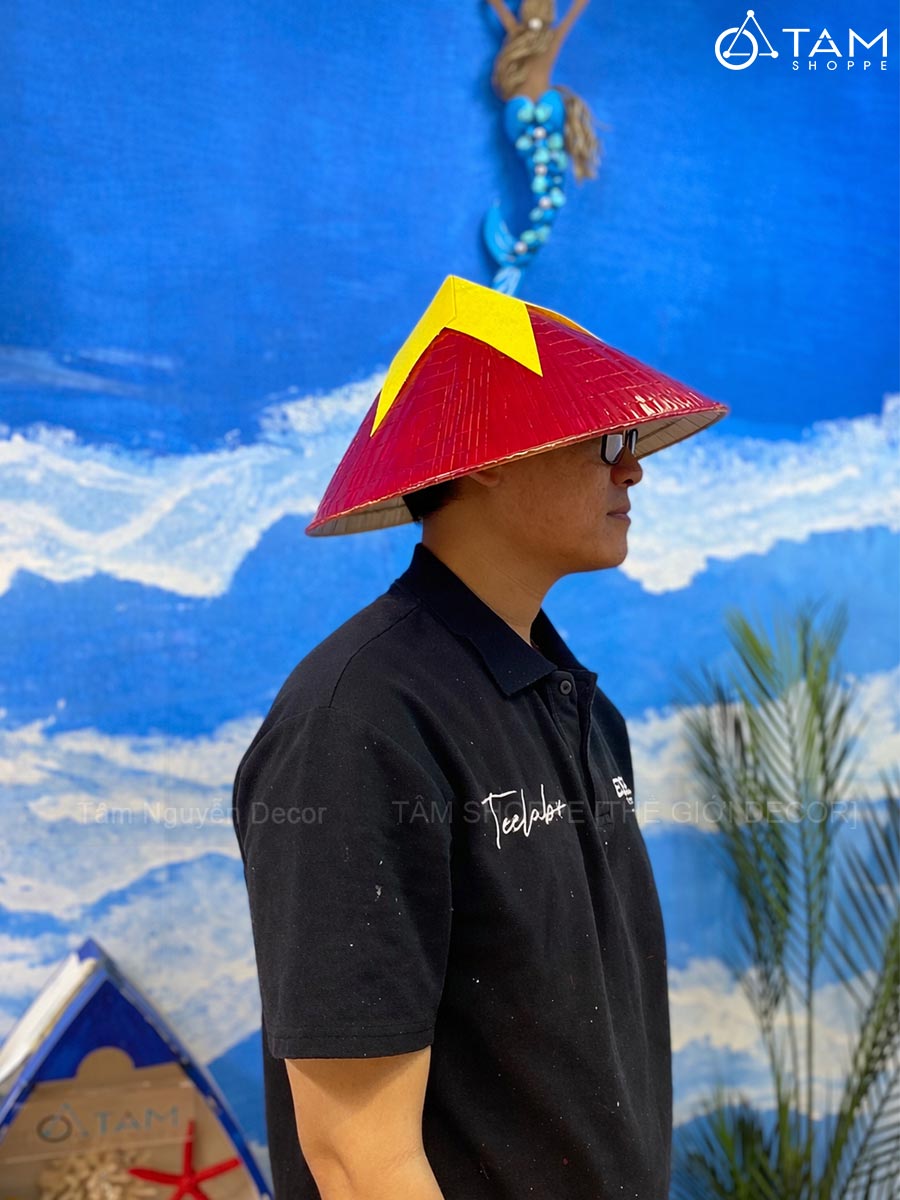 Nón lá trang trí phong cách cờ Đỏ sao Vàng [4 Size] trang trí đẹp mắt. Nón lá – biểu tượng quen thuộc gắn liền với hình ảnh Việt Nam truyền thống. Trải qua bao thế hệ, chiếc nón lá không chỉ là vật dụng che nắng, che mưa mà còn là nét đẹp văn hóa truyền thống đầy tự hào của dân tộc. Đặc biệt, đây là phụ kiện không thể thiếu để tạo nên những bức hình đậm chất Việt.