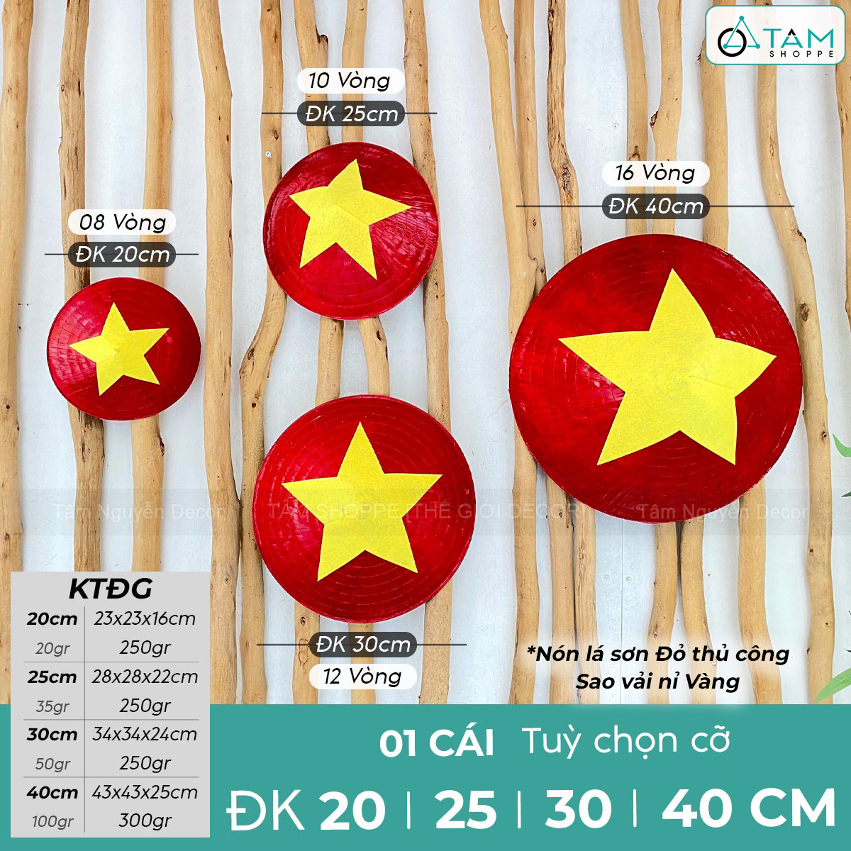Nón lá trang trí phong cách cờ Đỏ sao Vàng [4 Size] trang trí đẹp mắt.