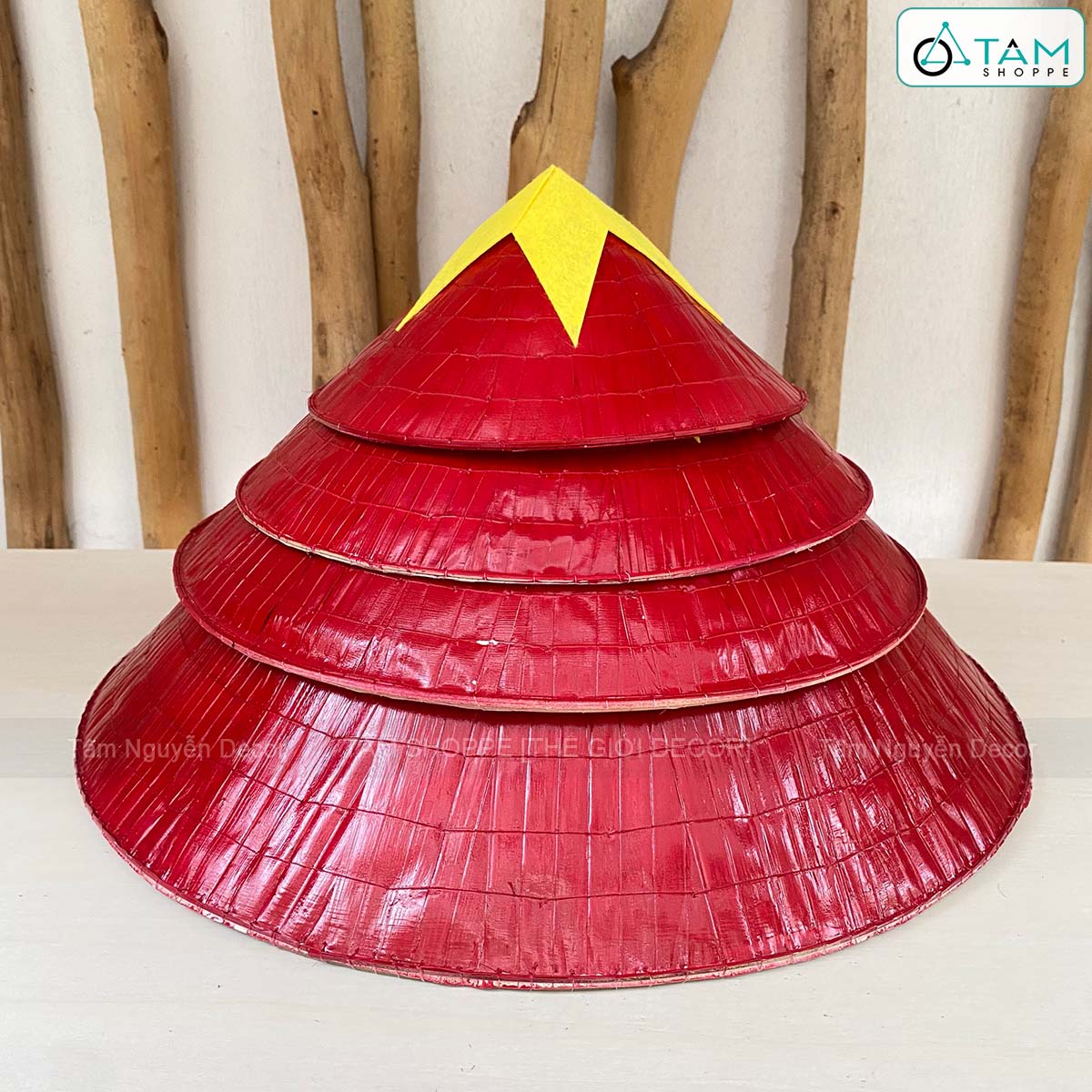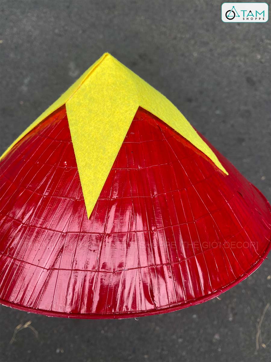 Mang tinh thần Việt Nam vào từng không gian với mẫu nón lá truyền thống sơn đỏ thủ công, dán sao nỉ vàng nổi bật – đơn giản nhưng cực kỳ thu hút và ý nghĩa.
