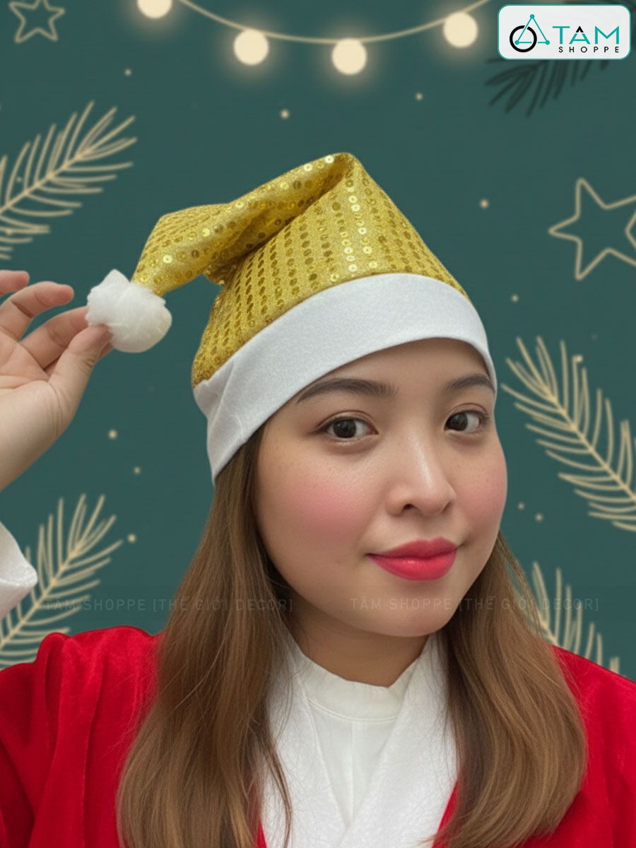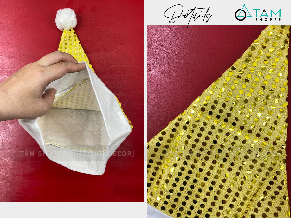 Nón Noel vải kim sa Vàng [Dày dặn - ĐK 27cm] hóa trang đẹp mắt. Trang phục Giáng Sinh là một phần đặc biệt không thể thiếu trong dịp này. Không chỉ nhà cửa hay cây thông cần được trang trí, chúng ta cũng cần được làm đẹp và sắm sửa cho mình những bộ cánh để đi chơi, chụp ảnh, tham dự sự kiện. Sản phẩm giúp bạn hòa nhịp vào bầu không khí hồ hởi và vui tươi của Noel.