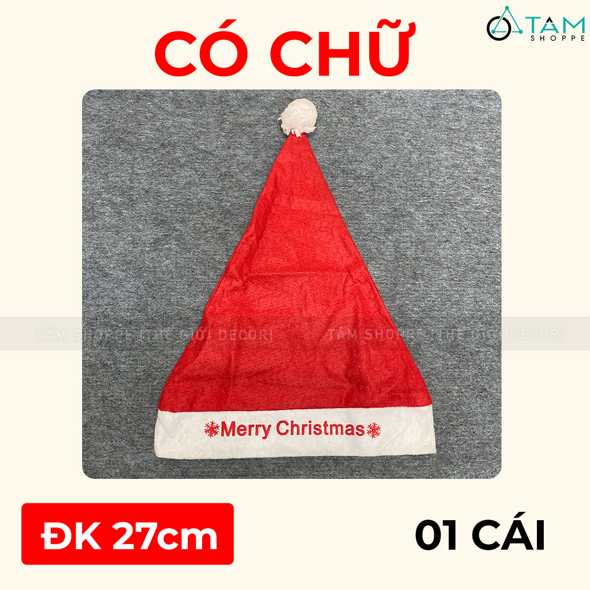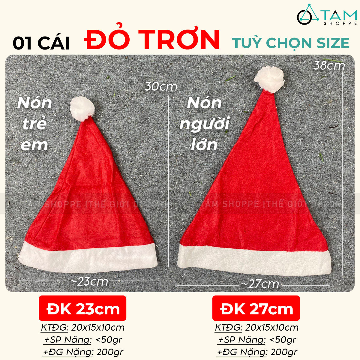 - Nón Noel đa phần đường kính lớn hơn hoặc bằng 27cm vừa với đầu người lớn. Dùng kim chỉ khâu một chút về cỡ 24cm sẽ đội vừa cho trẻ em.