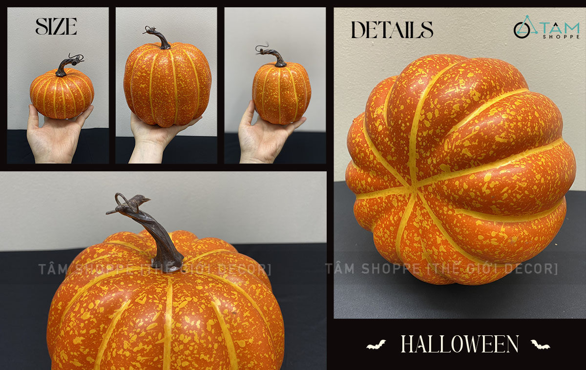 Quả bí ngô Halloween cuốn đen như thật 3 cỡ [11.5-18cm - Loại đẹp] trang trí đẹp mắt.