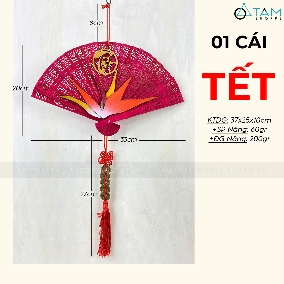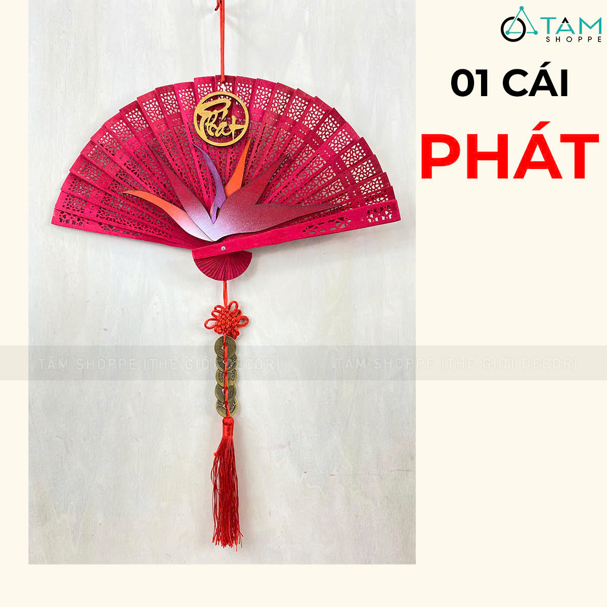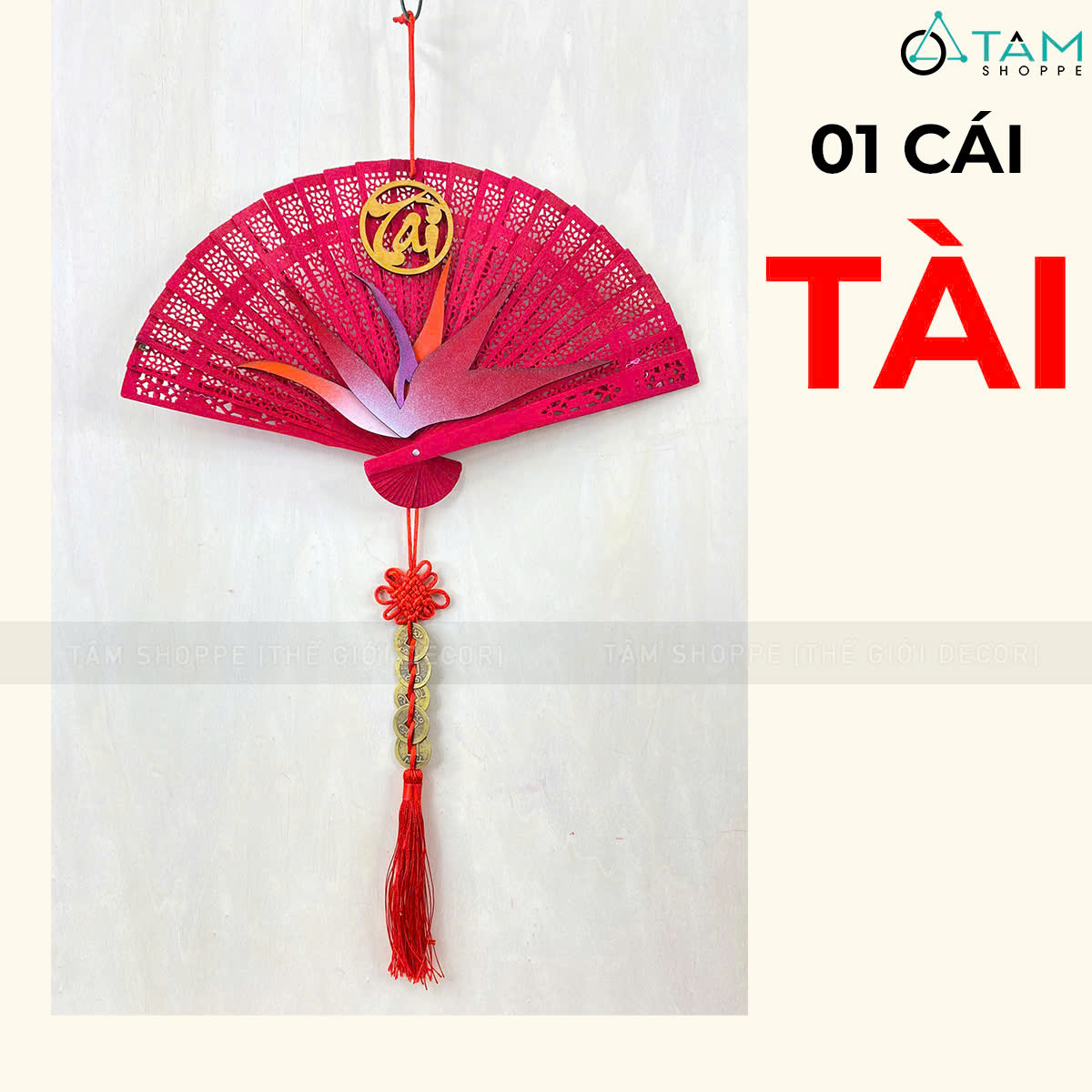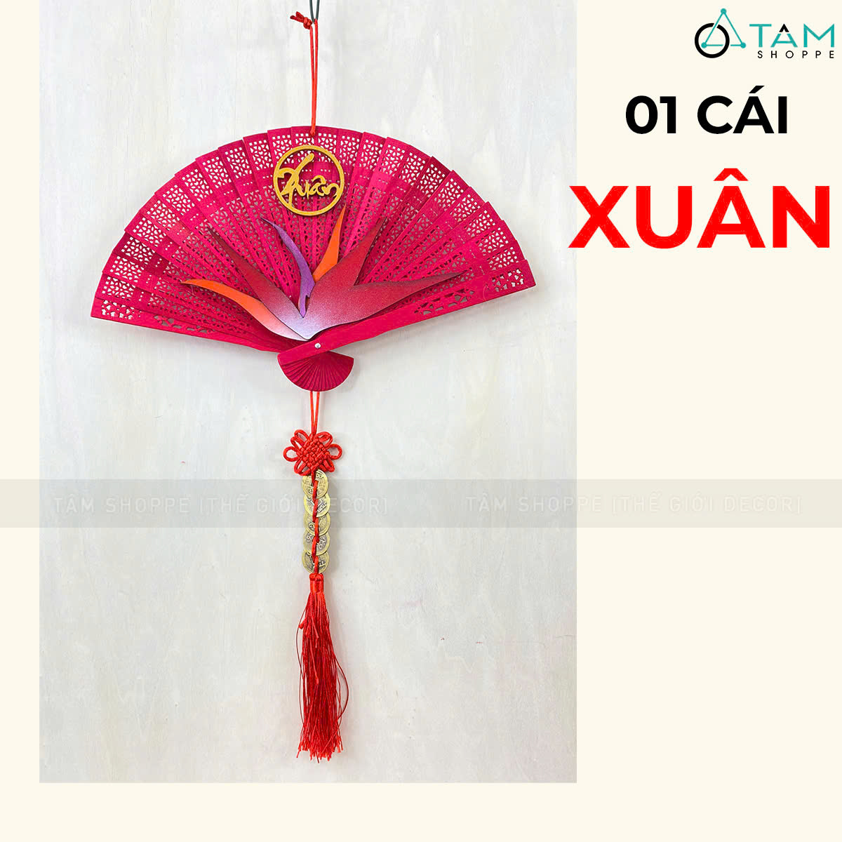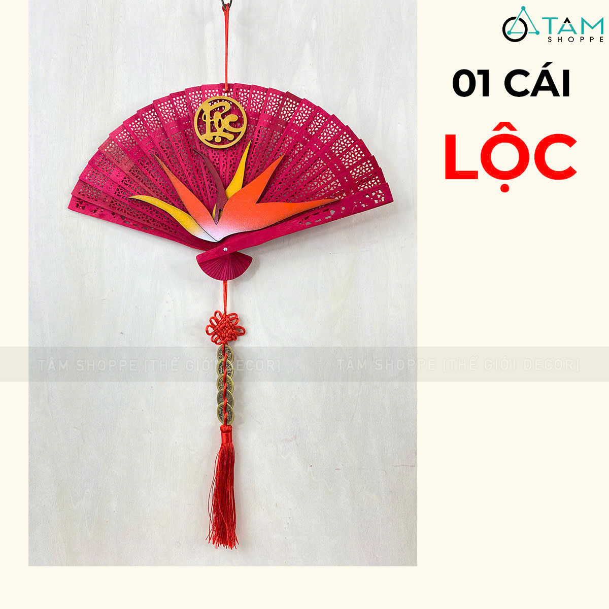 Quạt đỏ hoa Thiên Điểu treo trang trí Tết [Đa dạng chữ - Quạt gỗ] trang trí đẹp mắt. Đồ trang trí Tết là các vật dụng, phụ kiện, hoặc mô hình được dùng để trang hoàng không gian trong dịp lễ, nhằm tạo nên không khí ấm áp, vui tươi và mang đậm sắc màu lễ hội.