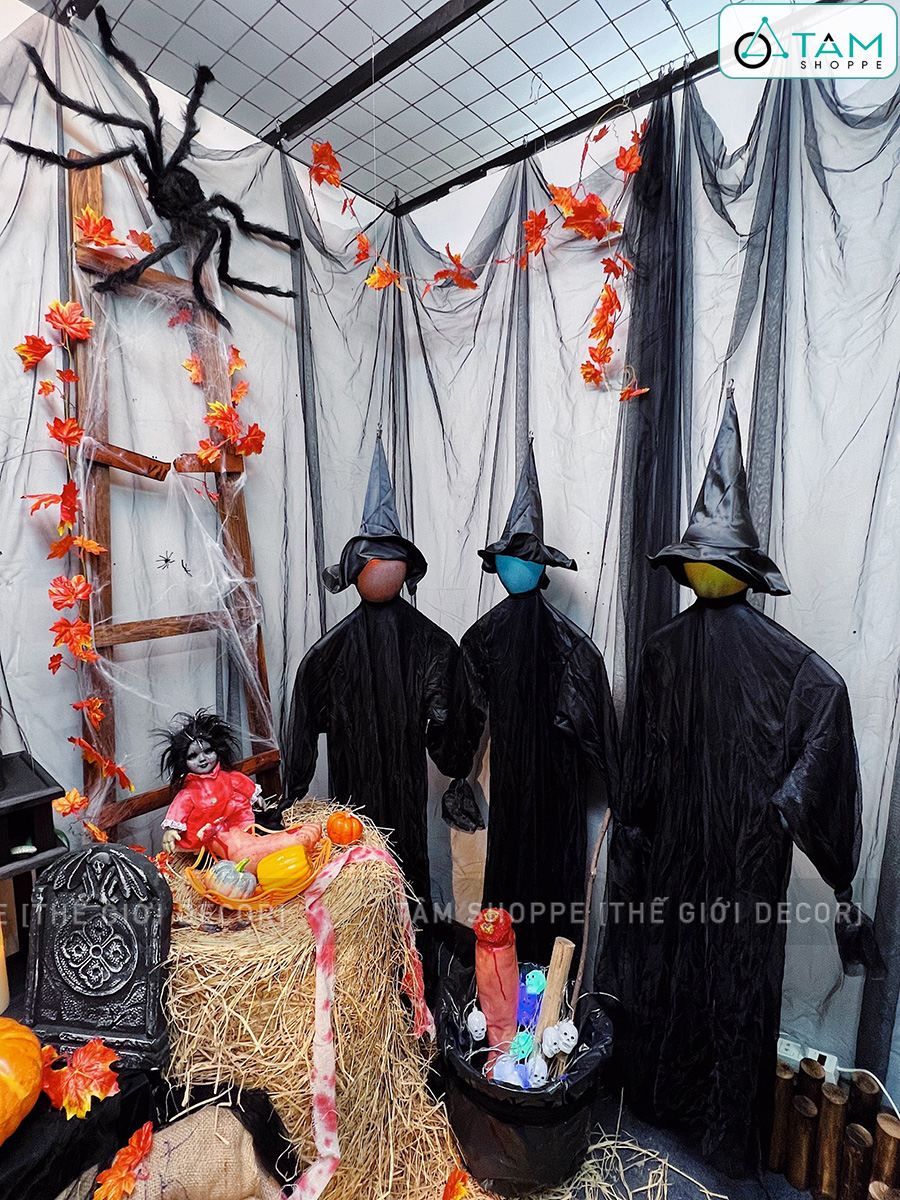 Set 03 con ma phù thủy đen nắm tay gào thét (cảm ứng tiếng động - tặng Pin) trang trí hù doạ kinh dị. Halloween được biết đến như một lễ hội của ma quỷ, thế giới hắc ám. Những món đồ trang trí Halloween rùng rợn, kinh dị lại càng được yêu thích. Các quán cafe hay Shop bán hàng muốn tạo điểm nhấn thu hút đối với khách thì Halloween là dịp đặc biệt ấn tượng. Chỉ với một số món đồ trang trí có sẵn, cùng Tâm Shoppe mang không khí lễ hội của quỷ này về nhà mình nhé...