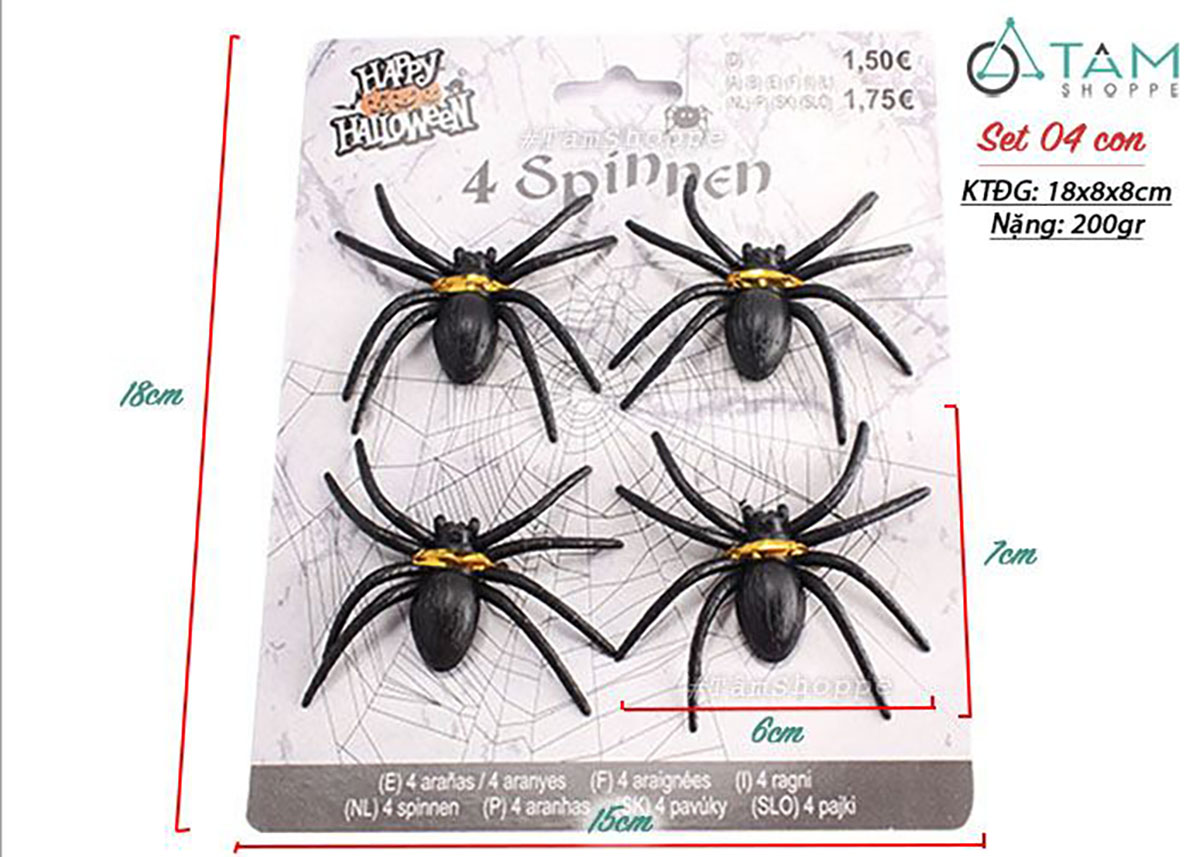 Set 04 con nhện đen nhựa cứng 6cm [Dáng đẹp] trang trí đẹp mắt. Đồ trang trí Halloween là những vật dụng, mô hình hoặc phụ kiện được dùng để tạo không khí rùng rợn, huyền bí, vui nhộn đặc trưng cho ngày lễ Halloween (31/10).