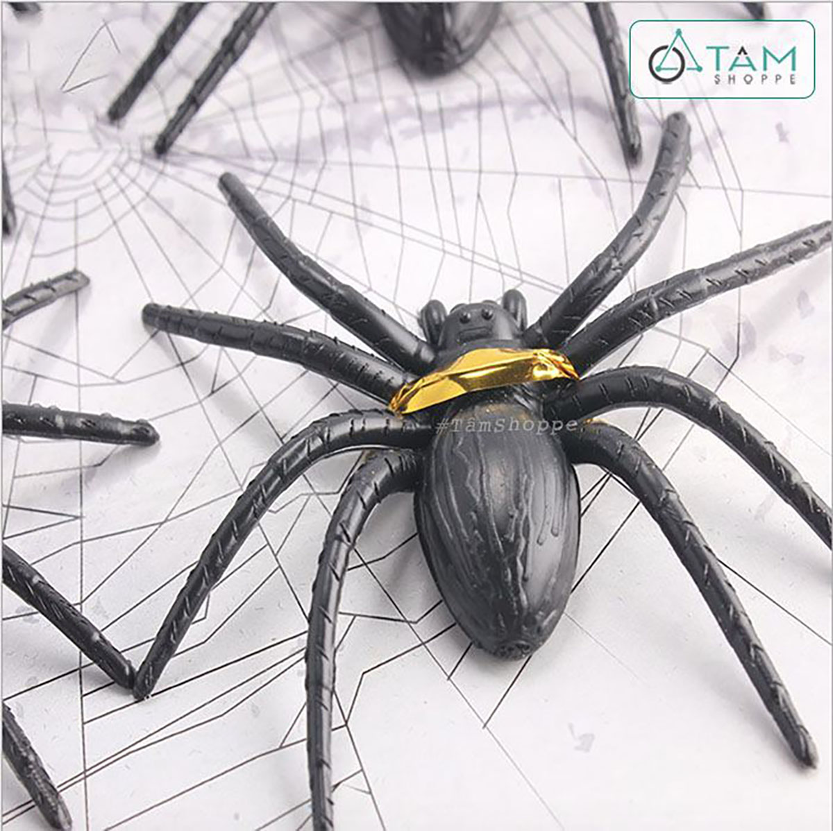 Set 04 con nhện đen nhựa cứng 6cm [Dáng đẹp] trang trí đẹp mắt.