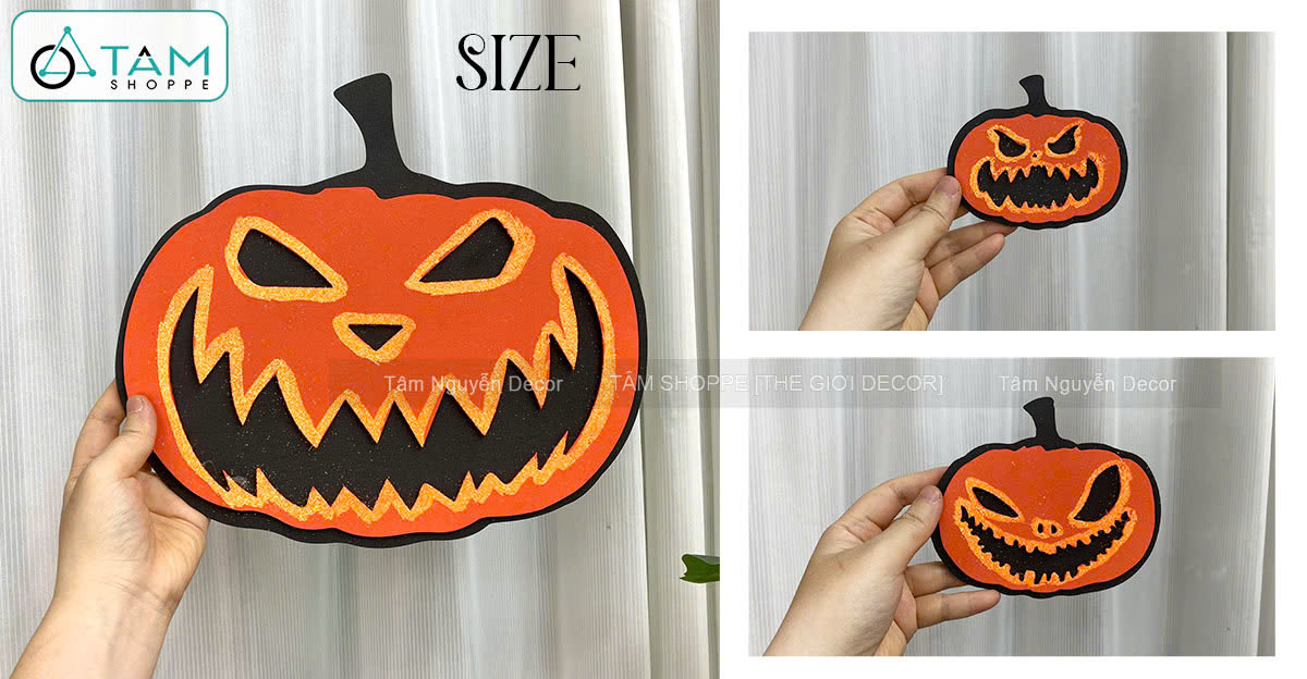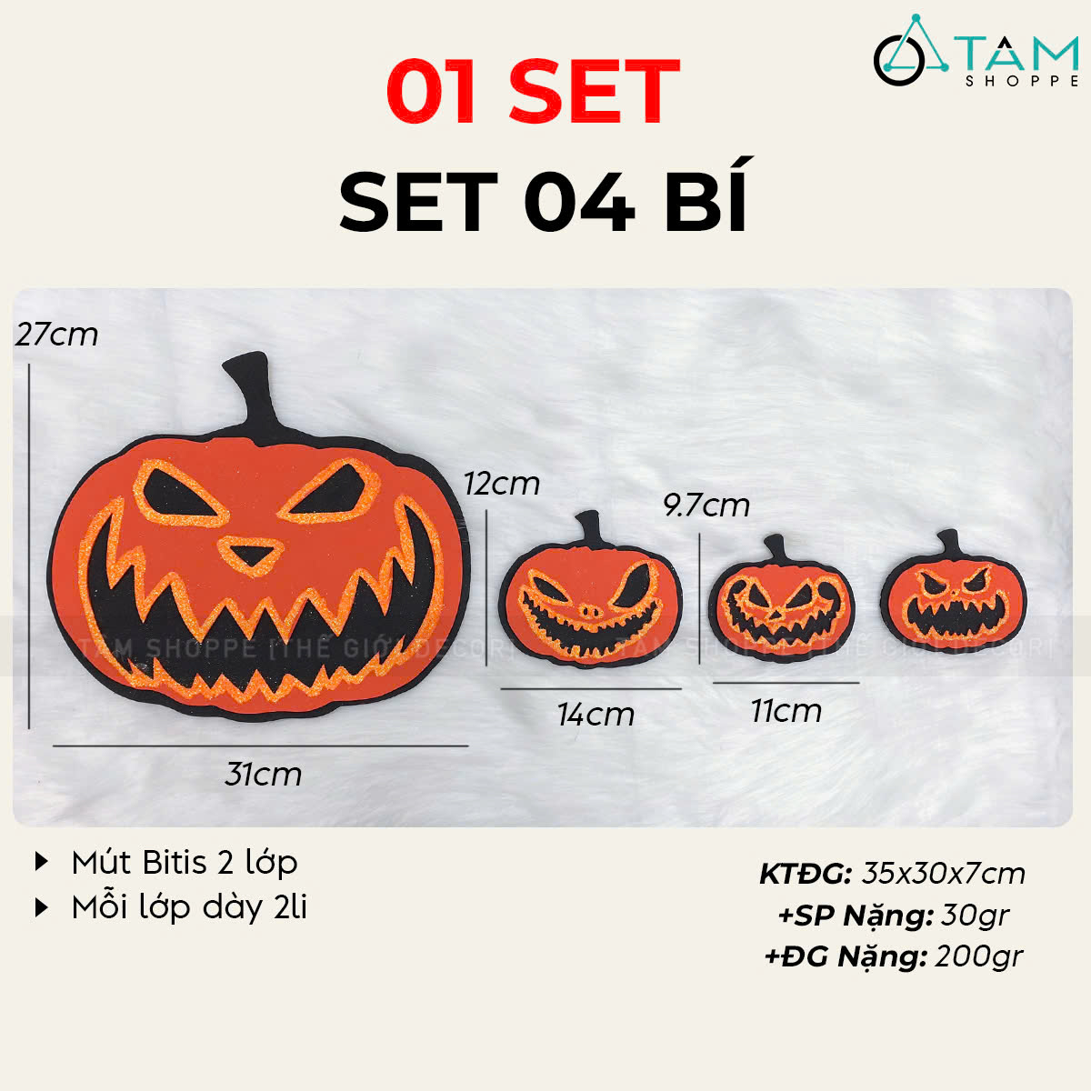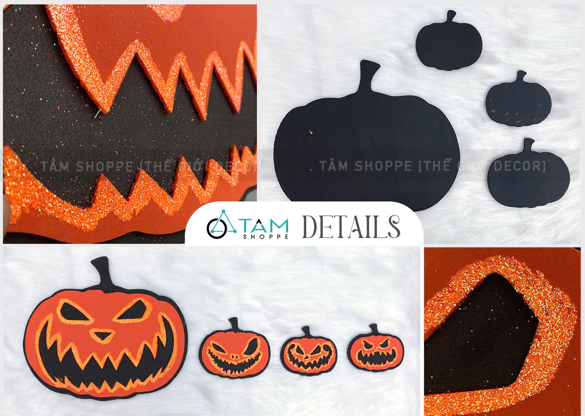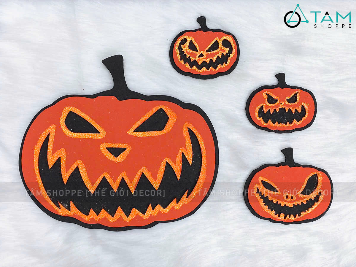 Set 04 miếng dán tường bí ngô 2 lớp kim tuyến [Mút bitis/ từ 11-31cm] trang trí đẹp mắt. Đồ trang trí Halloween là những vật dụng, mô hình hoặc phụ kiện được dùng để tạo không khí rùng rợn, huyền bí, vui nhộn đặc trưng cho ngày lễ Halloween (31/10).